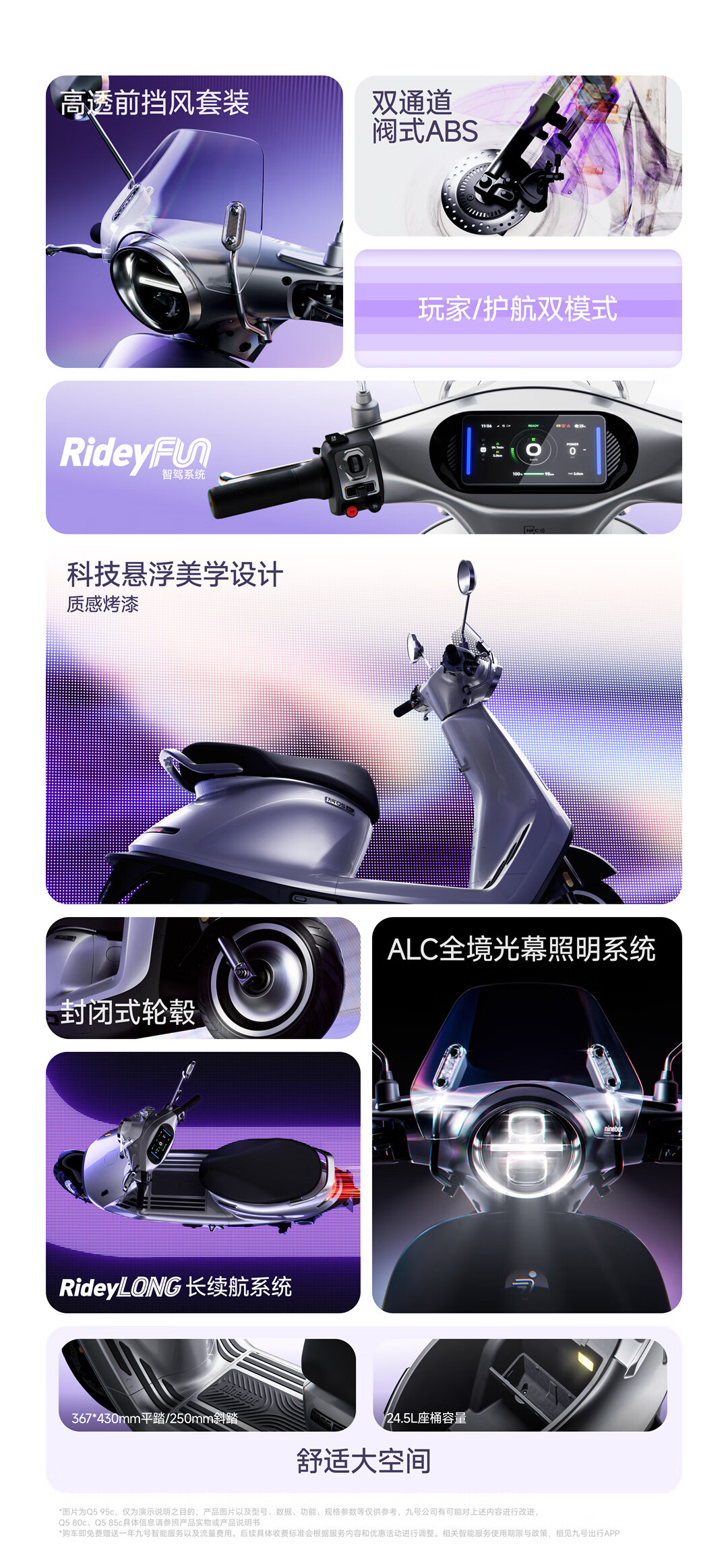 九号(Ninebot)电动车2025款 电动轻便摩托车Q5 80c 智能智驾 长续航电摩【门店自提】 到门店选颜色