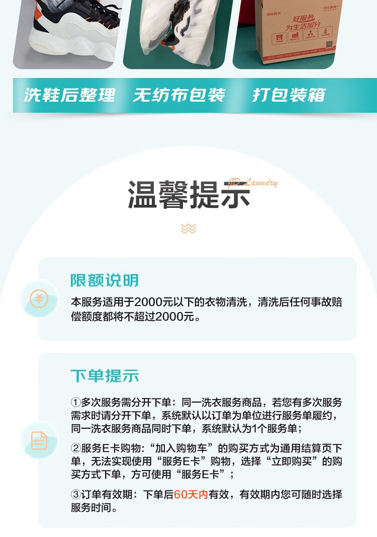 京东自营洗鞋服务小白鞋1双 价值2000元以下京东洗衣小白鞋