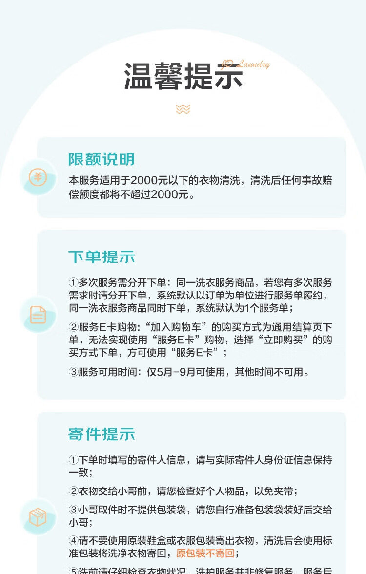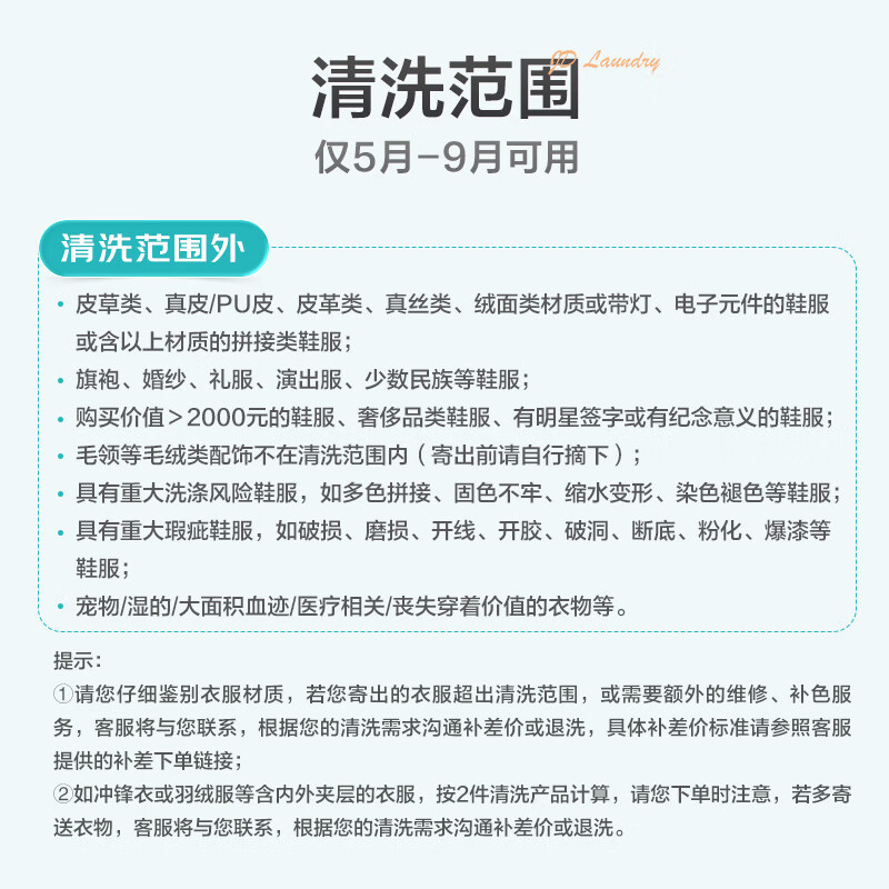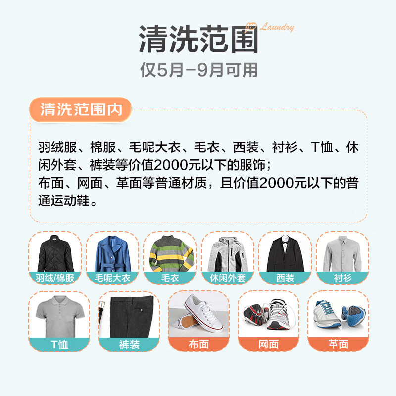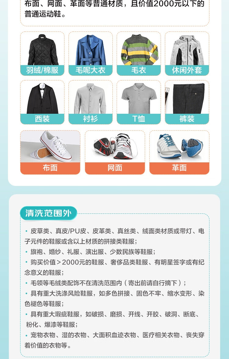 京东衣鞋6件1次反季洗(5-9月预约) 价值2000元内非绒运动鞋/衣服