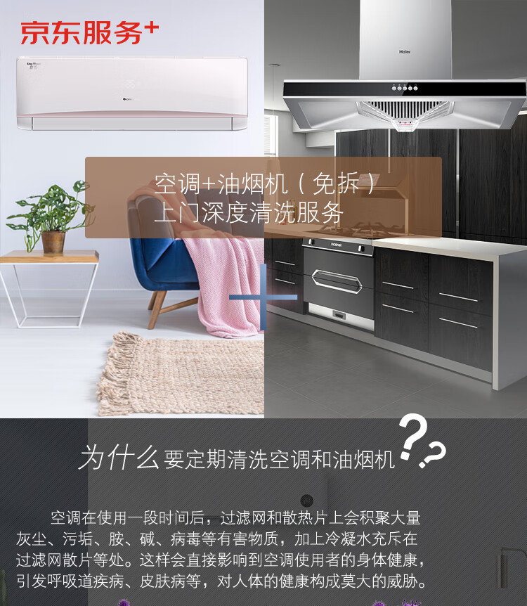 空调挂机*1全拆洗+油烟机免拆洗 家电清洗 上门服务清洁保养