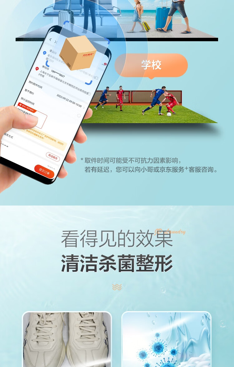 京东洗衣服务 3件 上门取送 去渍整形 价值2000元内衣服鞋子