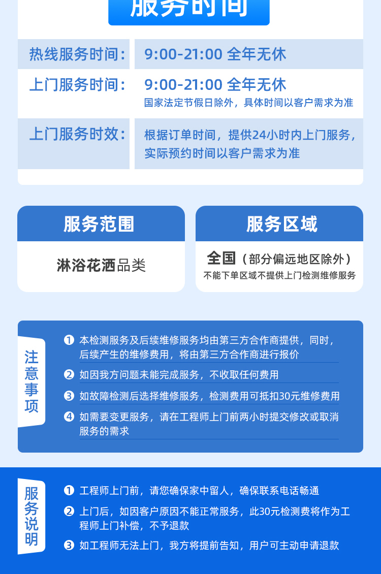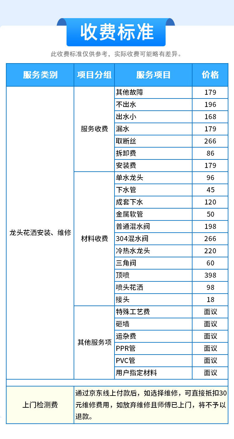 淋浴花洒维修检测服务极速上门专业水电维修(仅为上门检测费,可抵扣相应维修费)