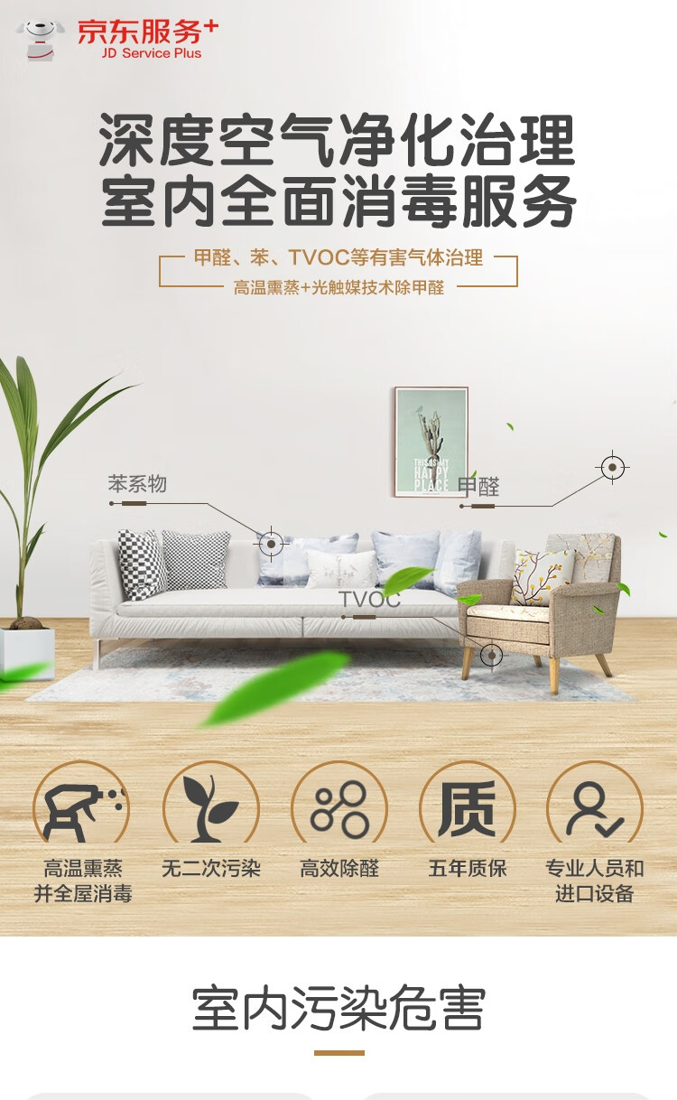 京东深度空气净化治理 室内全面消毒服务120-129平方 除甲醛去甲醛等空气污染综合治理上门服务按建筑面积
