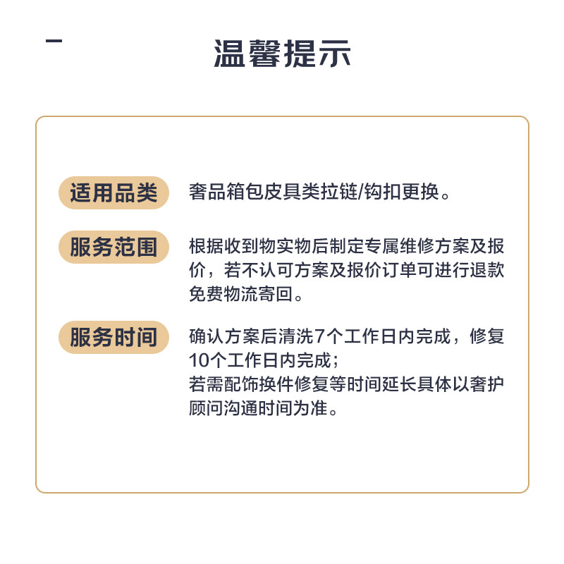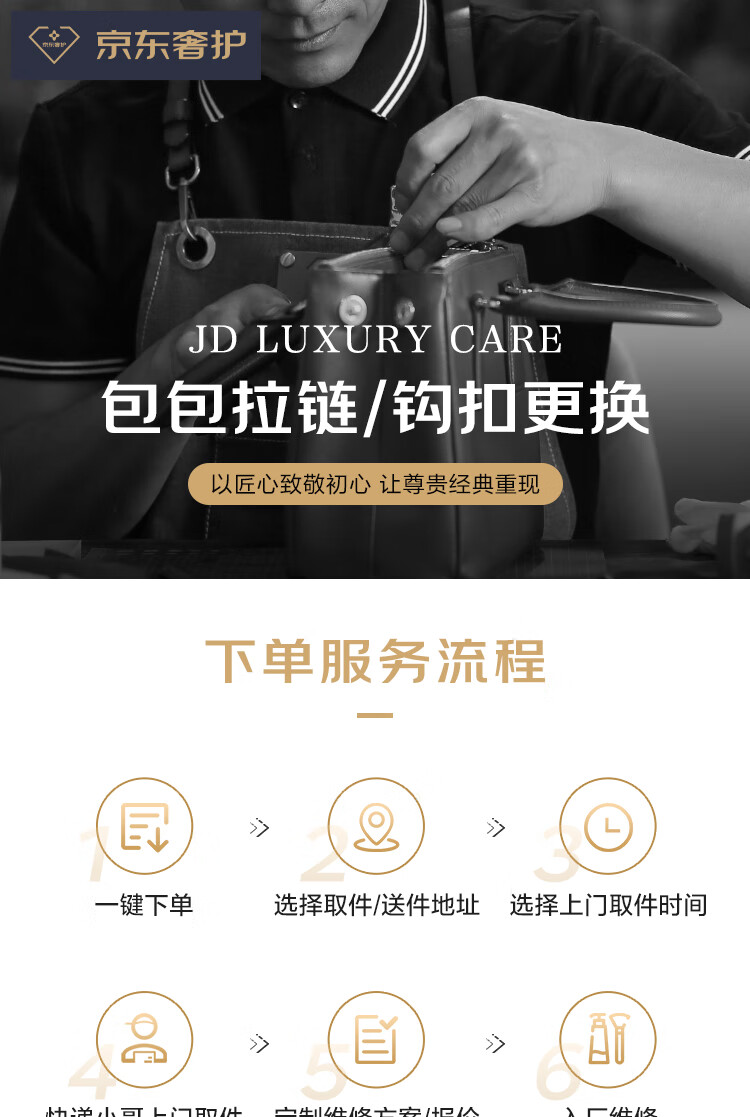 【京东奢护】奢侈品 箱包或钱包拉链或钩扣更换 免费取送
