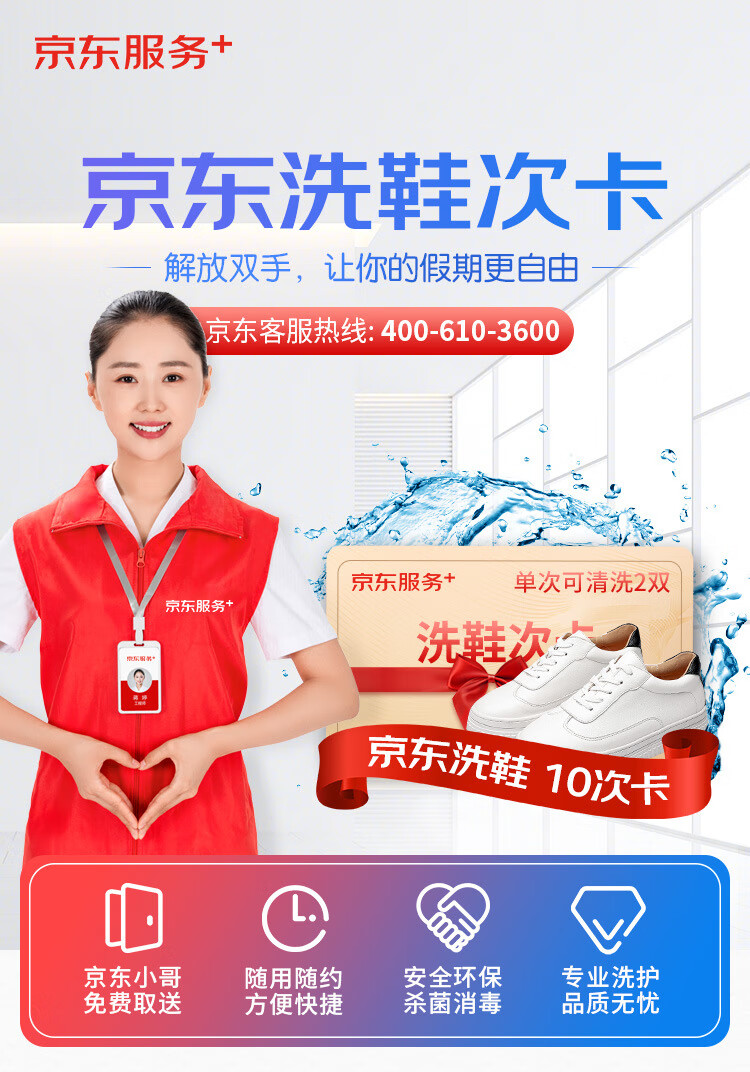 京东洗鞋服务 运动鞋任洗2双10次卡 上门取送 去渍杀菌 价值2000元内