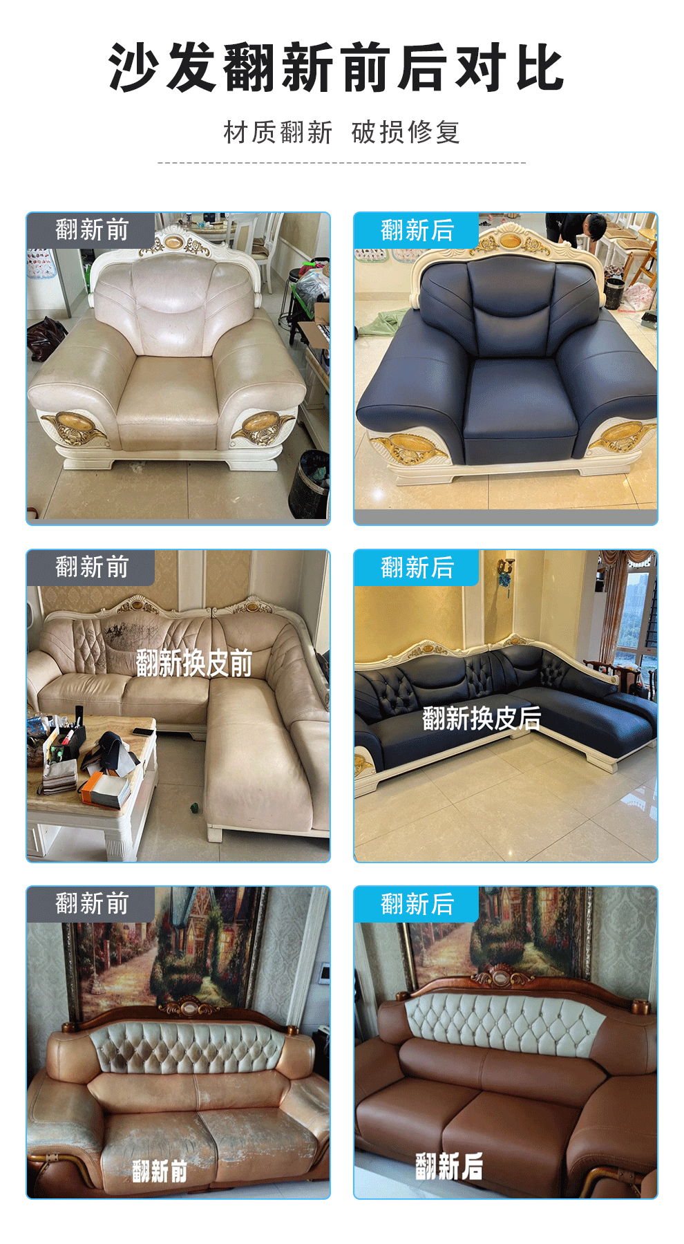 同城沙发翻新上门服务沙发换皮翻新/沙发塌陷修复清洗换布/真皮布艺沙发旧床头餐椅维修餐桌椅子包沙发换皮