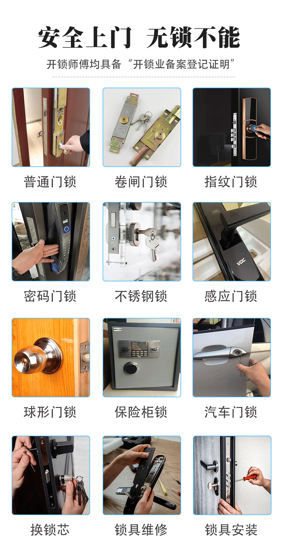 京东开锁上门服务24小时附近C级换锁芯修锁智能指纹电子密码防盗门锁包安装上门