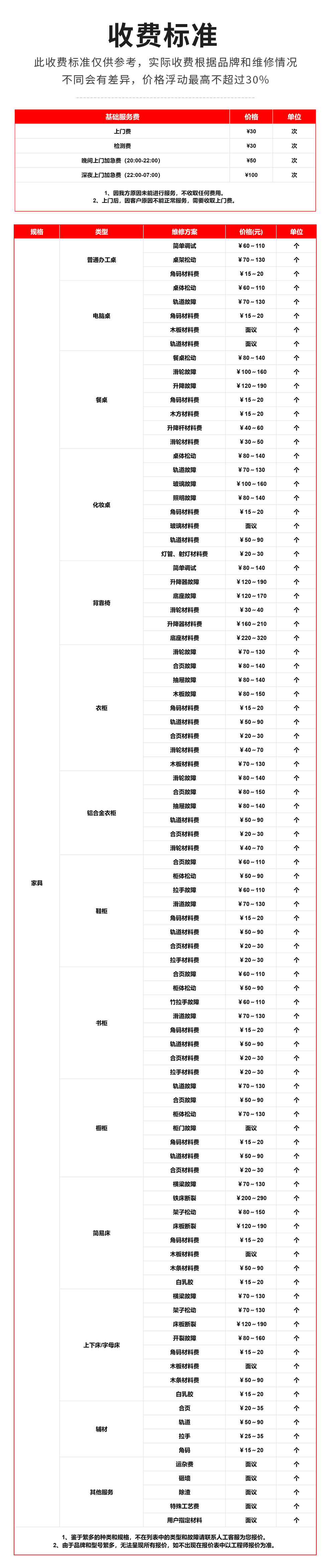 晾衣架维修,沙发类家具维修,柜类家具维修,床类家具维修,桌类家具维修,架类家具维修,椅类家具维修,茶几类维修