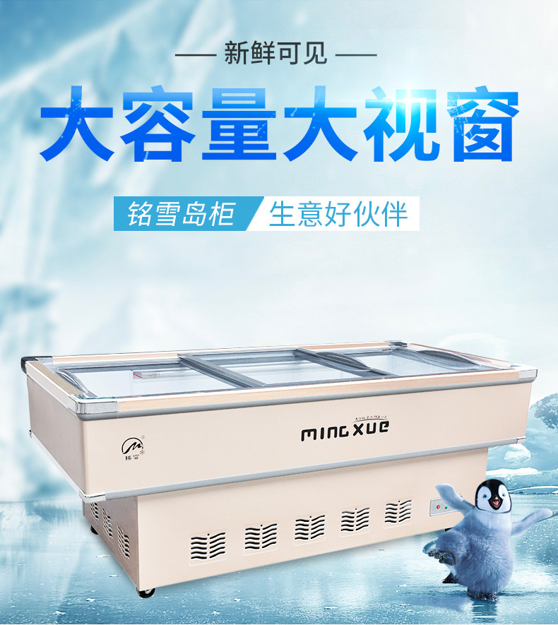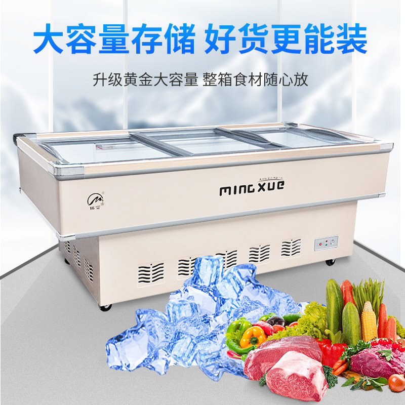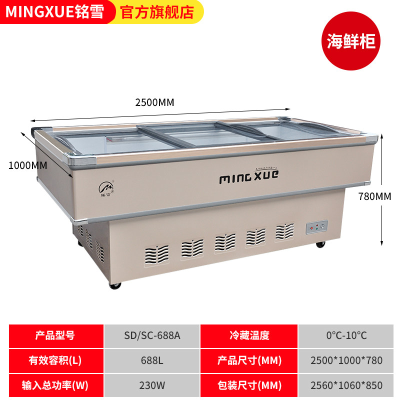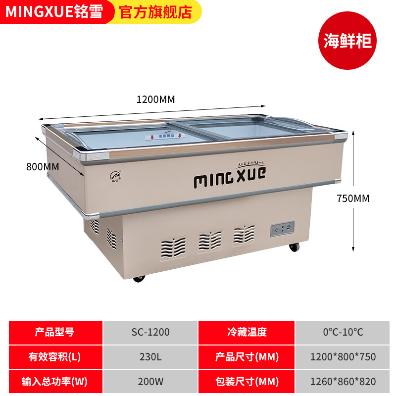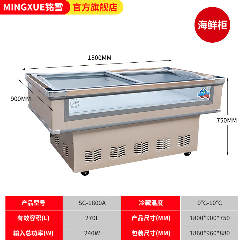 铭雪冰柜商用卧式海鲜展示柜平面海鲜保鲜点菜柜冷藏鲜肉平口冰箱
