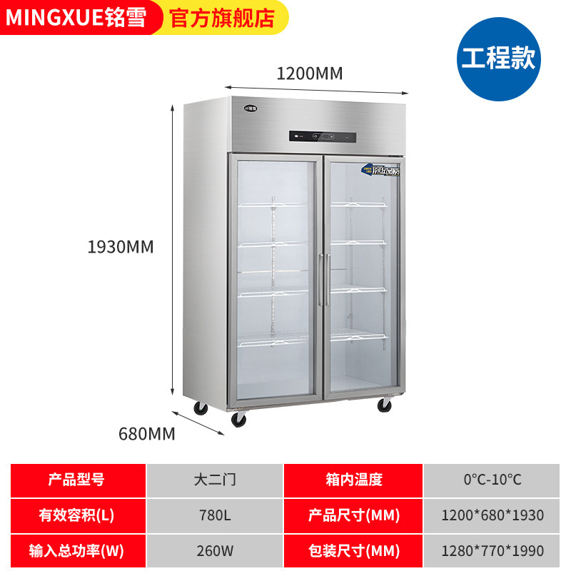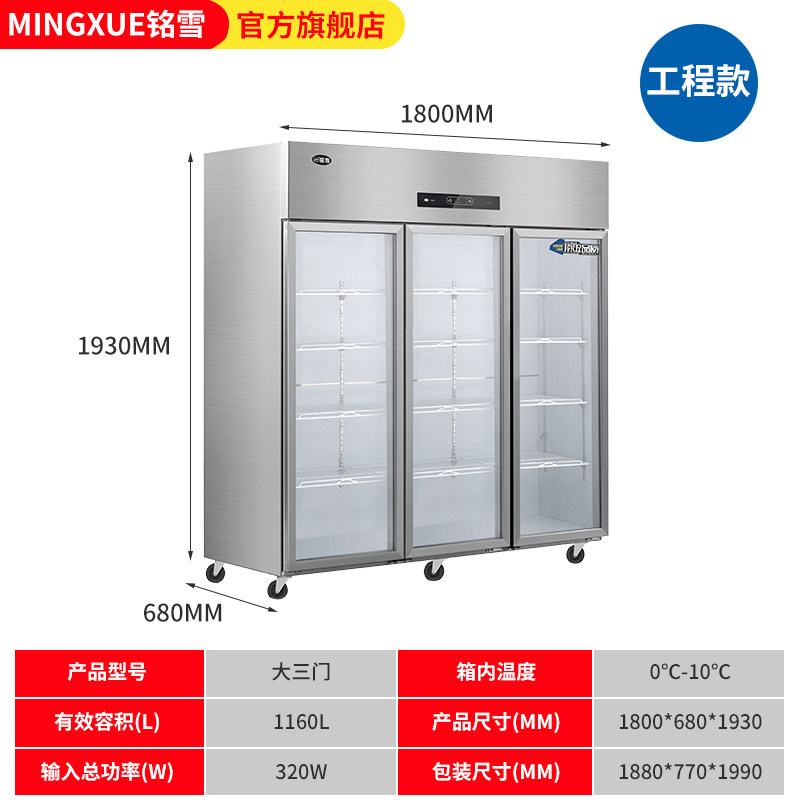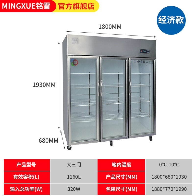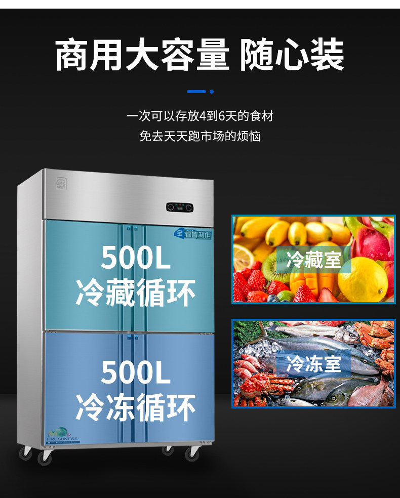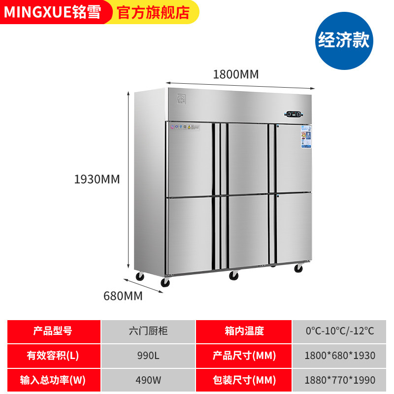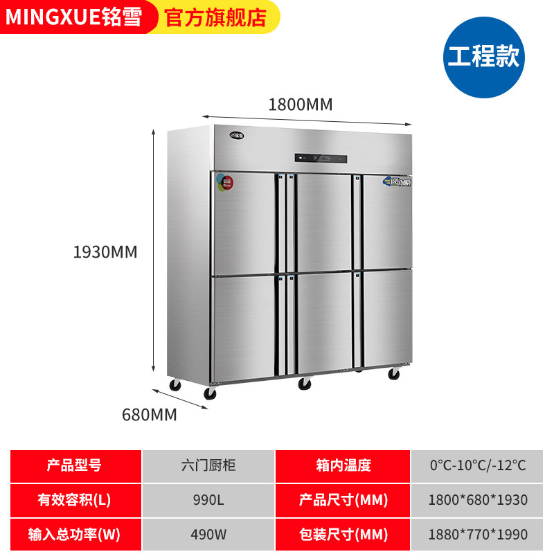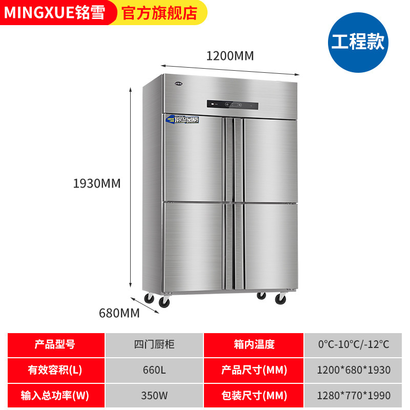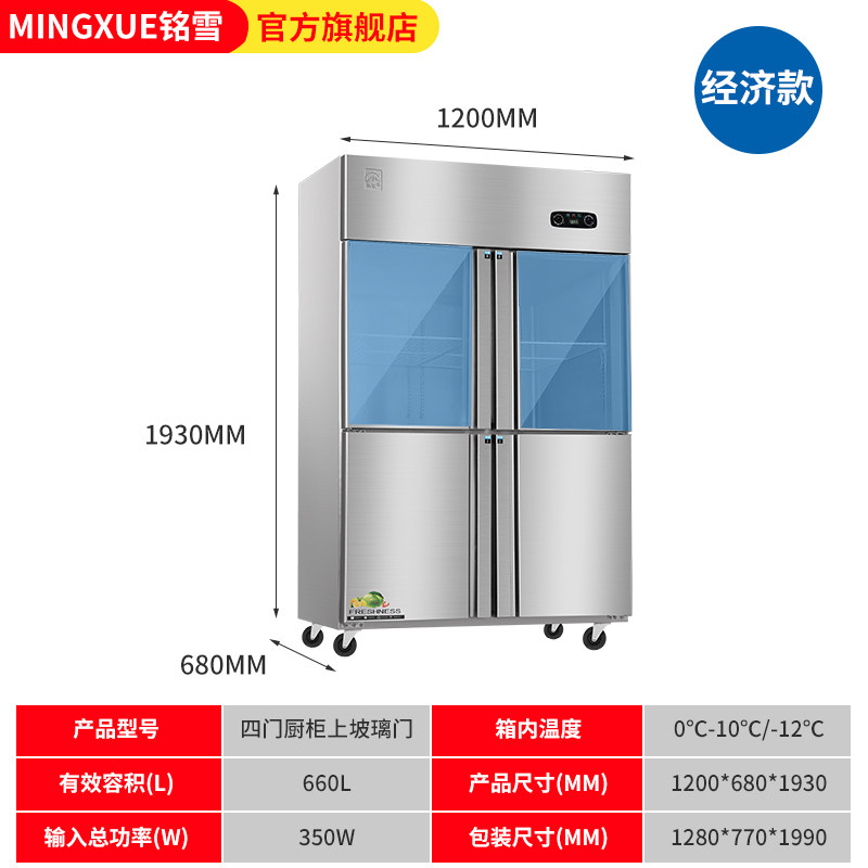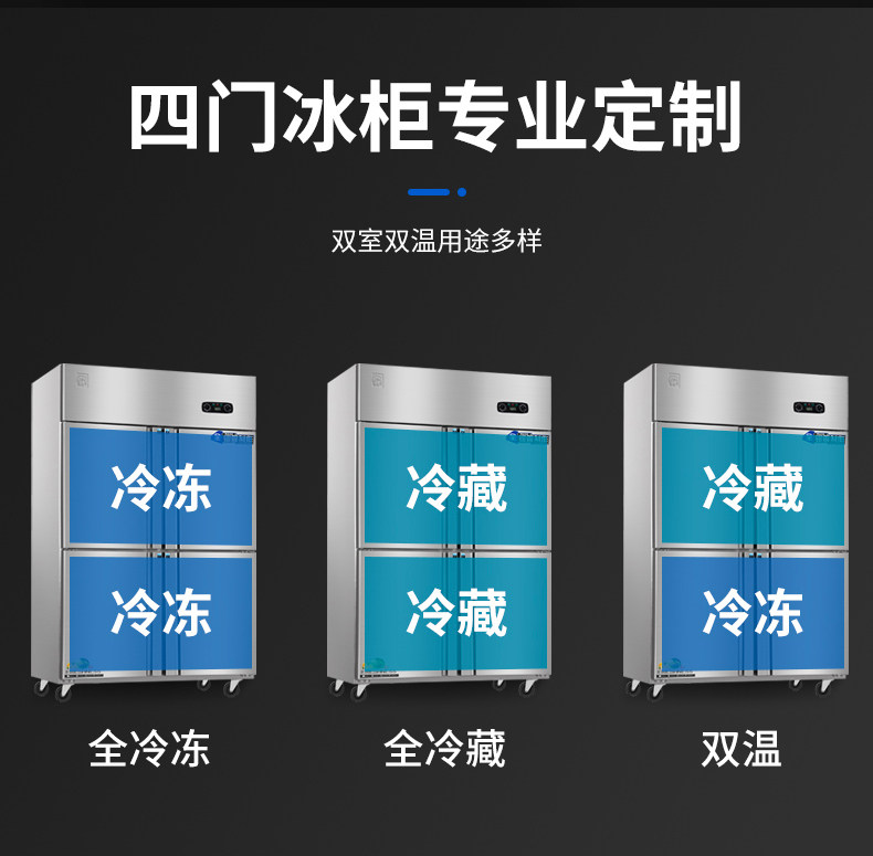 铭雪四门冰箱商用大容量冷藏冷冻立式不锈钢四开门冷柜保鲜展示柜