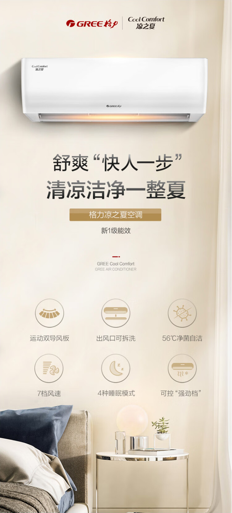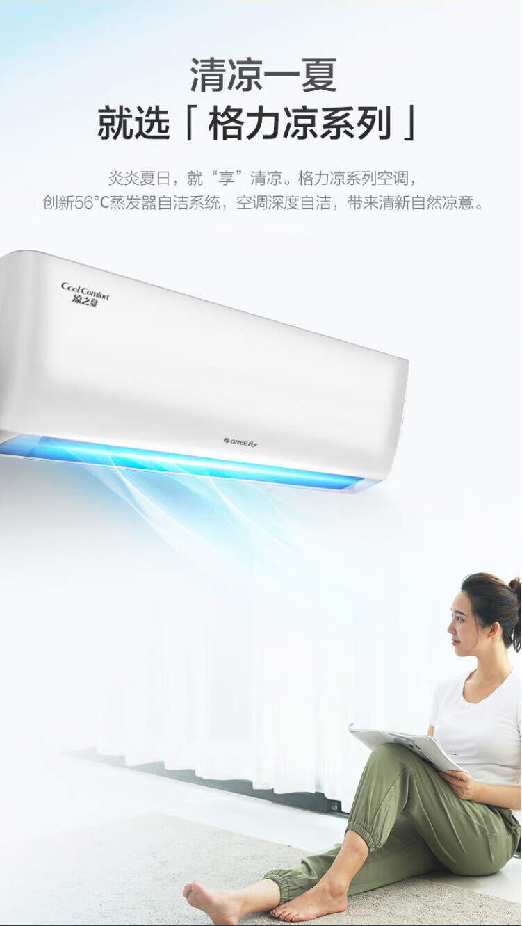 格力(GREE)凉之夏 新能效 变频冷暖 56℃净菌自清洁 卧室挂壁空调 【整机十年包修】 1.5匹 一级能效 【适用15-20㎡】