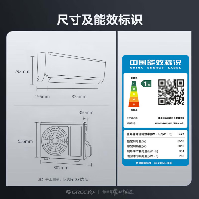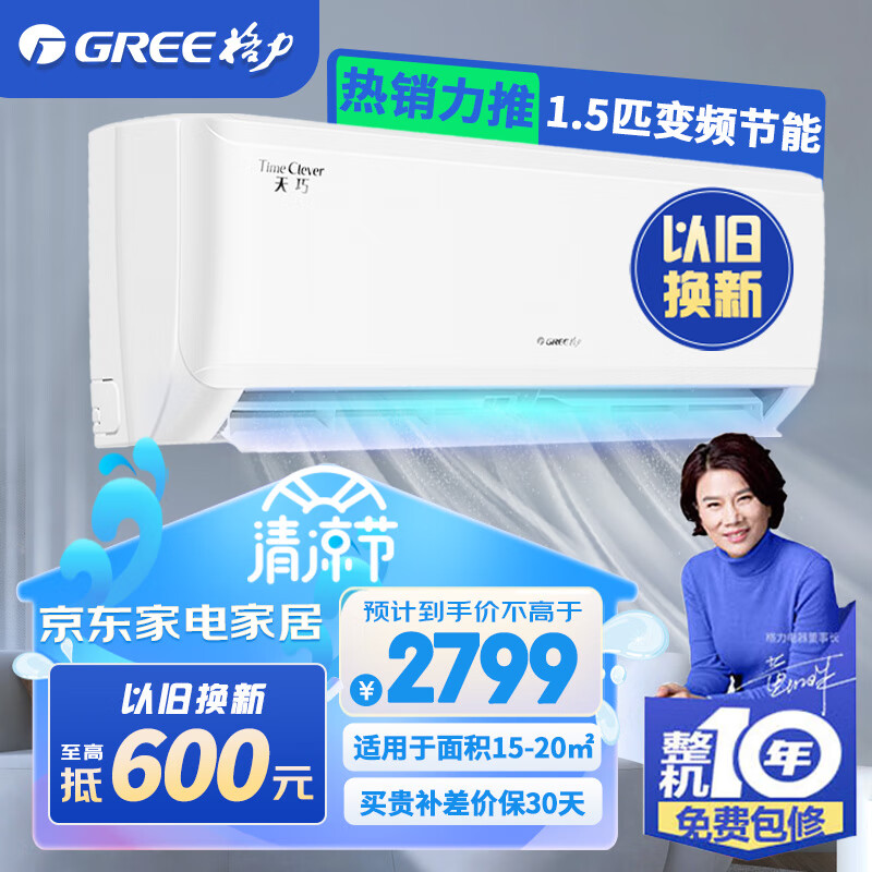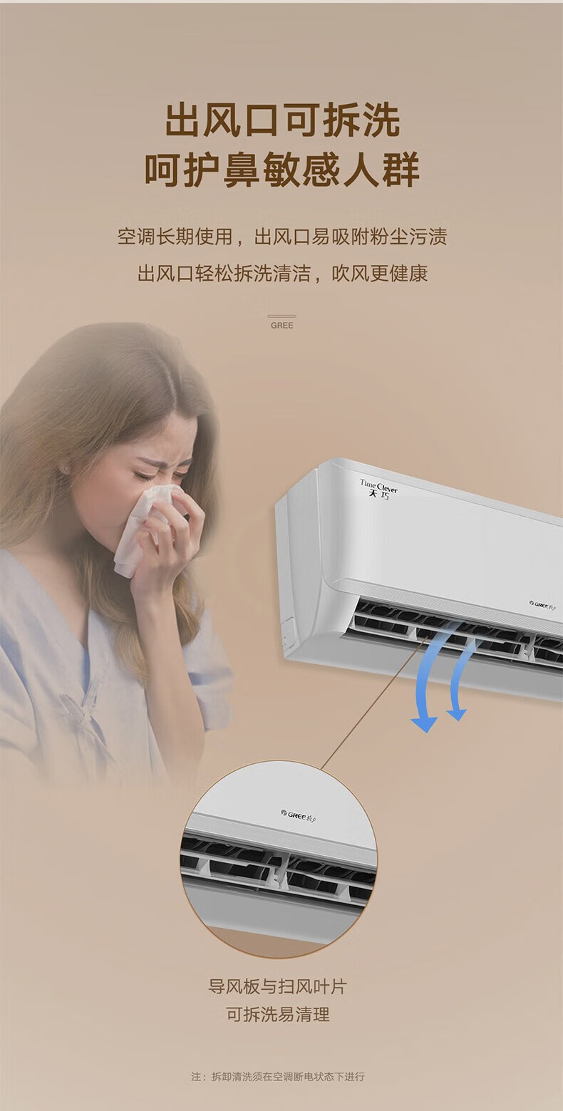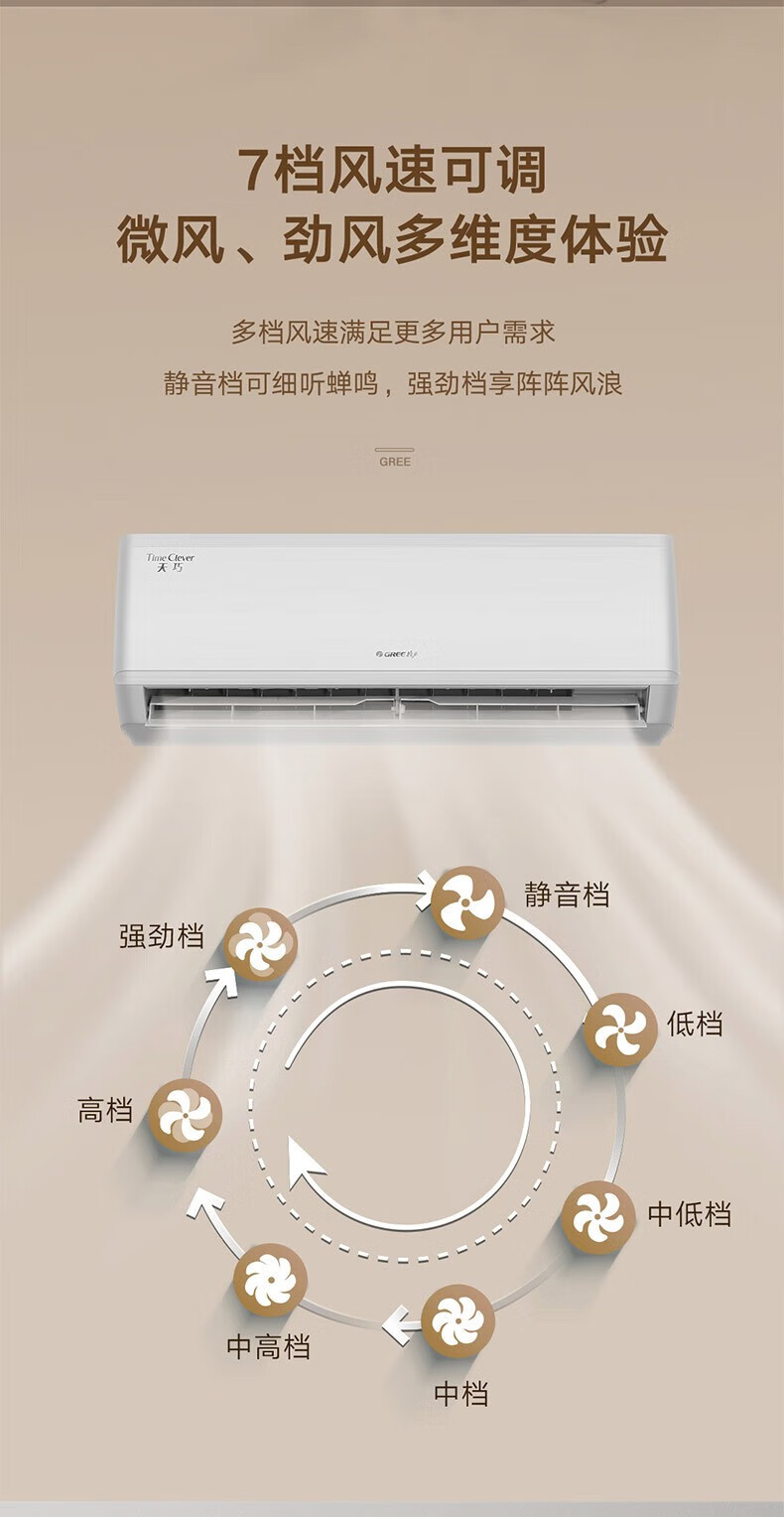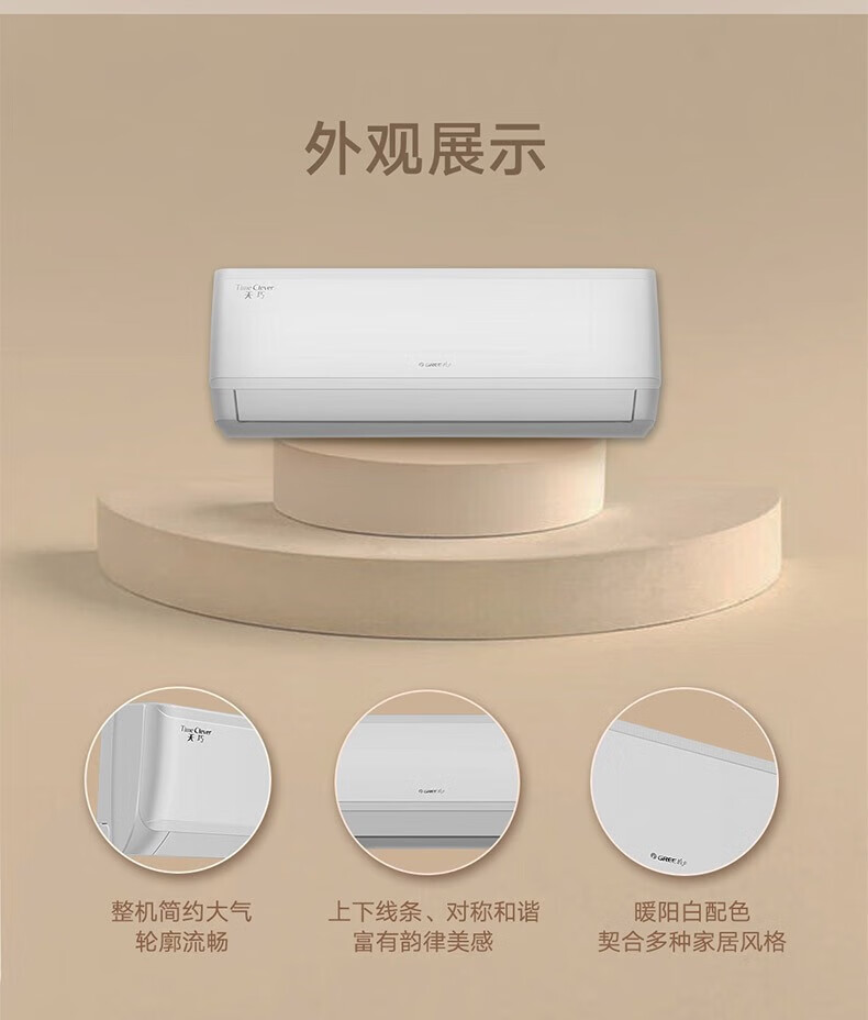 格力(GREE)天巧 新能效 变频冷暖 56℃净菌自清洁 卧室挂壁空调 【整机十年包修】 1.5匹 一级能效