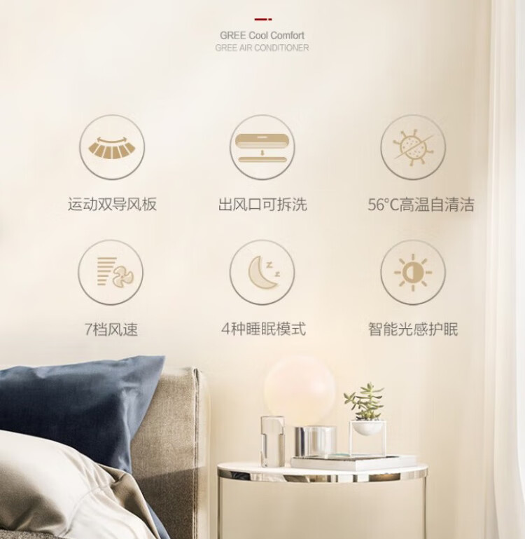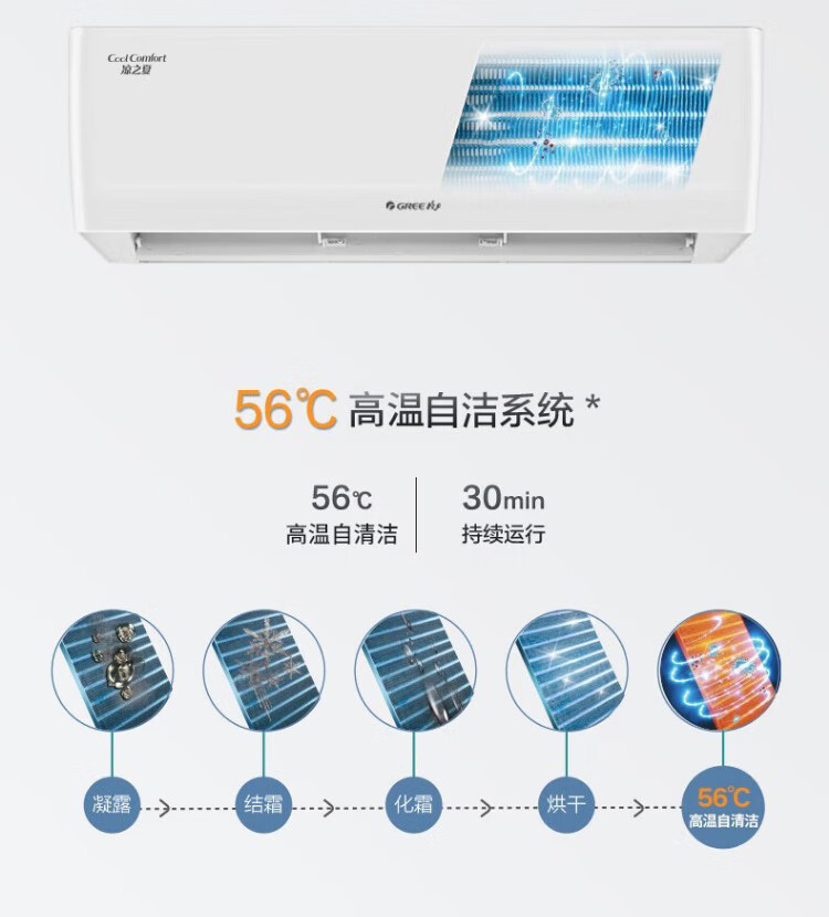 格力(GREE) 1.5匹空调 变频冷暖一级能效家用卧室壁挂式挂机 凉之夏 【56℃高温自洁】4种睡眠模式 智能