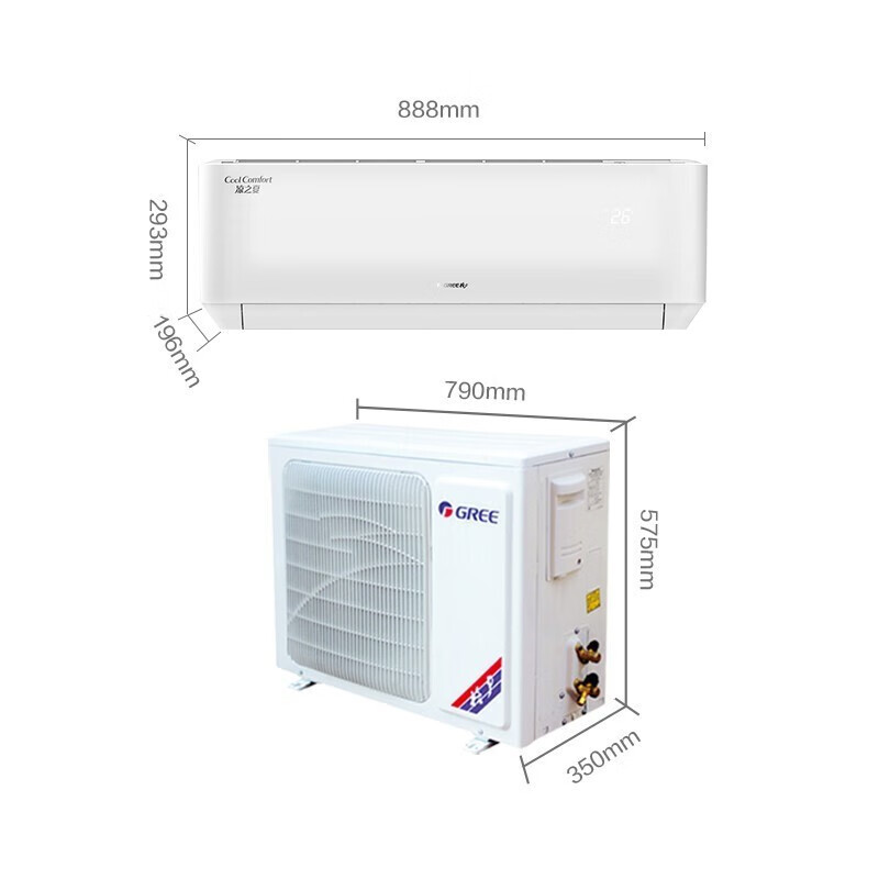 • 内机机身尺寸: 宽888mm;高293mm;深196mm