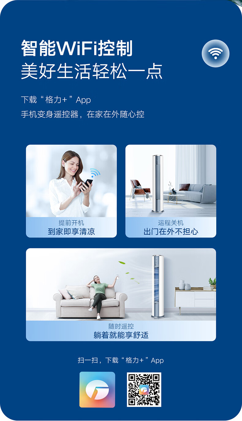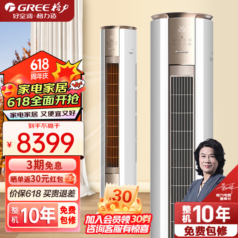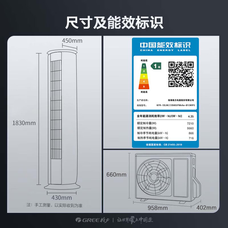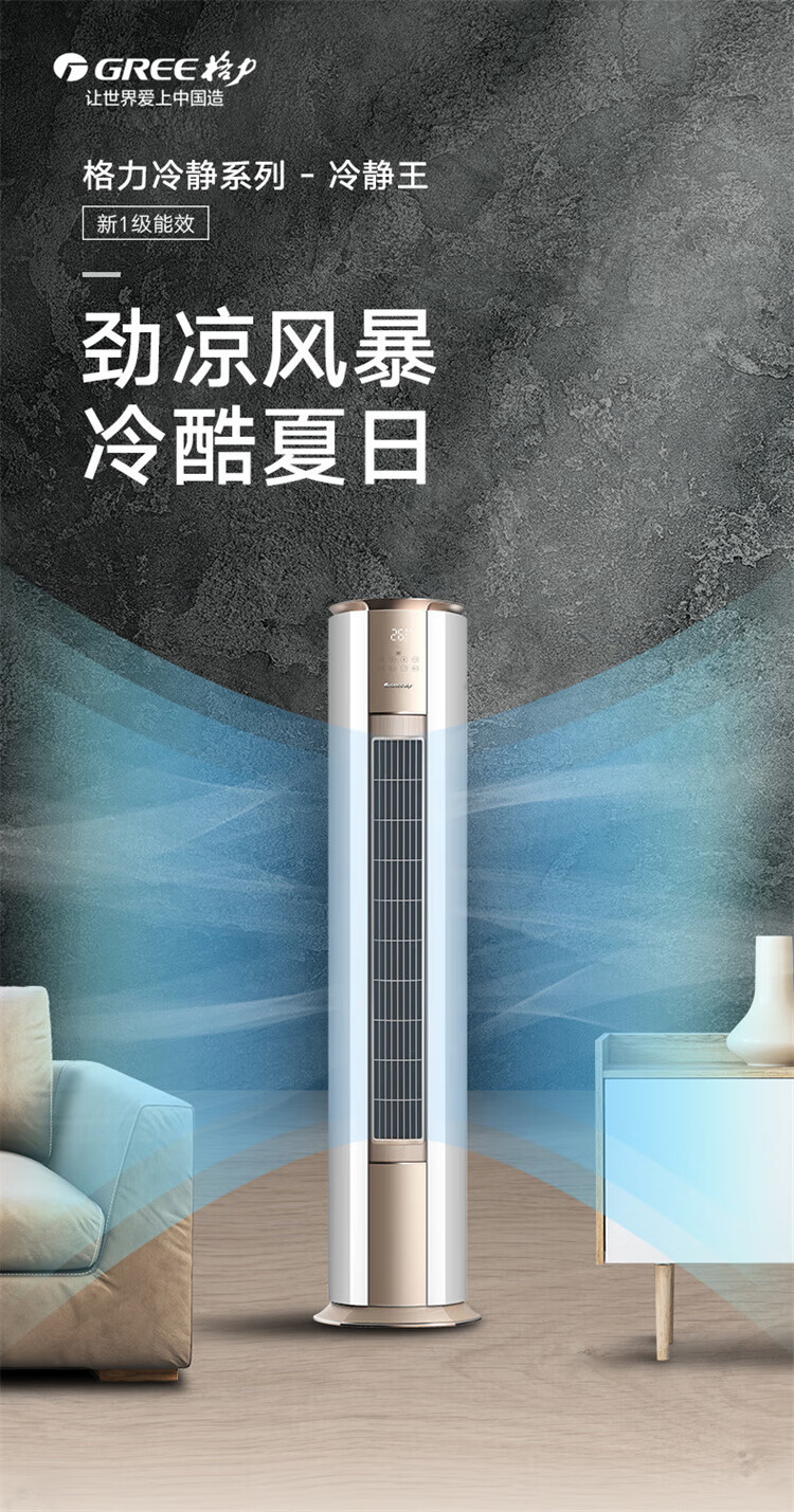 格力(GREE)柜机空调 冷静王 3匹一级新能效变频立式冷暖WIFI智控 KFR-72LW/(72583)FNhAa/Ae-B1(WIFI) 3匹 一级能效