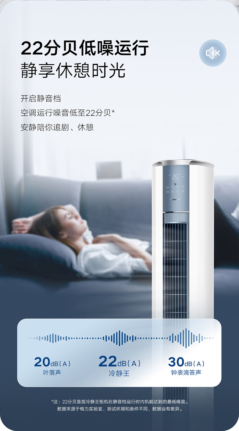 • 内机噪音(静音/低风): 22dB(A)