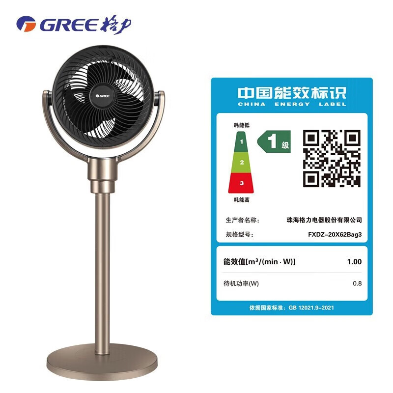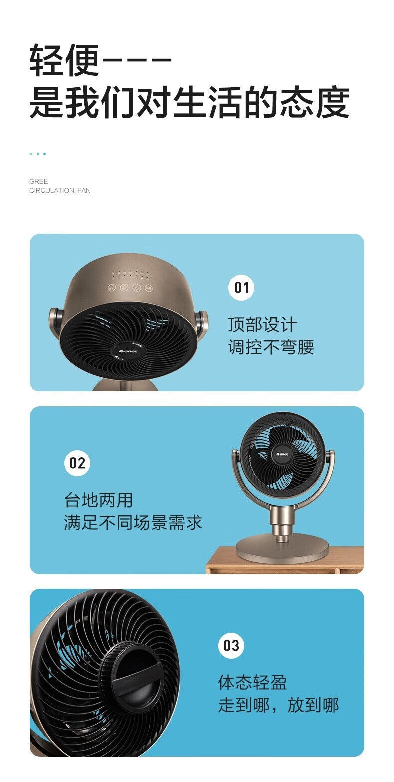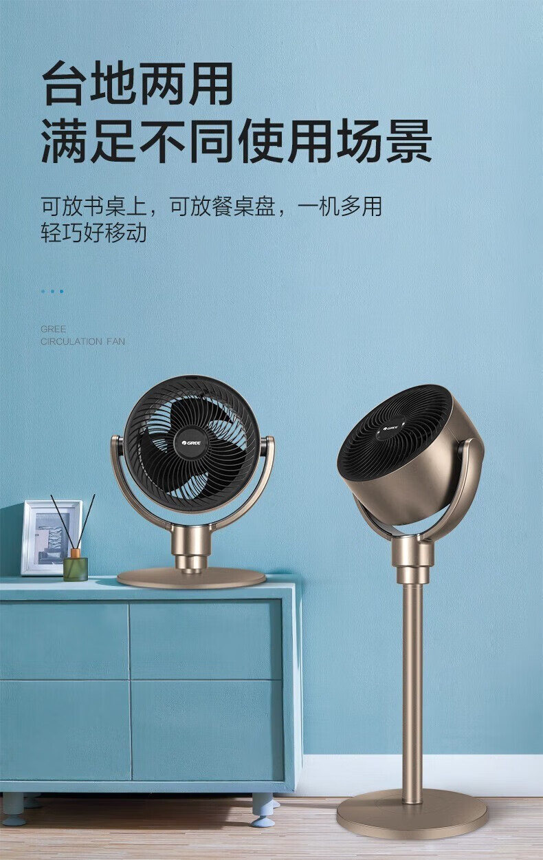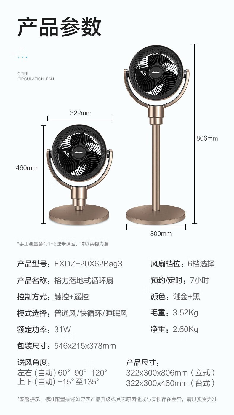 格力空气循环扇 6档风速 台地两用 循环空气电风扇 FXDZ-20X62Bag3 谜金+黑色