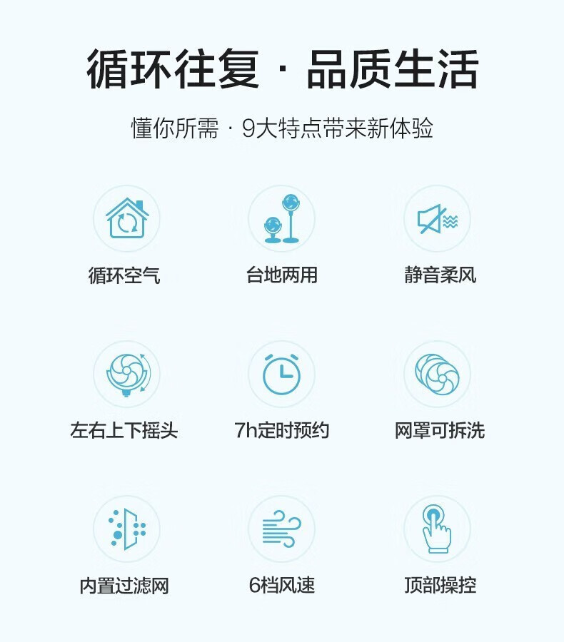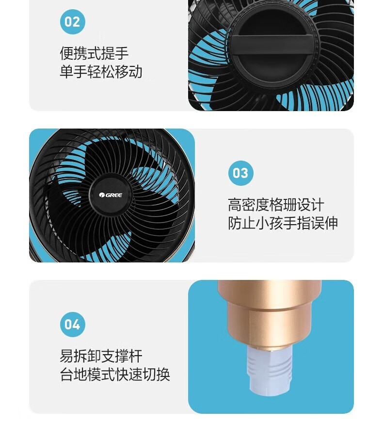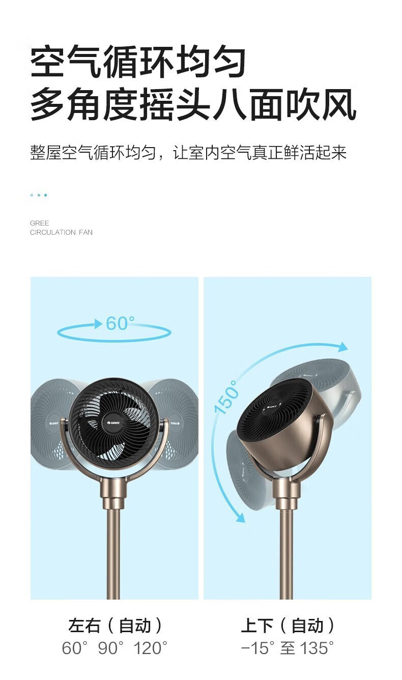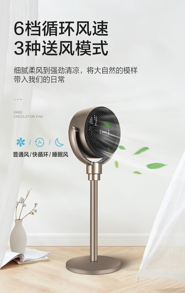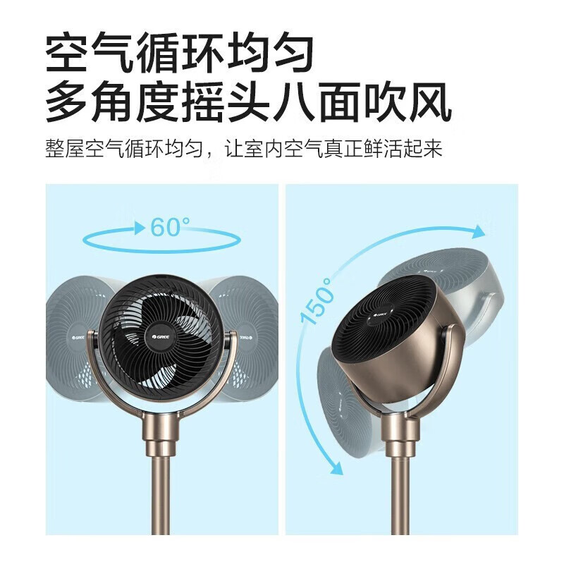 格力空气循环扇 6档风速 台地两用 循环空气电风扇 FXDZ-20X62Bag3 谜金+黑色