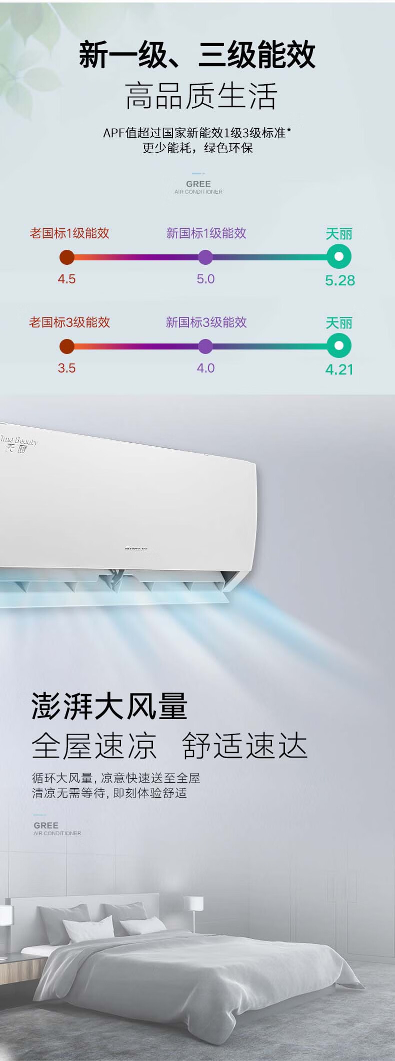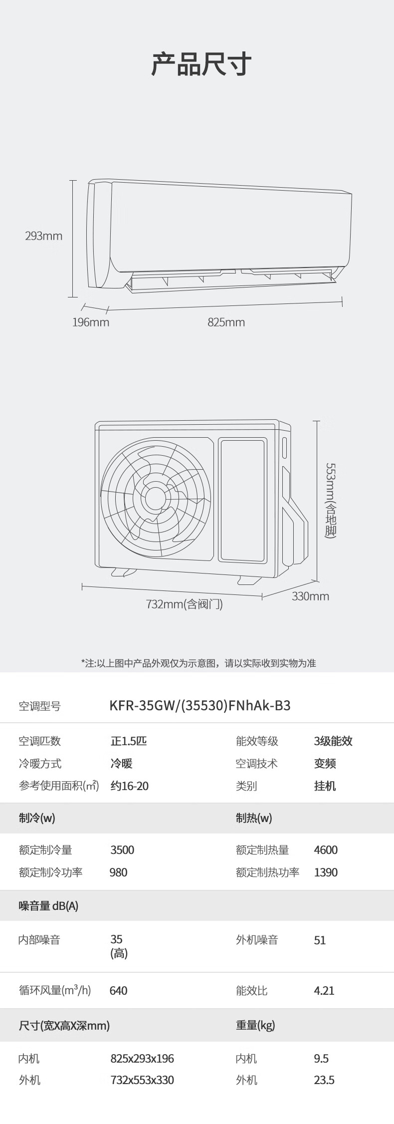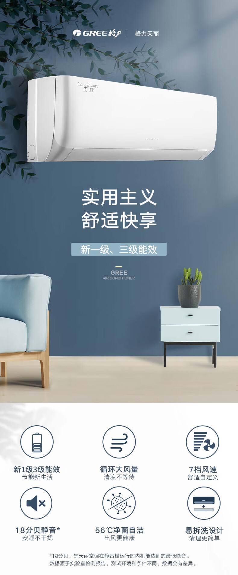 格力(GREE)天丽 变频冷暖1.5匹3级/新1级能效 挂机空调 KFR-35GW/(35530)FNhAk-B3(皓雪白) 1.5匹