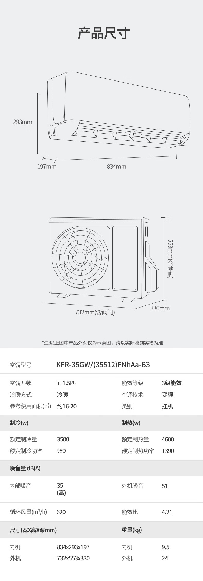 • 内机净重: 9.5kg