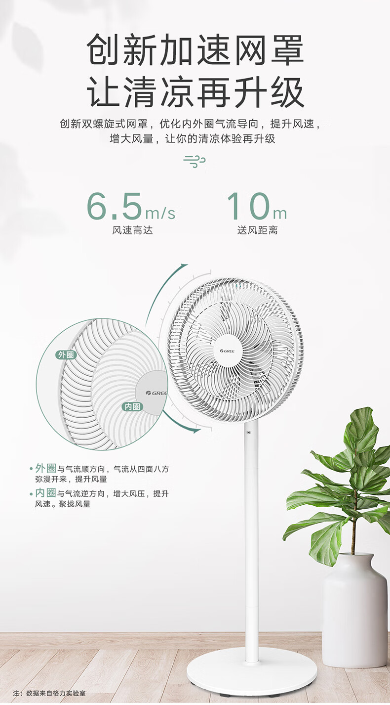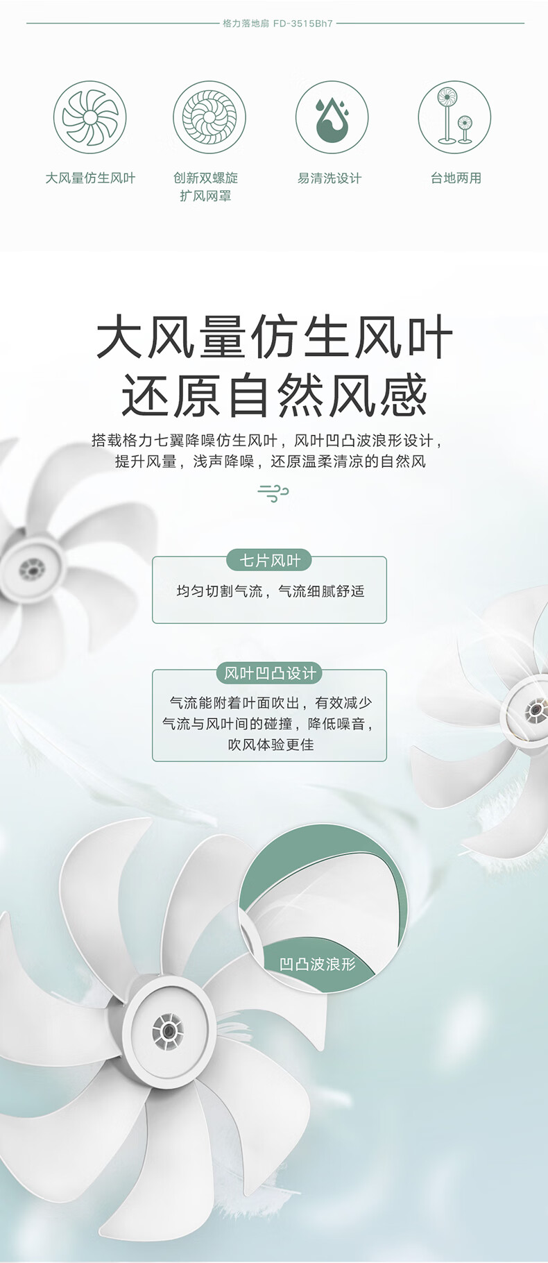 格力【加长扇叶】七叶轻音立式电风扇家用柔风落地扇台式桌面小型风扇大风量节能宿舍电扇FD-3515Bh7 白色 遥控款