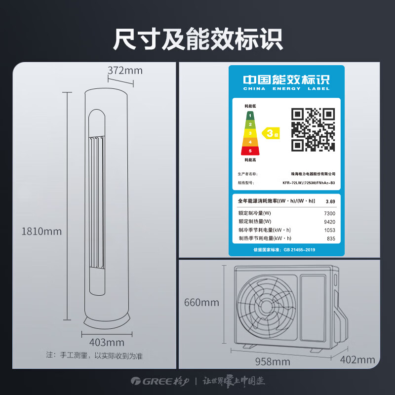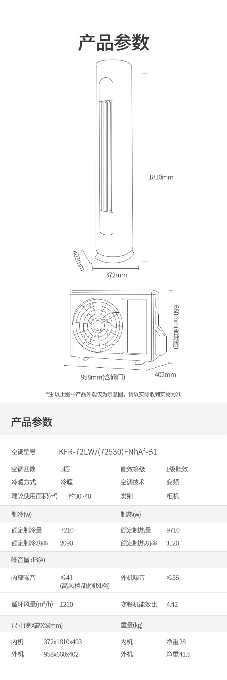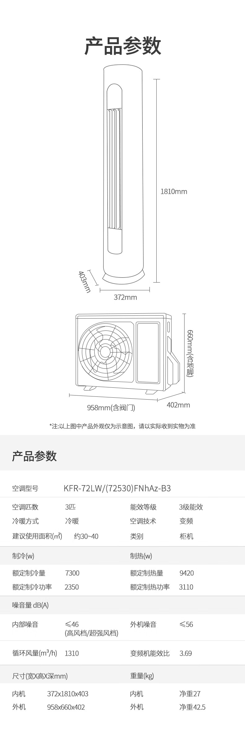 • 内机机身尺寸: 宽宽372mm;高高1810mm;深深403mm