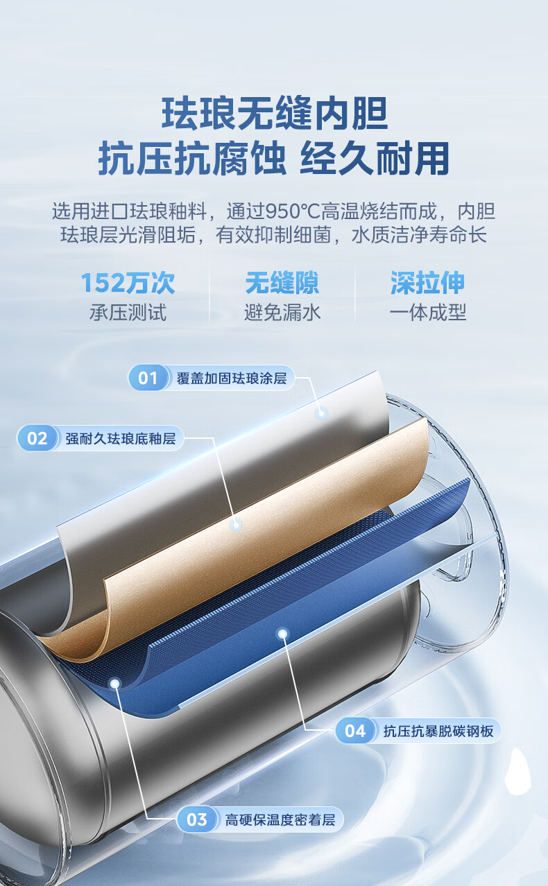 • 特征特质: 内胆免清洗,珐琅无缝内胆,速热增容