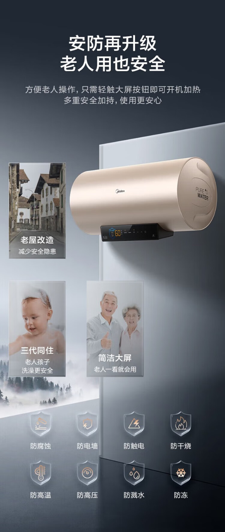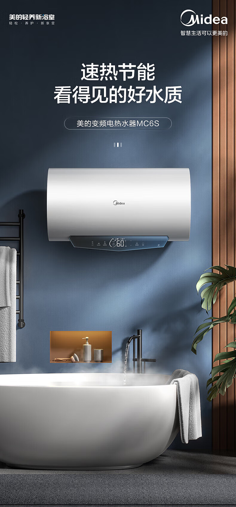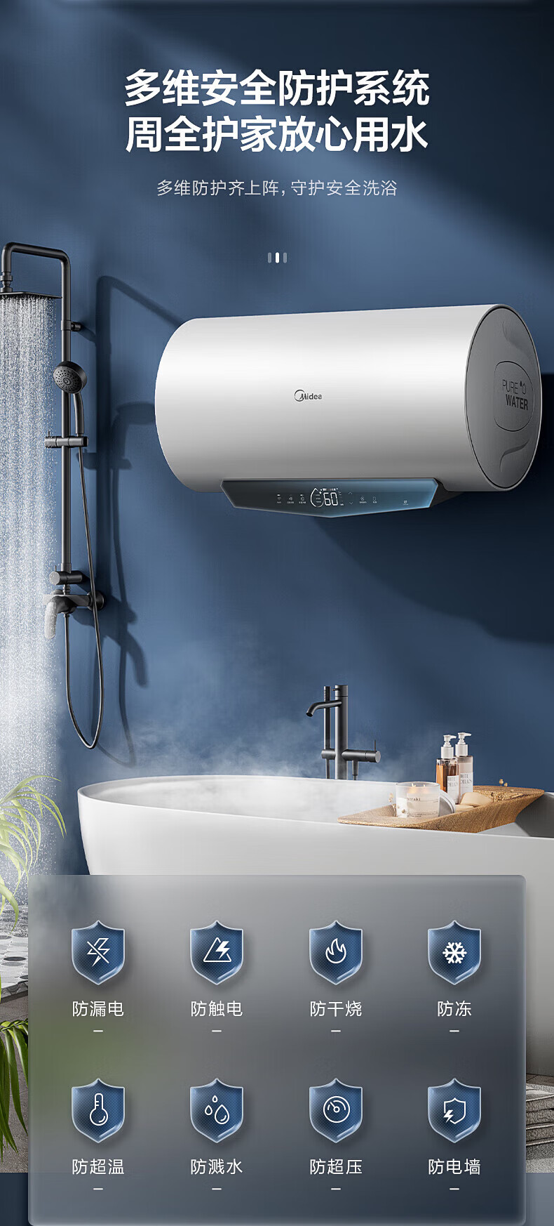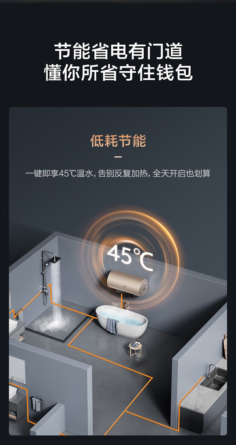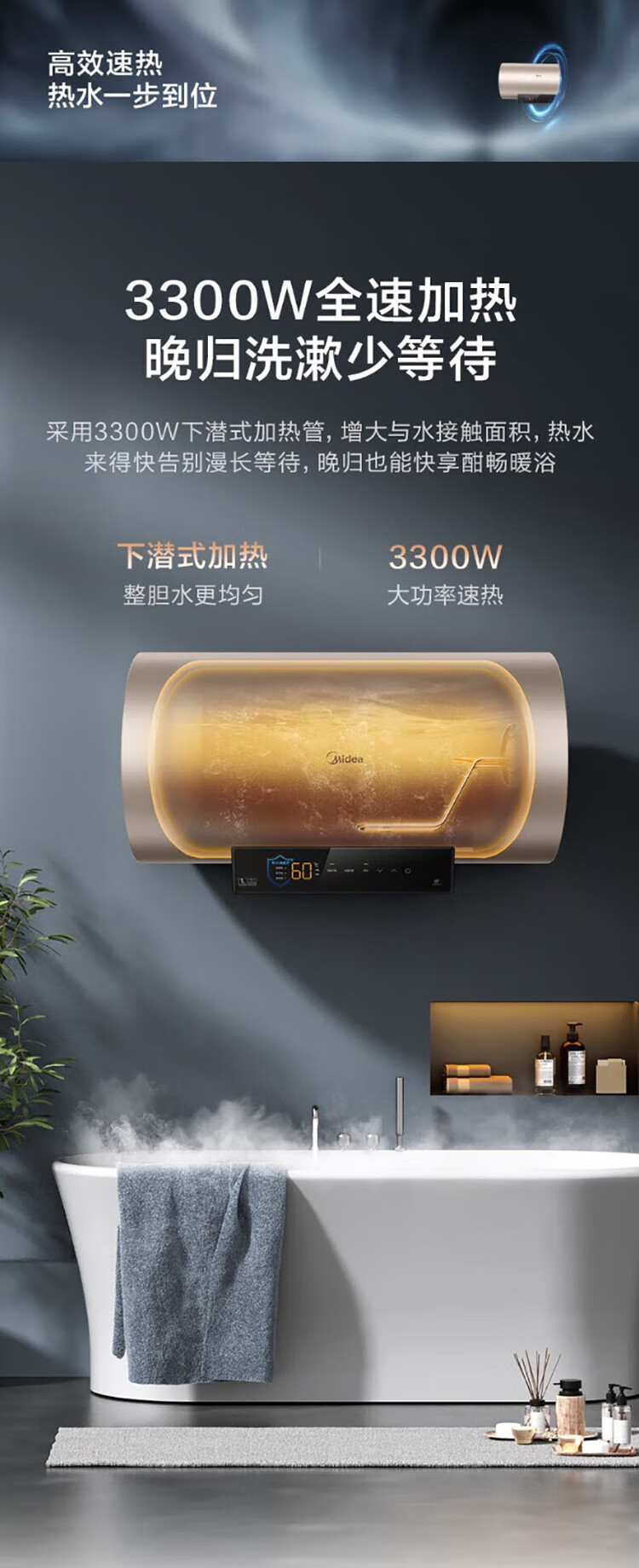 美的(Midea)电热水器50/60/80升一级能效3300W速热节能省电家用洗澡智能杀菌防电墙7倍大水量无缝内胆以旧换新 50L 3300W