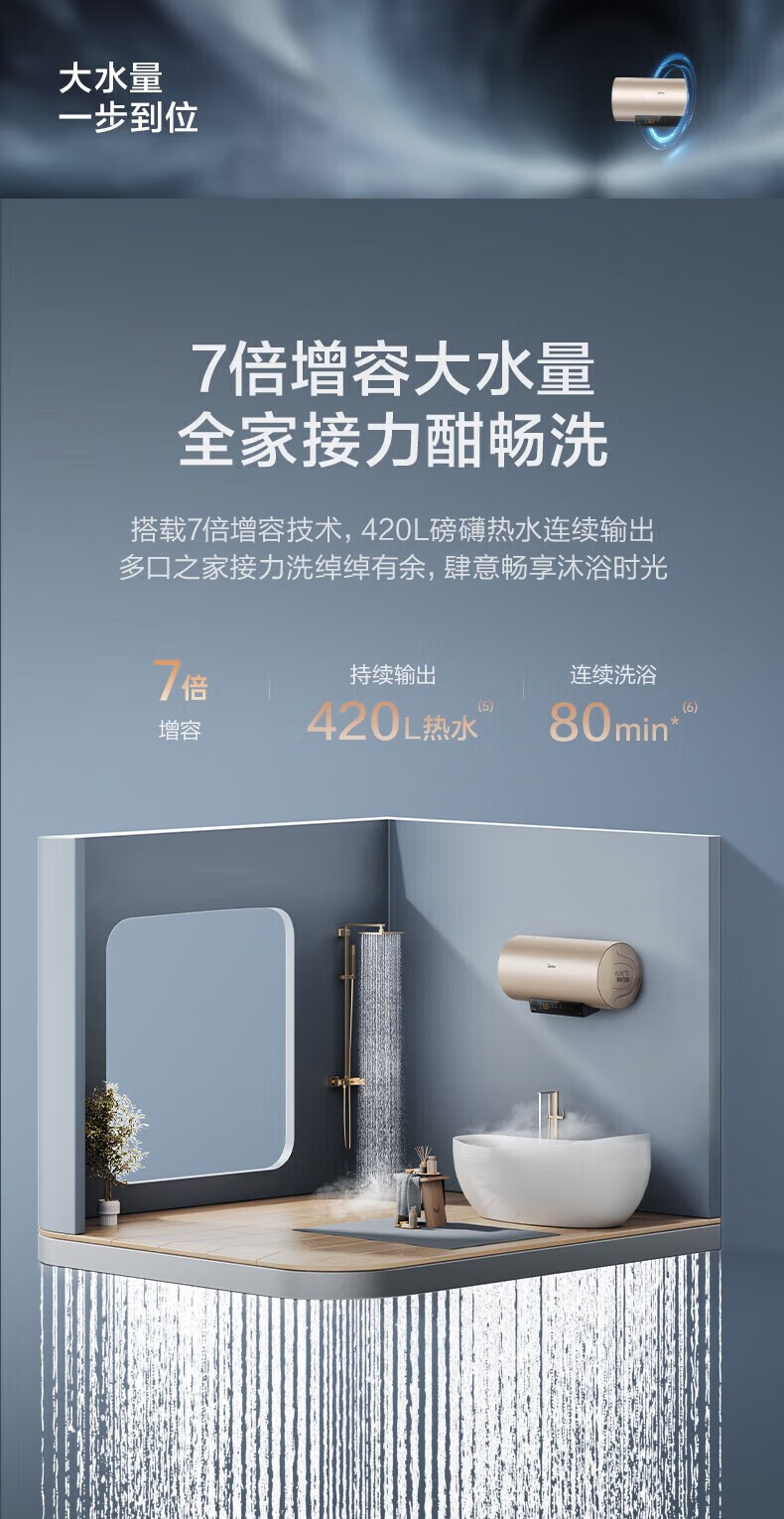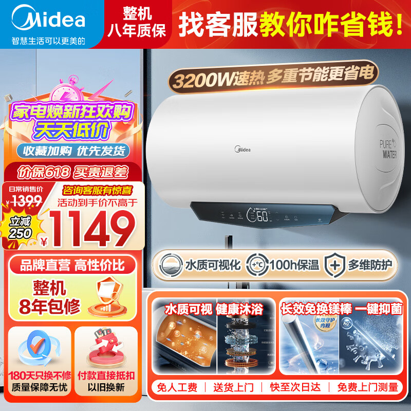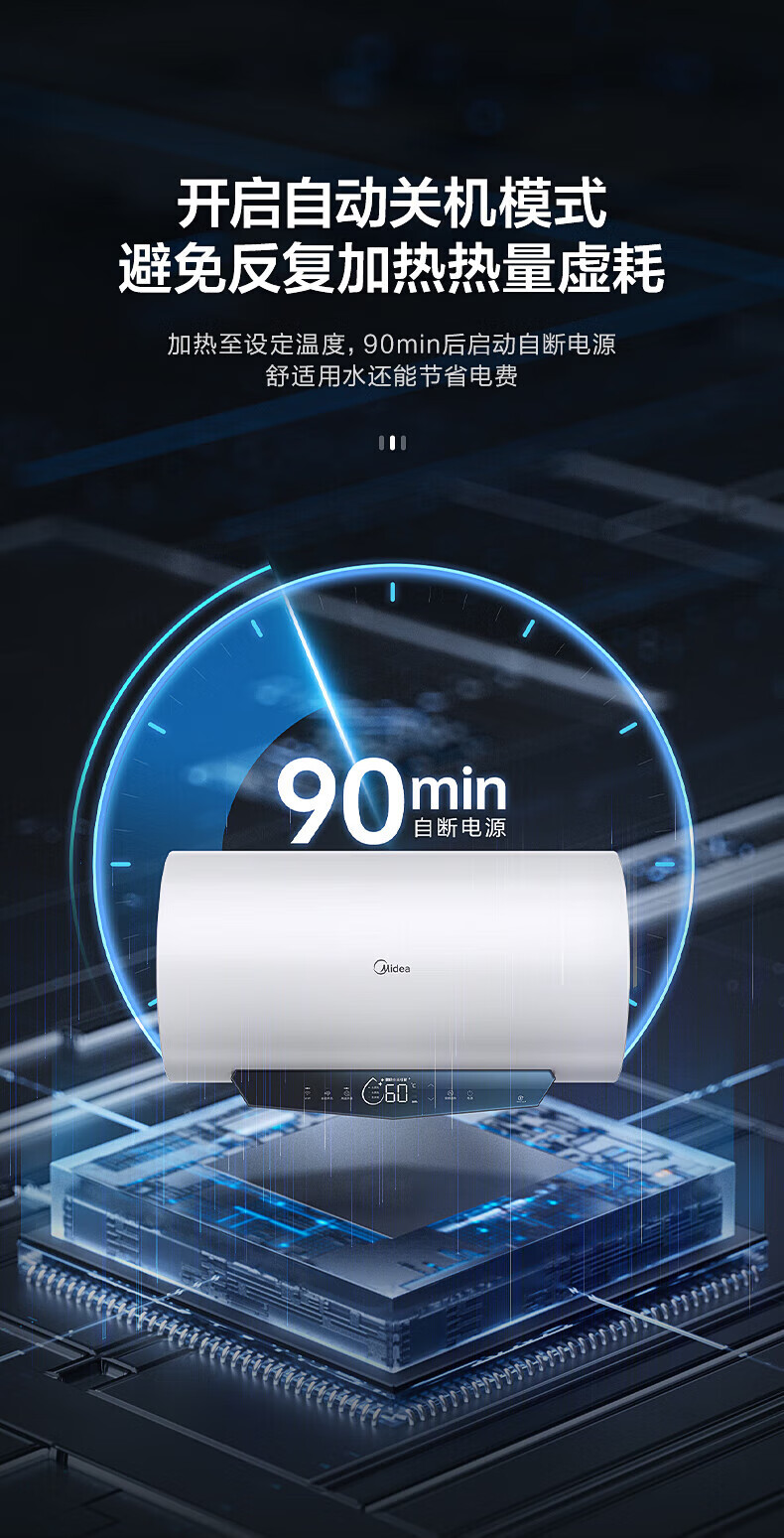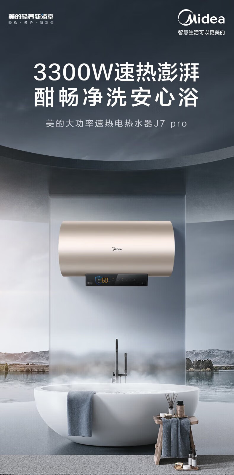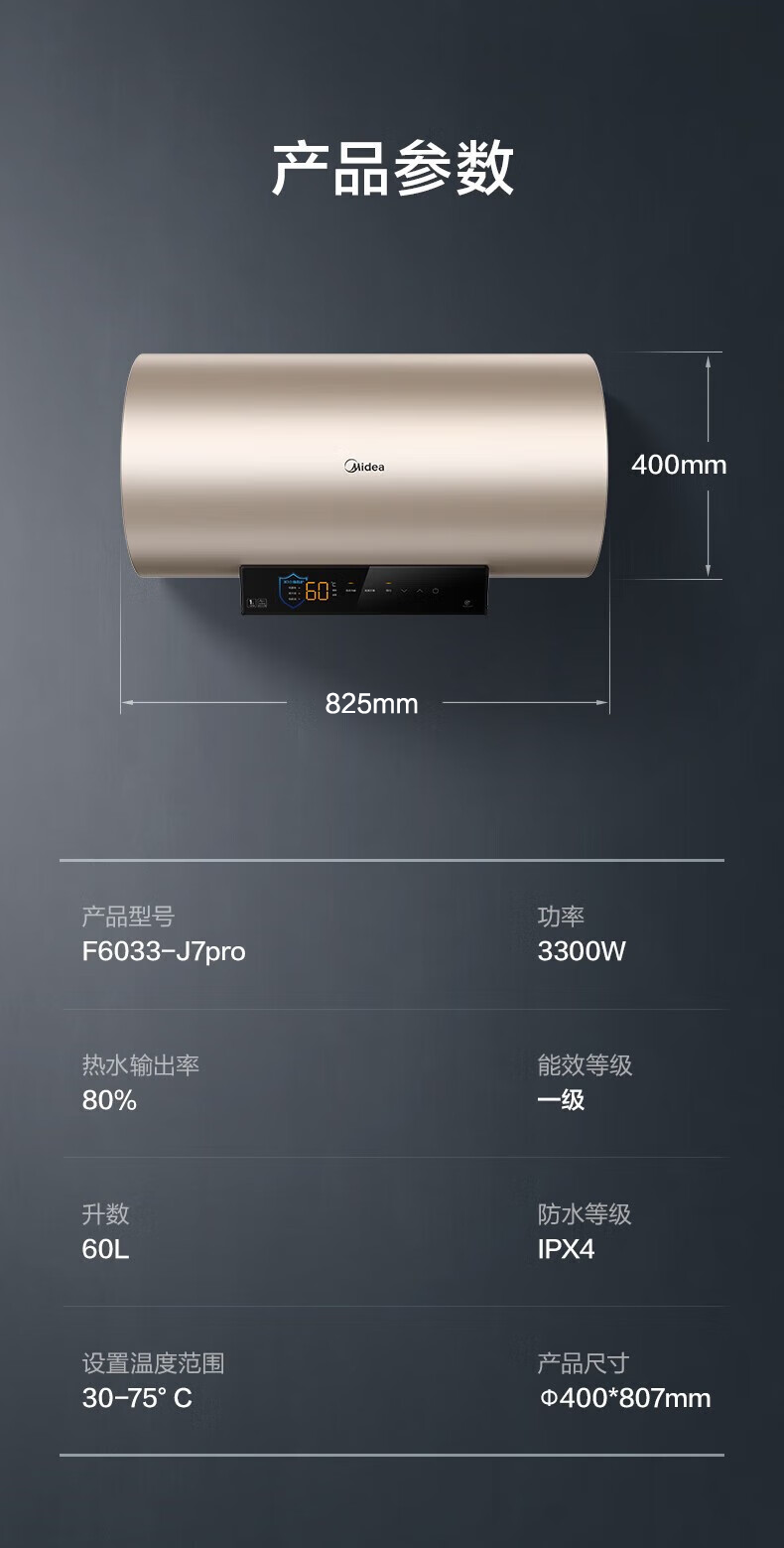 美的(Midea)电热水器50/60/80升一级能效3300W速热节能省电家用洗澡智能杀菌防电墙7倍大水量无缝内胆以旧换新 50L 3300W