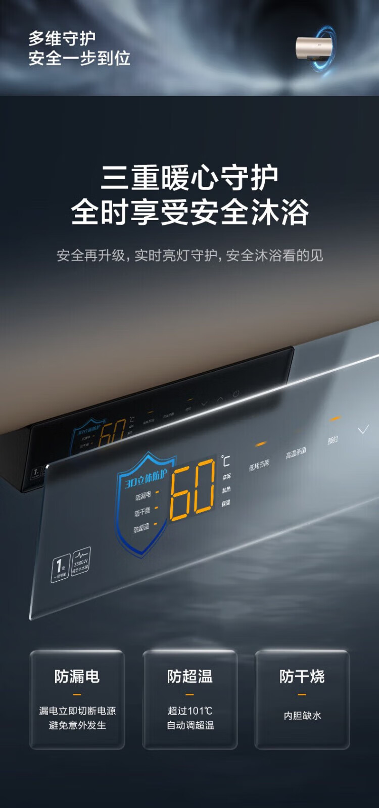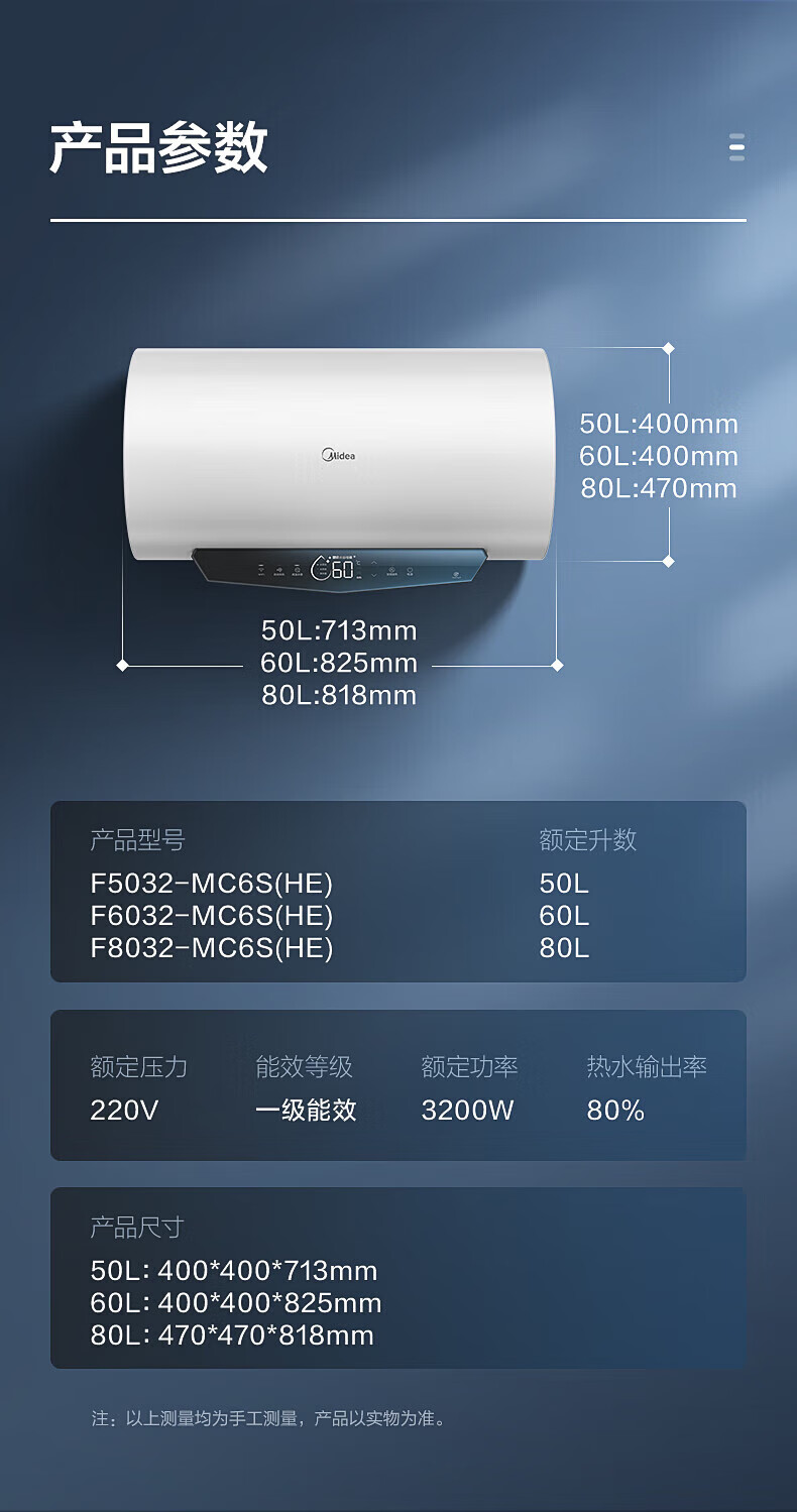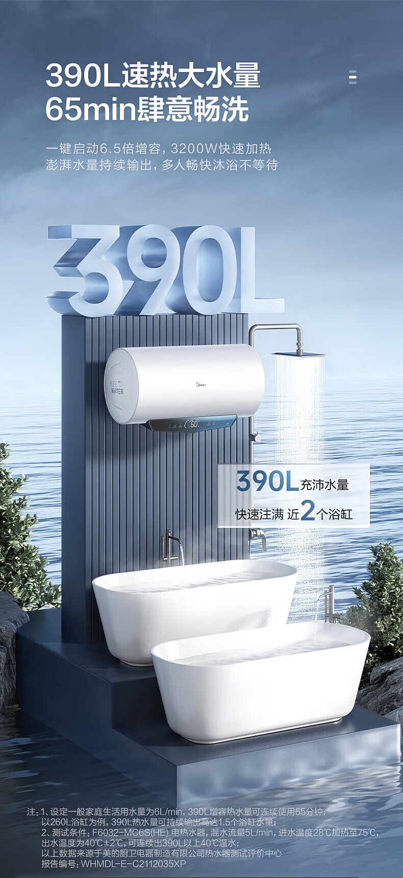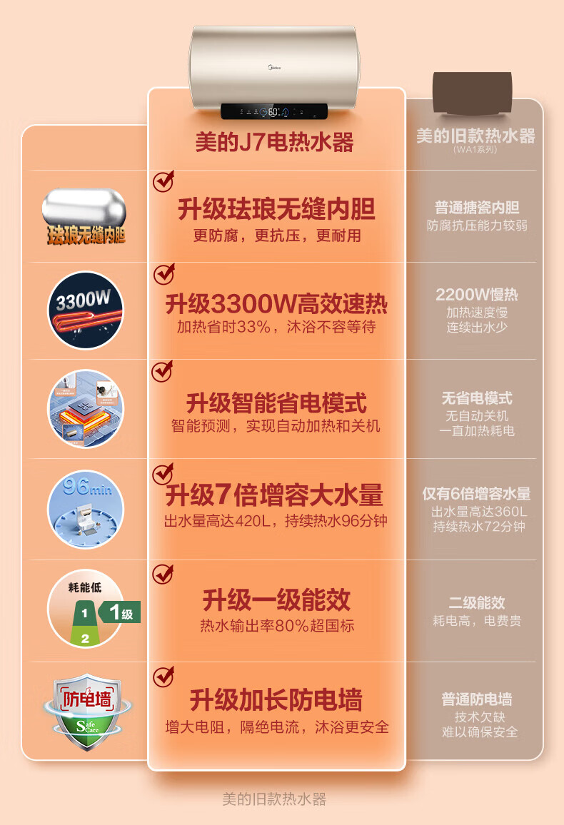 美的(Midea)电热水器50/60/80升一级能效3300W速热节能省电家用洗澡智能杀菌防电墙7倍大水量无缝内胆以旧换新 50L 3300W