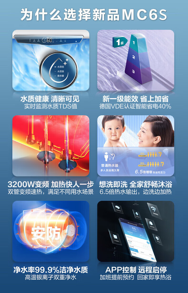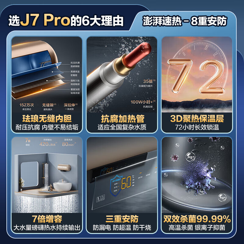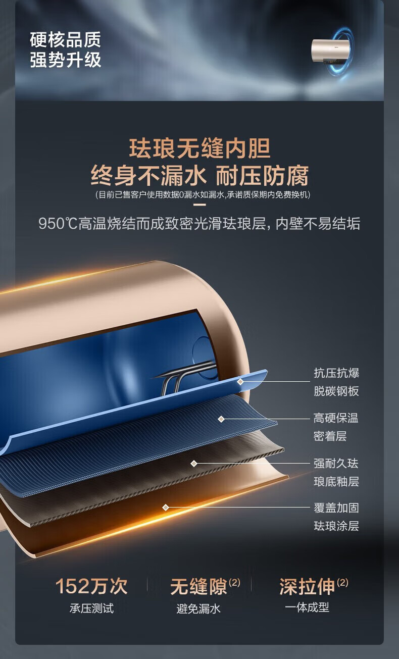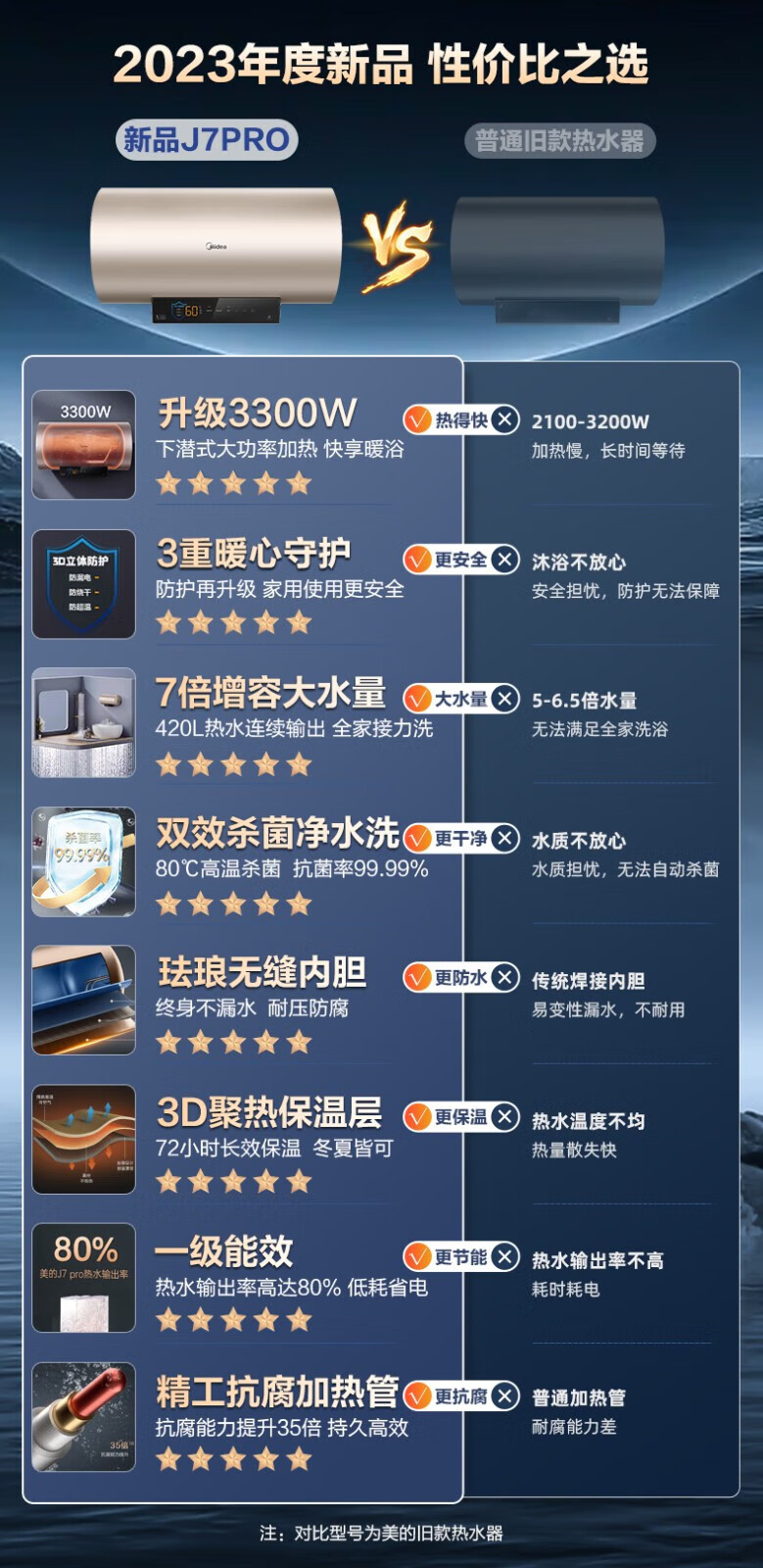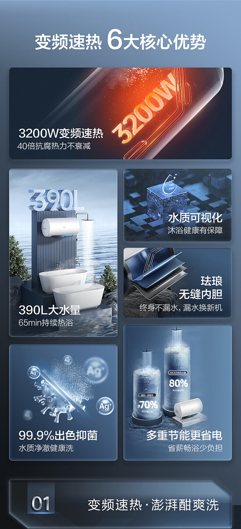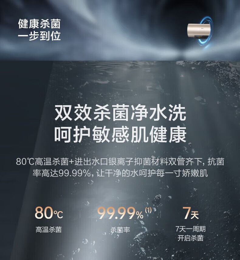 美的(Midea)电热水器50/60/80升一级能效3300W速热节能省电家用洗澡智能杀菌防电墙7倍大水量无缝内胆以旧换新 50L 3300W