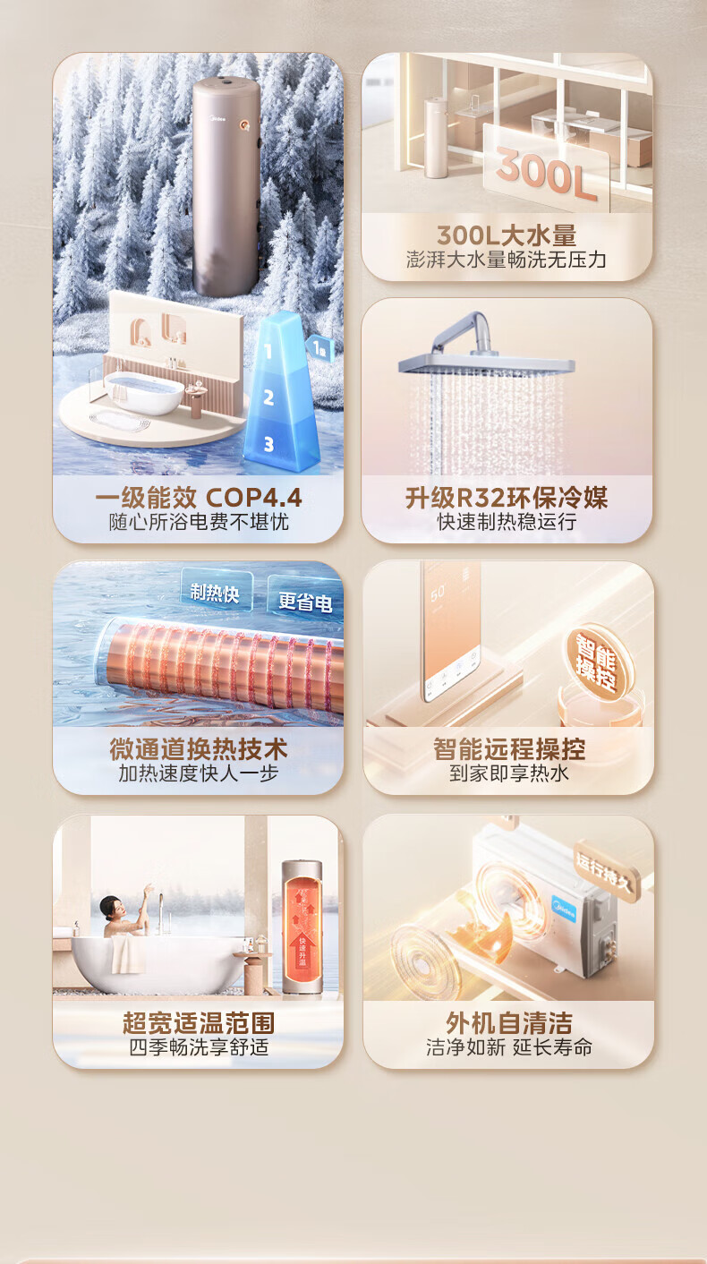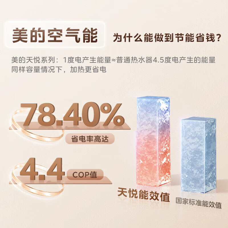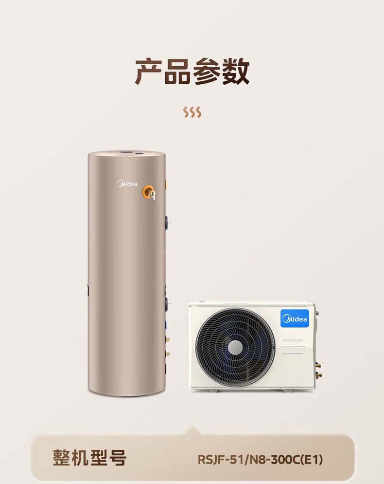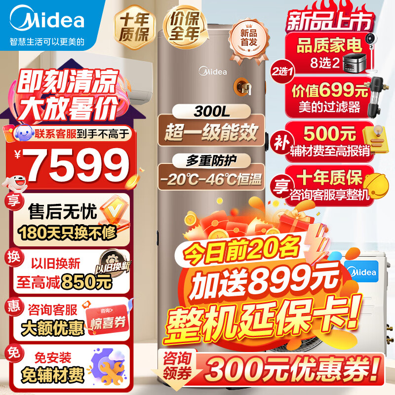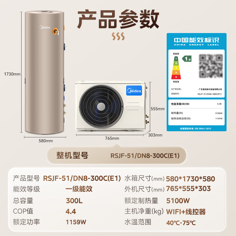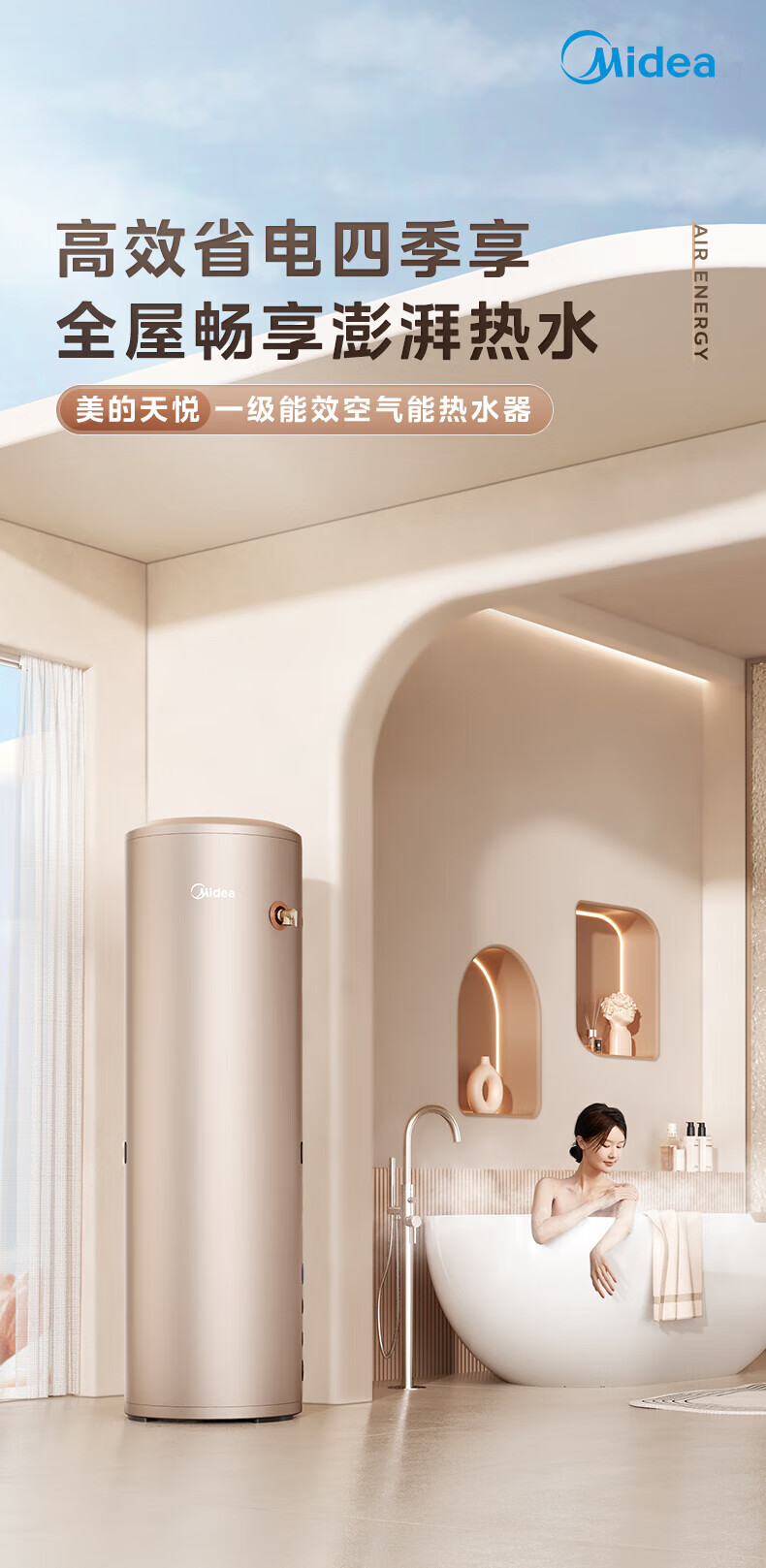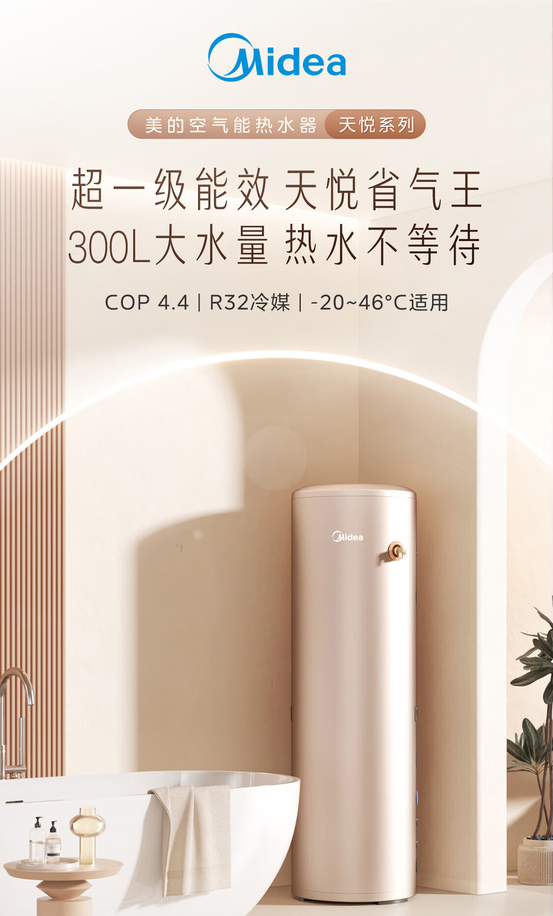 美的(Midea)超一级能效空气能热水器300升电辅热75度/纯热泵可选 大容量2匹空气源热泵家用商用包安装以旧换新