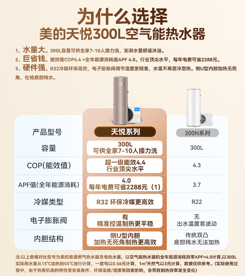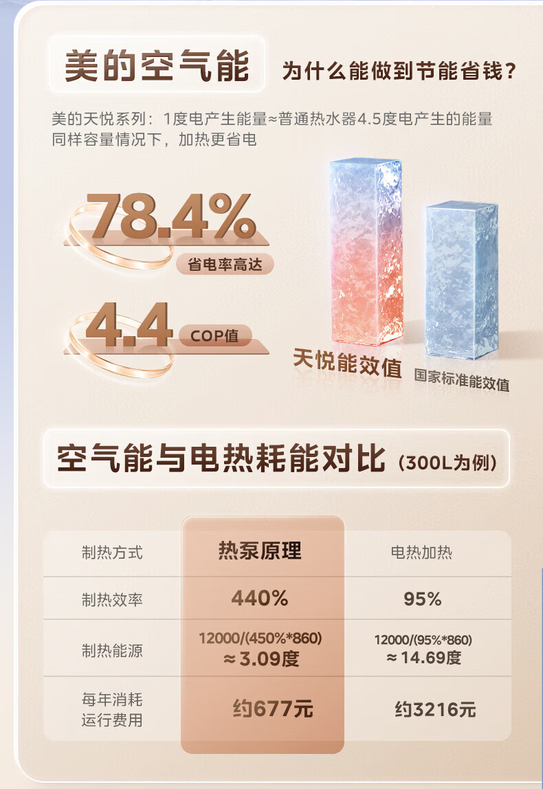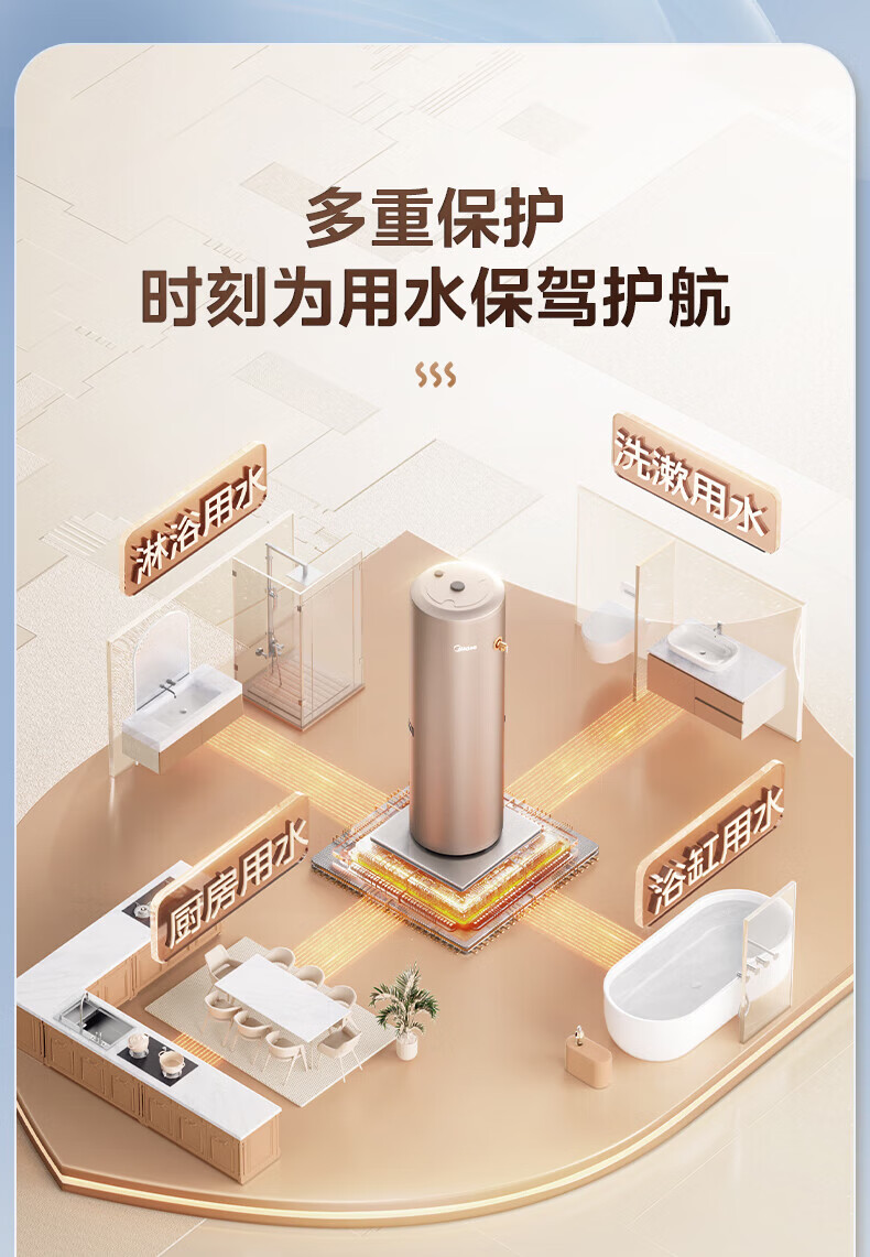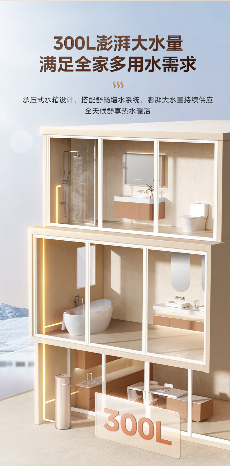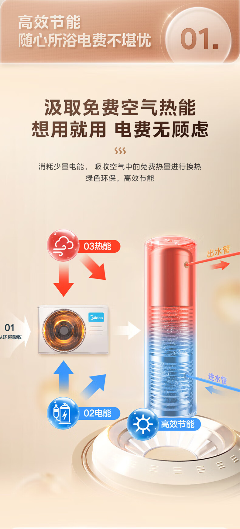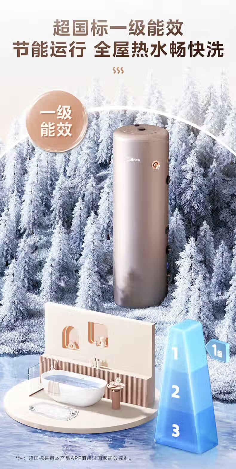 美的(Midea)超一级能效空气能热水器300升电辅热75度/纯热泵可选 大容量2匹空气源热泵家用商用包安装以旧换新