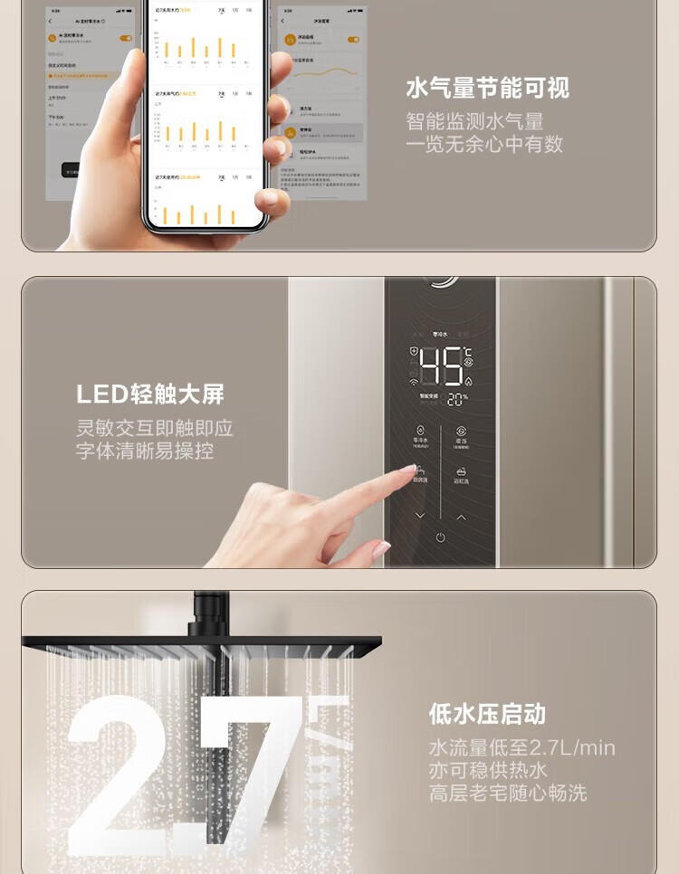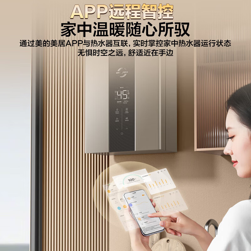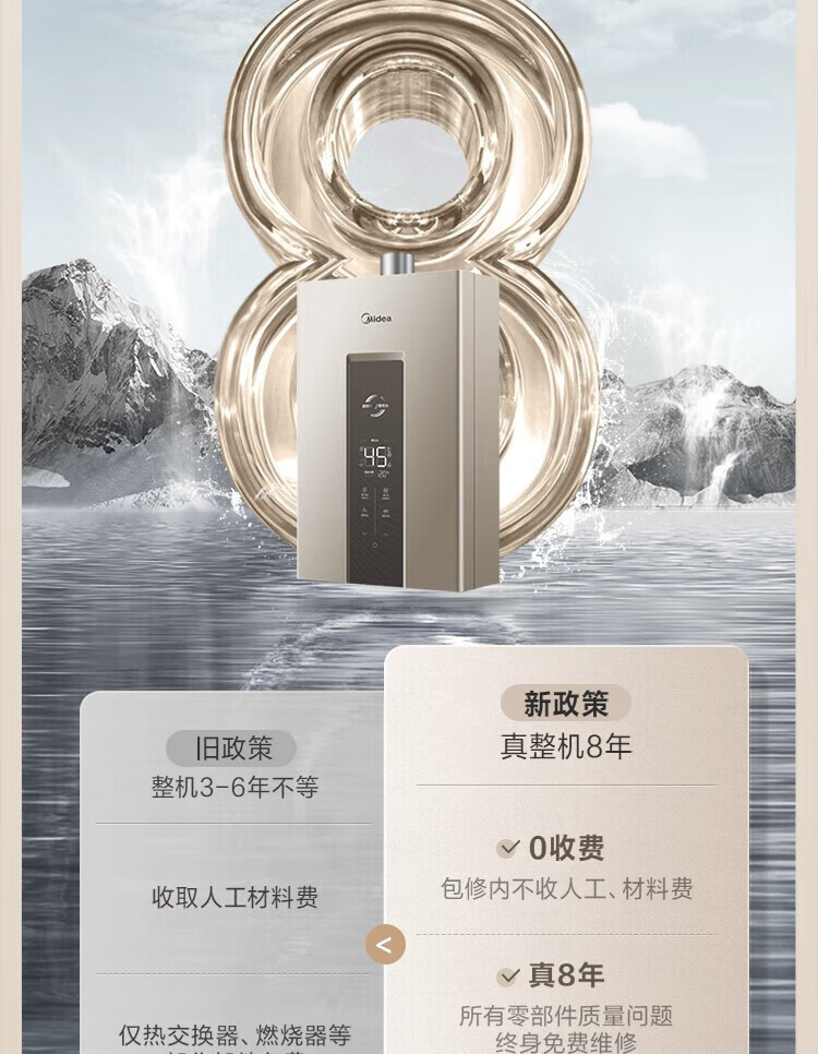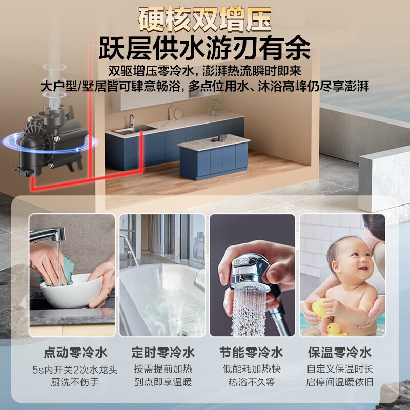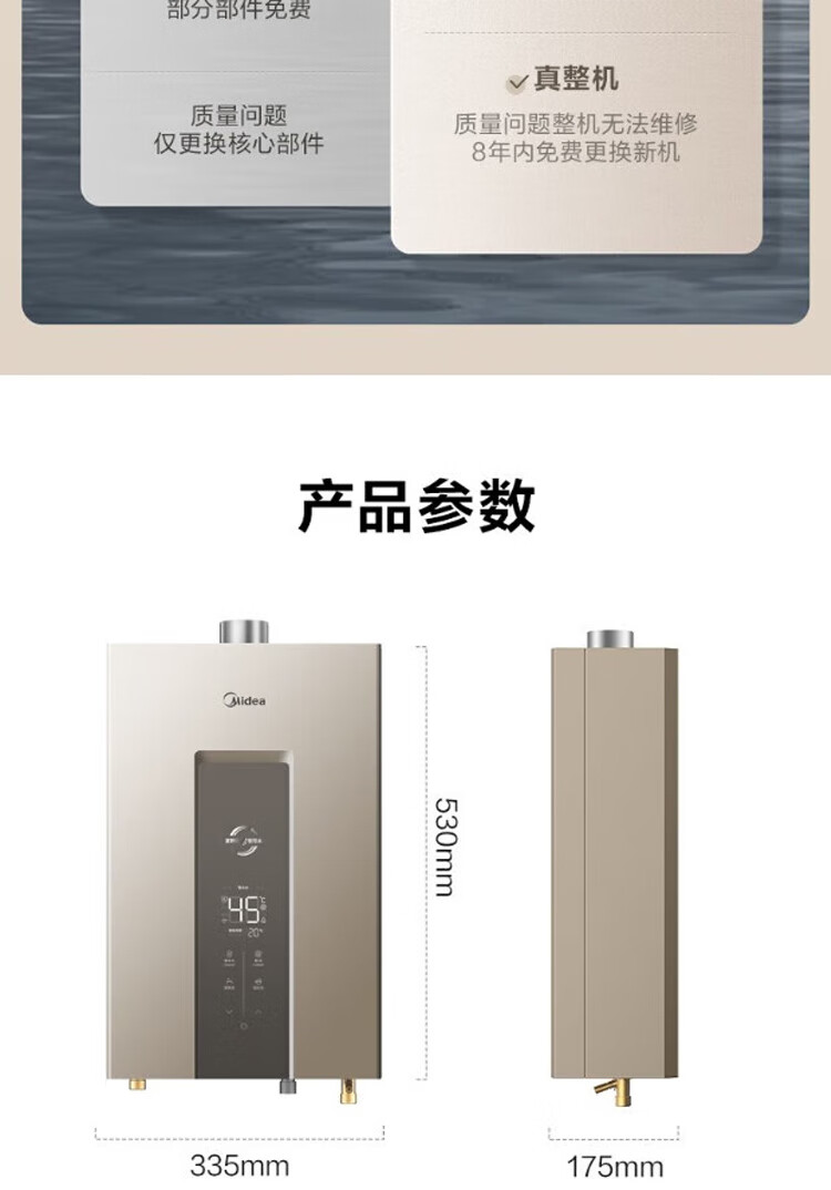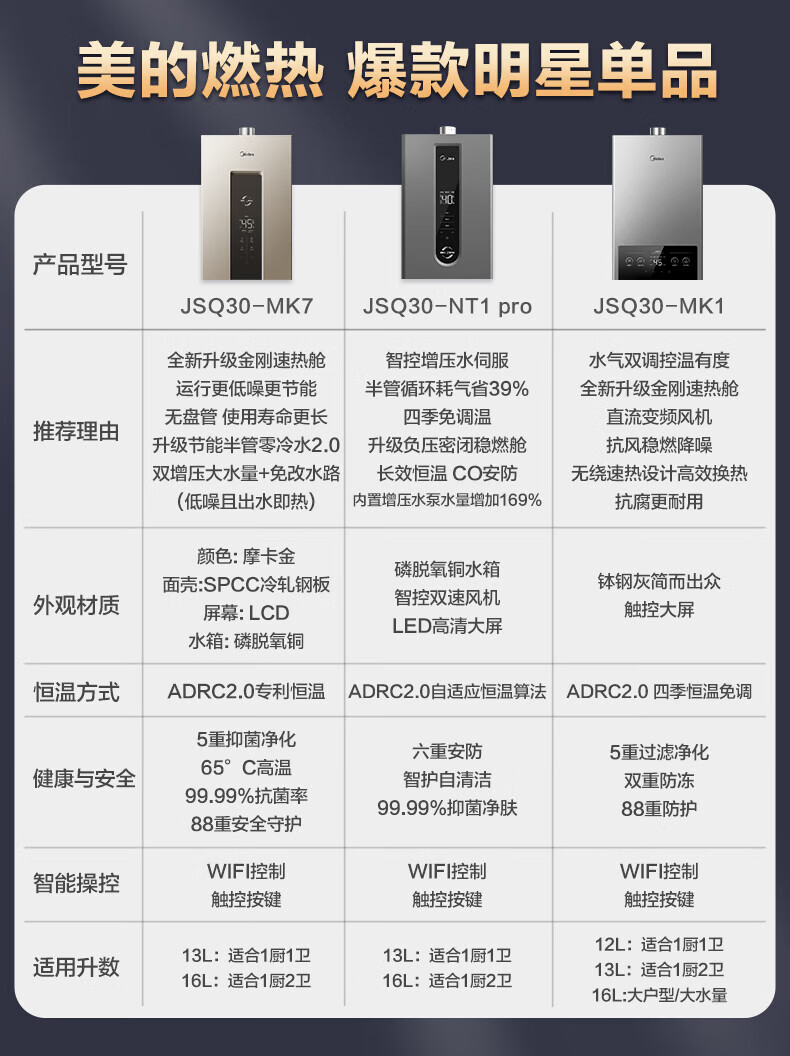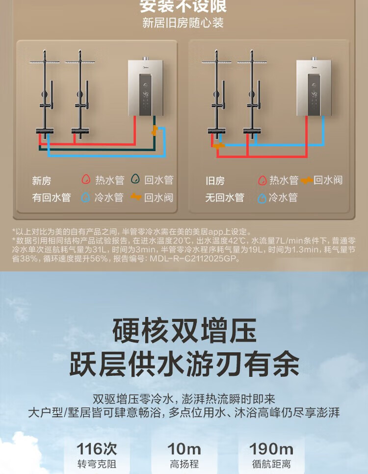 美的燃气热水器家用天然气13升/16升即热式强排式恒温升级双增压零冷水恒温速热低噪节能半管零冷水MK7 13L