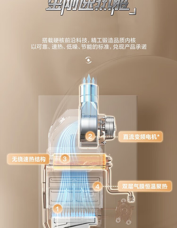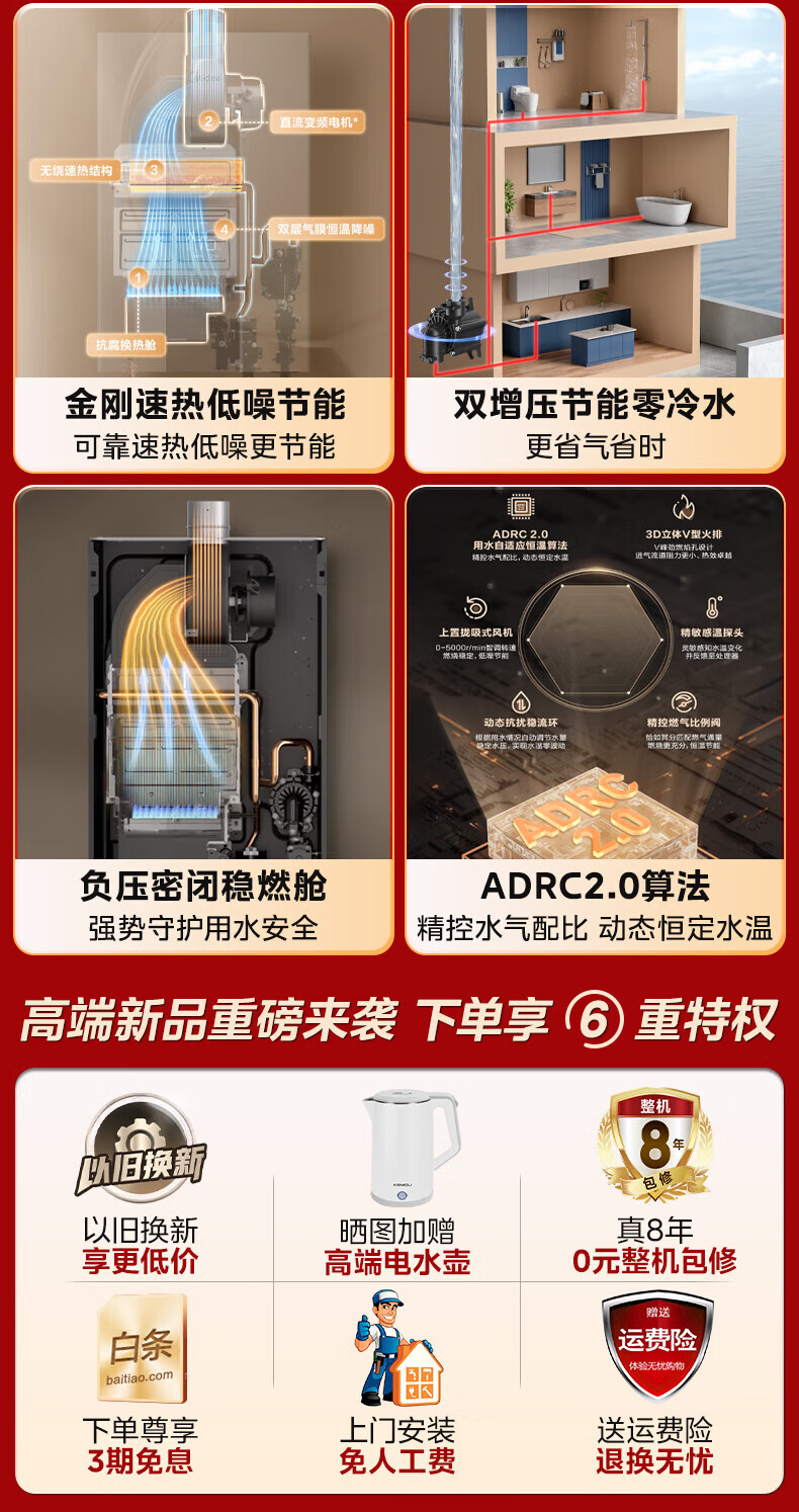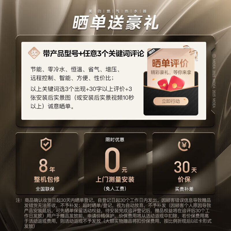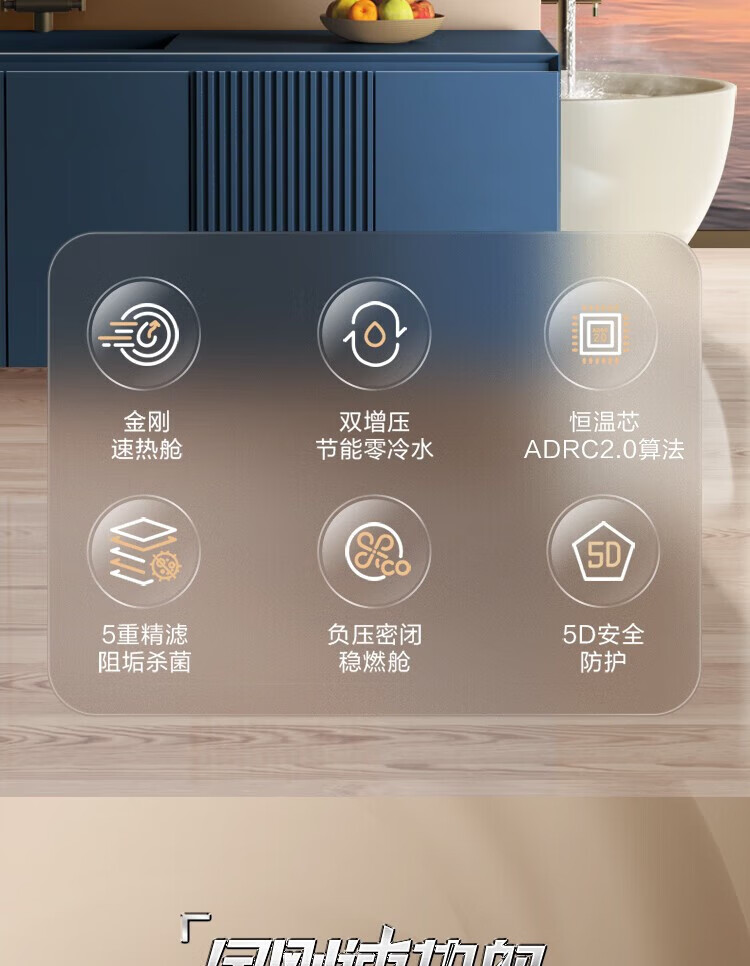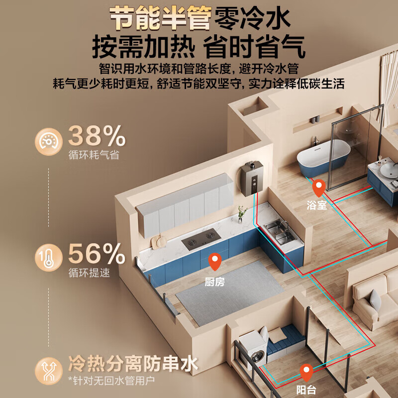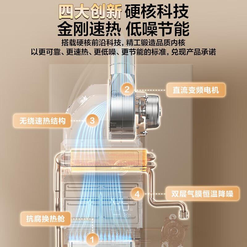 美的燃气热水器家用天然气13升/16升即热式强排式恒温升级双增压零冷水恒温速热低噪节能半管零冷水MK7 13L