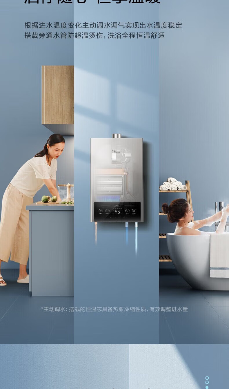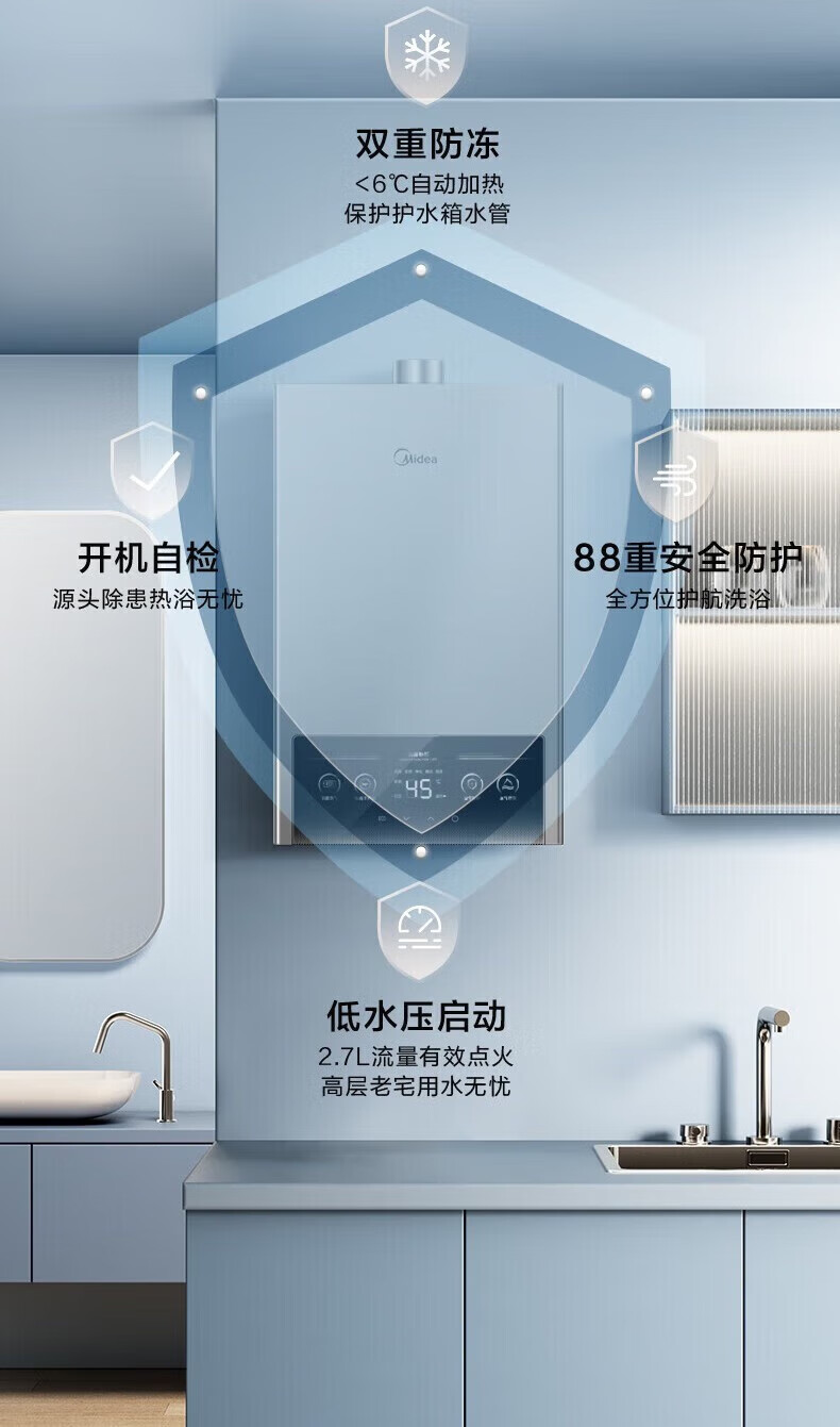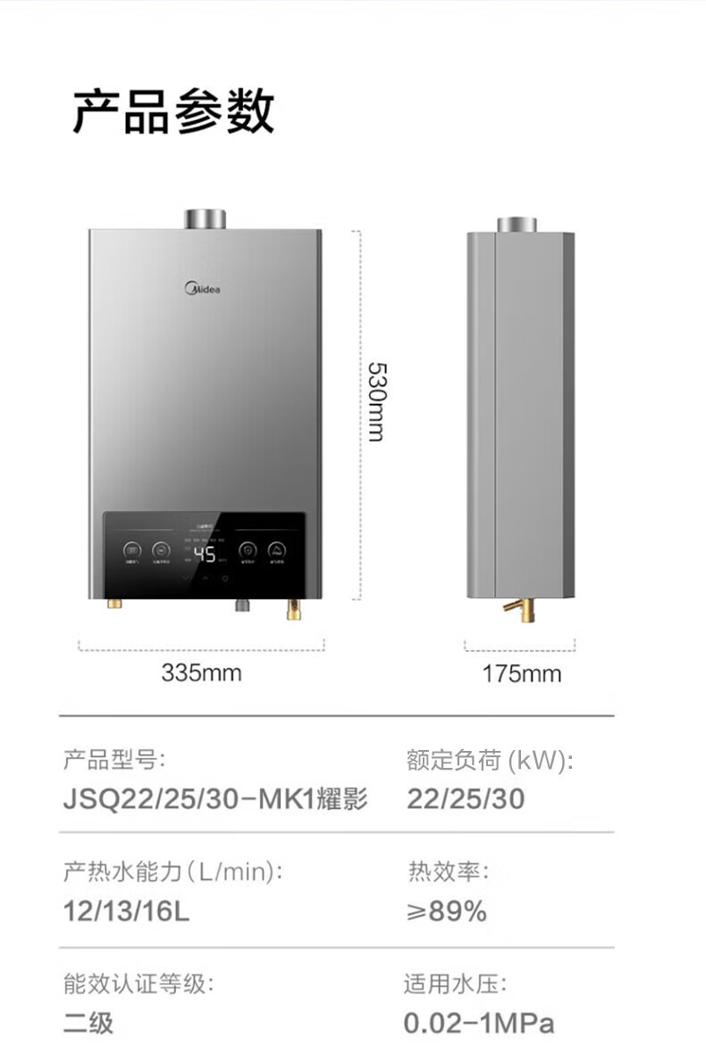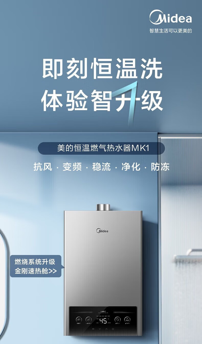 美的燃气热水器家用天然气12升/13升/16升即热式节能25%四季恒温多重安防LED大屏双重防冻免调MK1 12L
