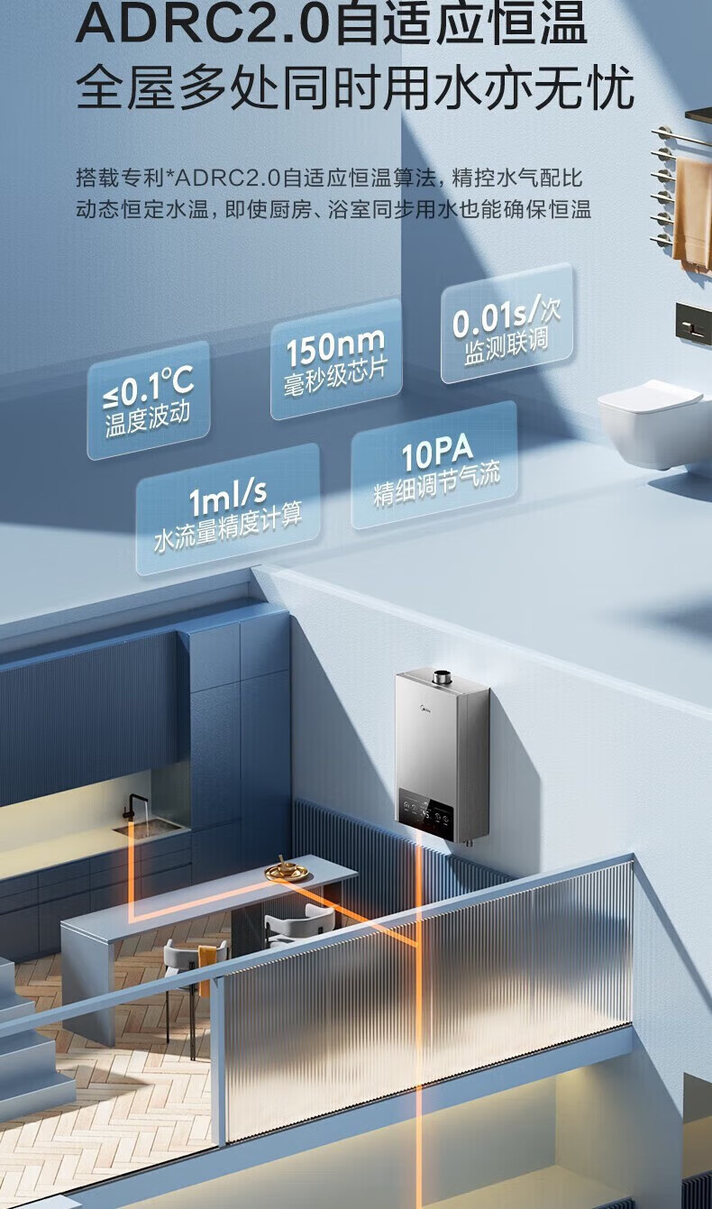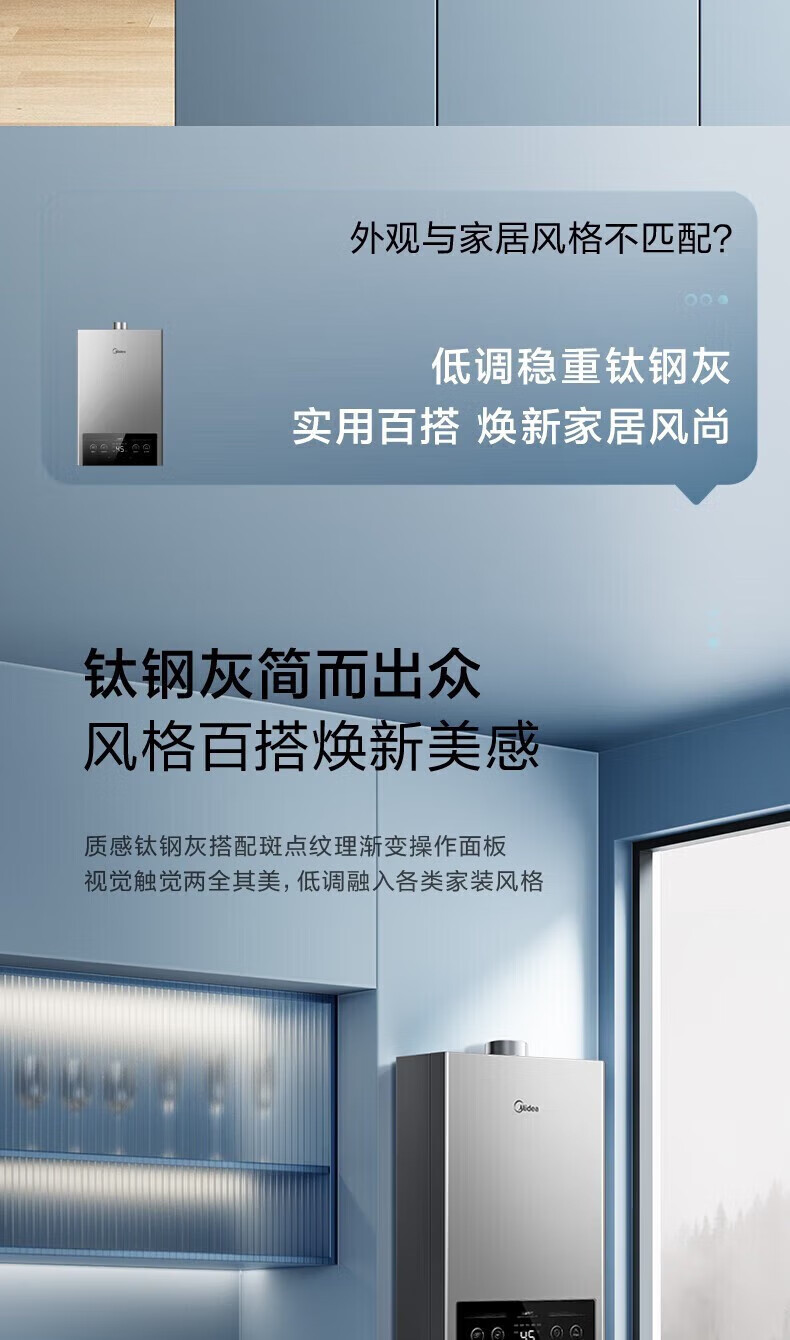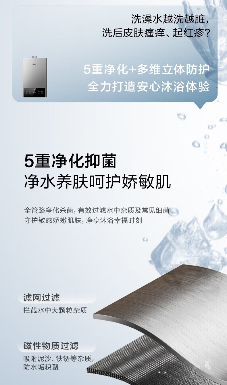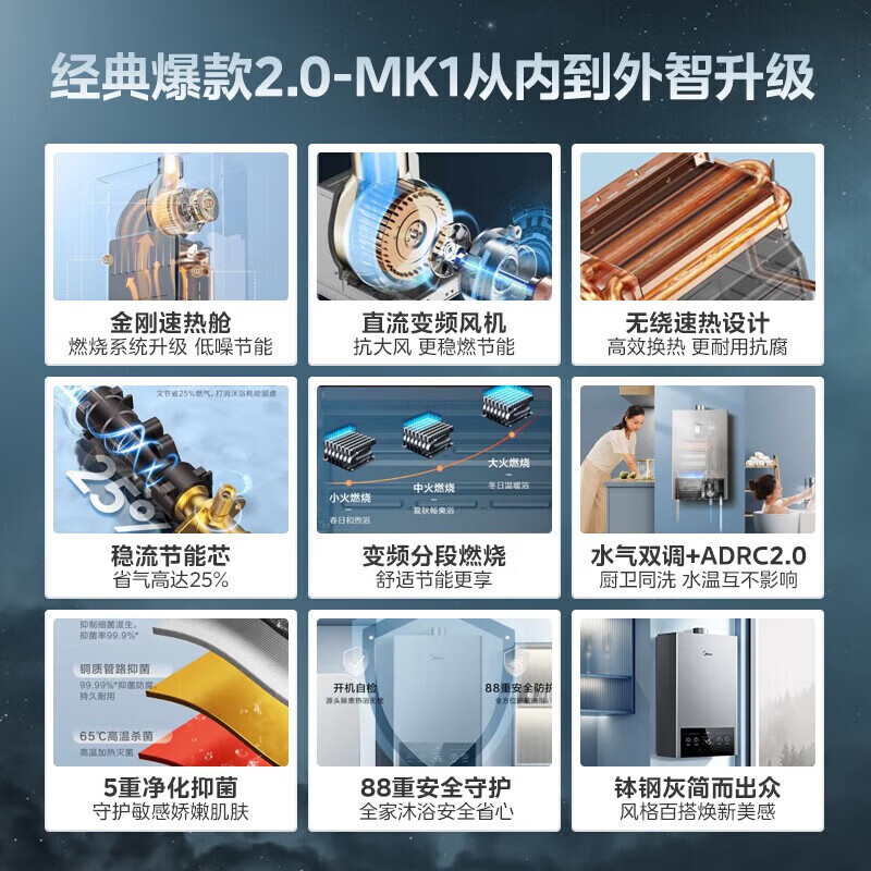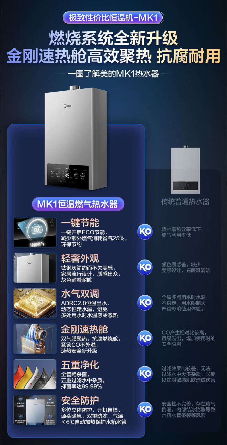 美的燃气热水器家用天然气12升/13升/16升即热式节能25%四季恒温多重安防LED大屏双重防冻免调MK1 12L