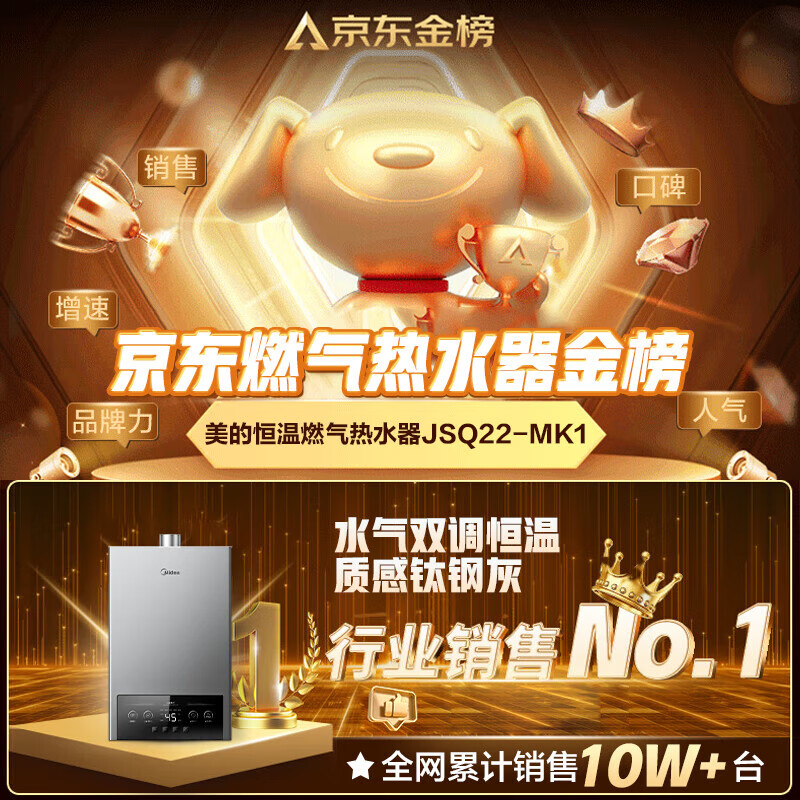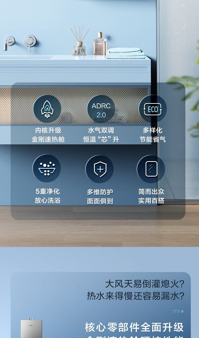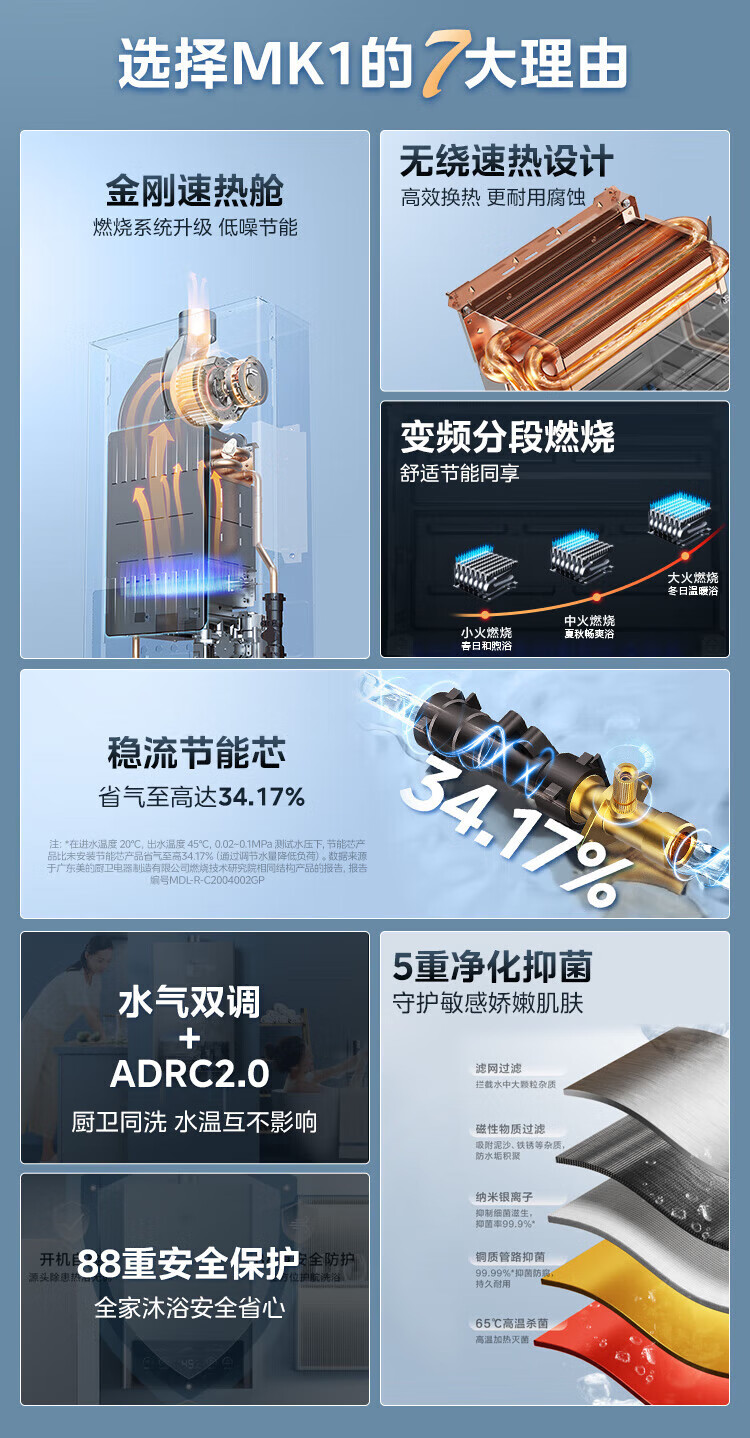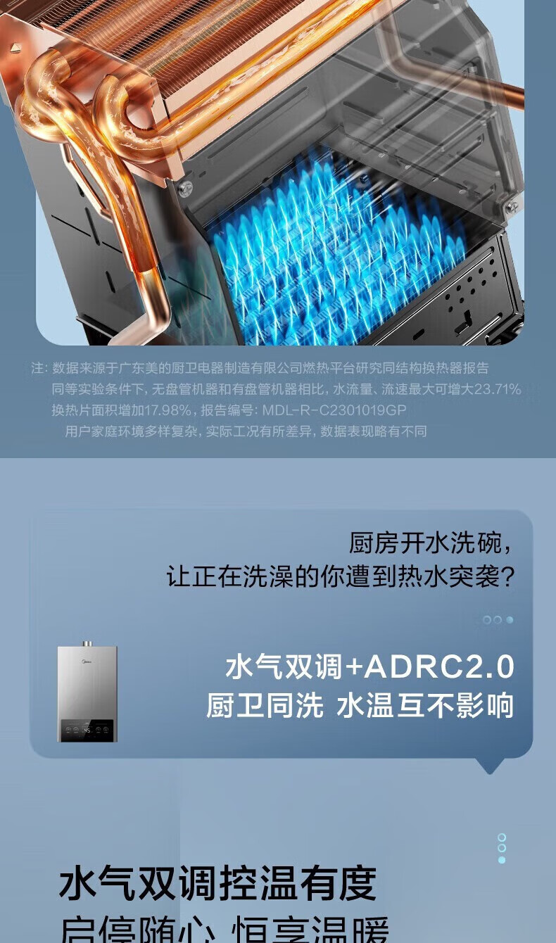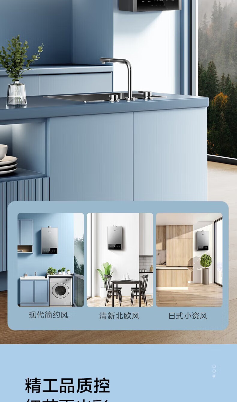 美的燃气热水器家用天然气12升/13升/16升即热式节能25%四季恒温多重安防LED大屏双重防冻免调MK1 12L