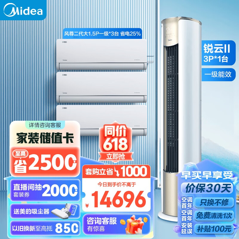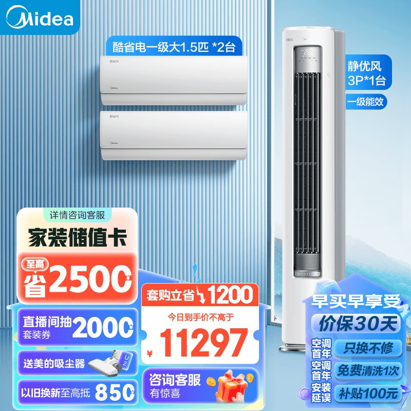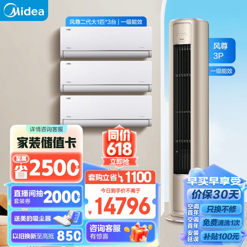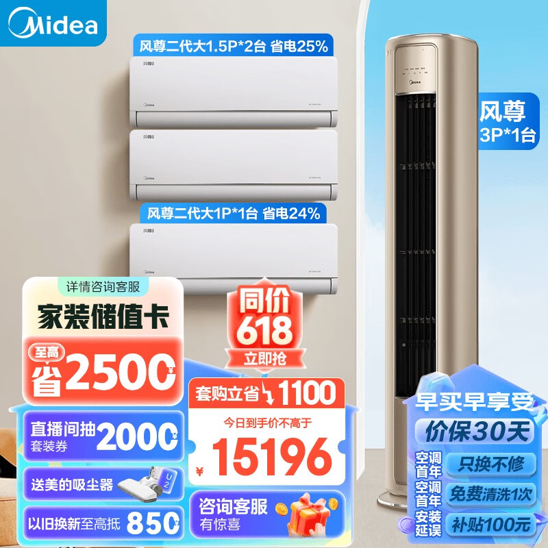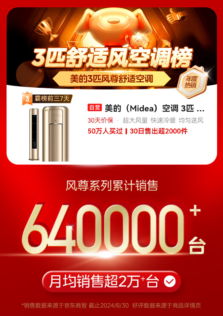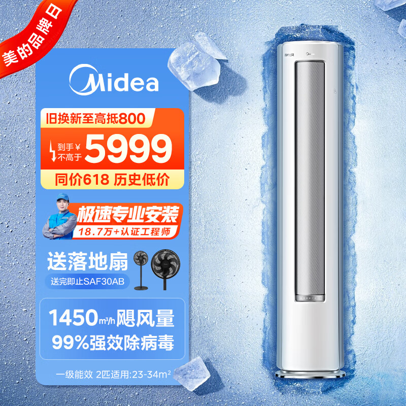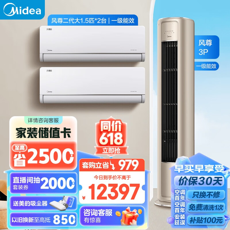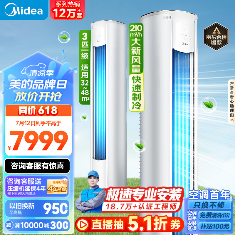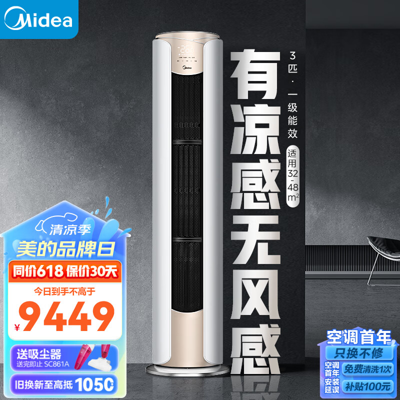 美的(Midea)空调 3匹 风尊 新一级能效 变频冷暖 独立除湿 客厅空调立式 空调柜机