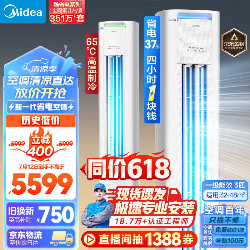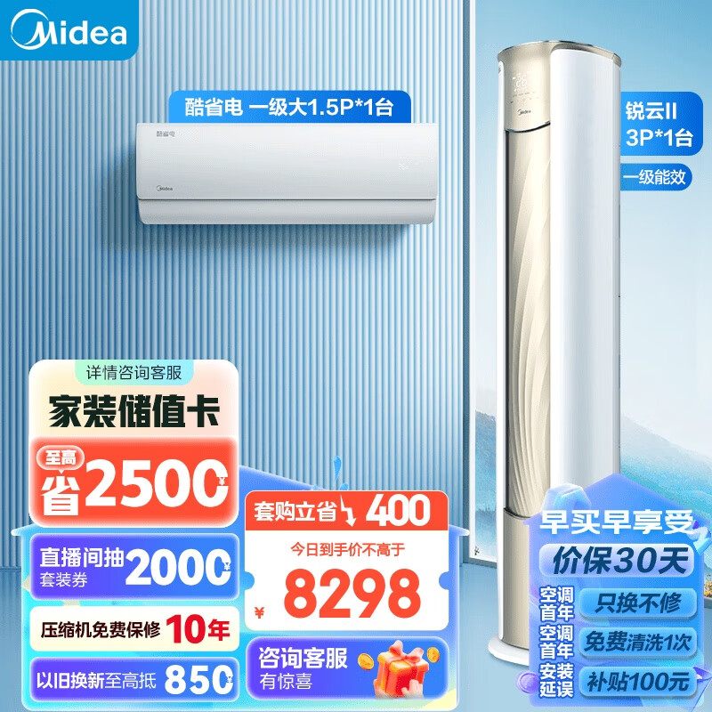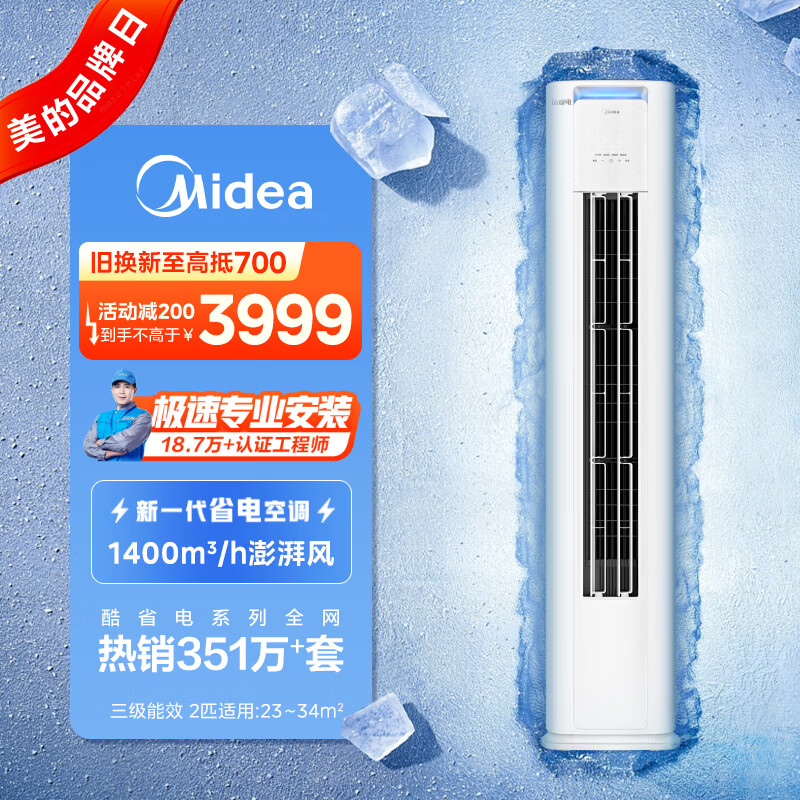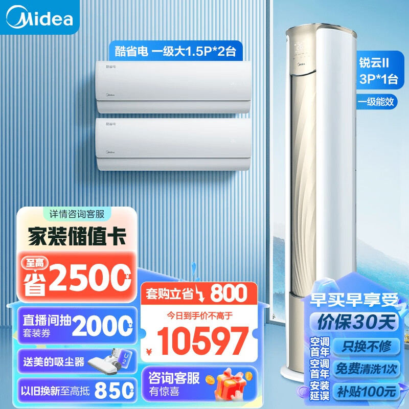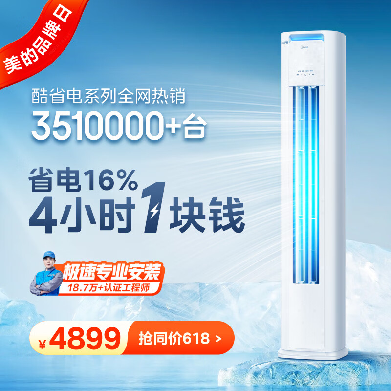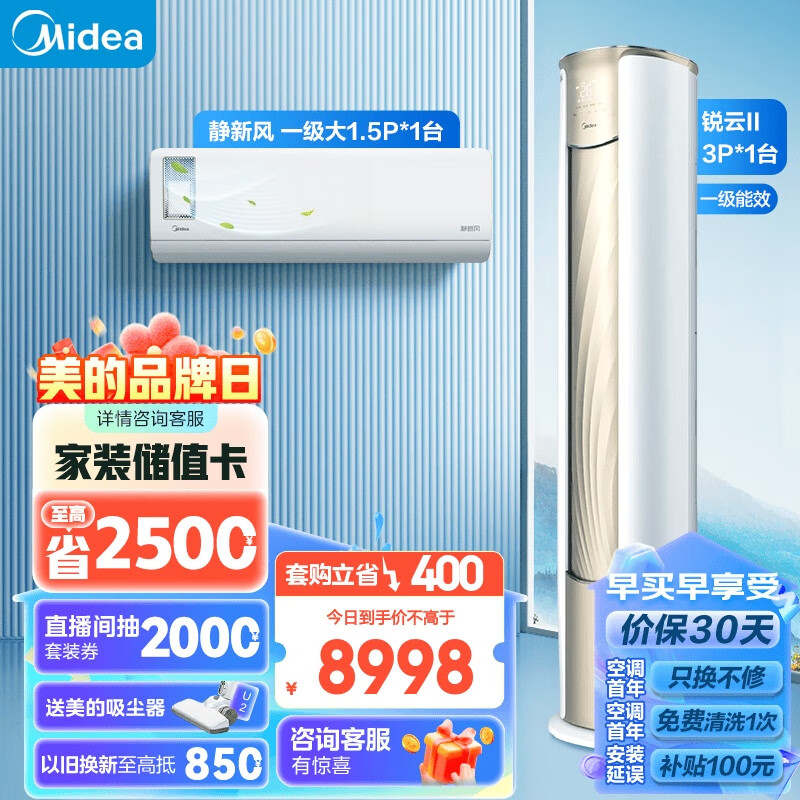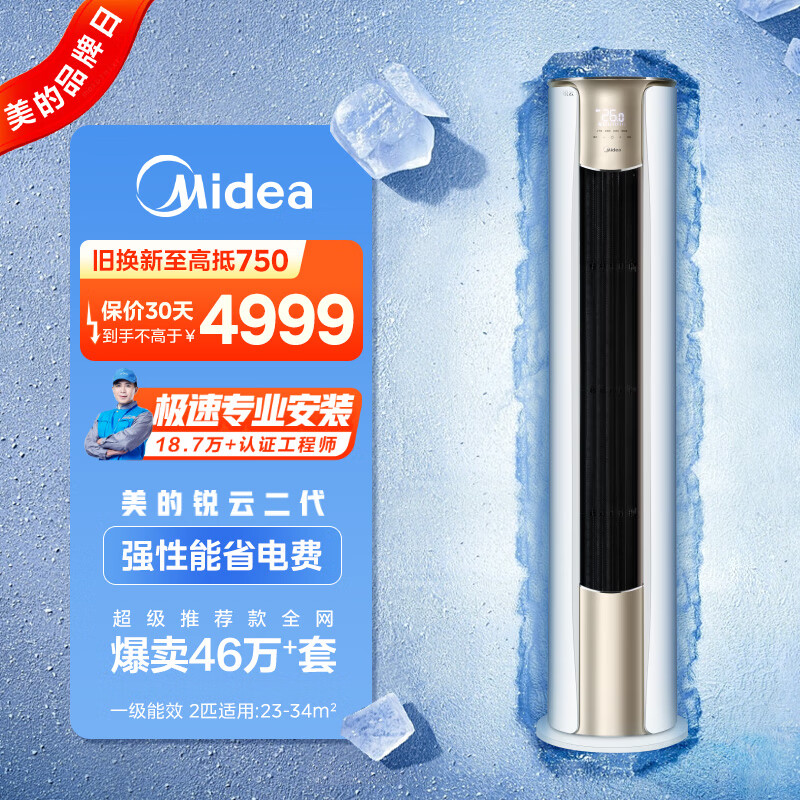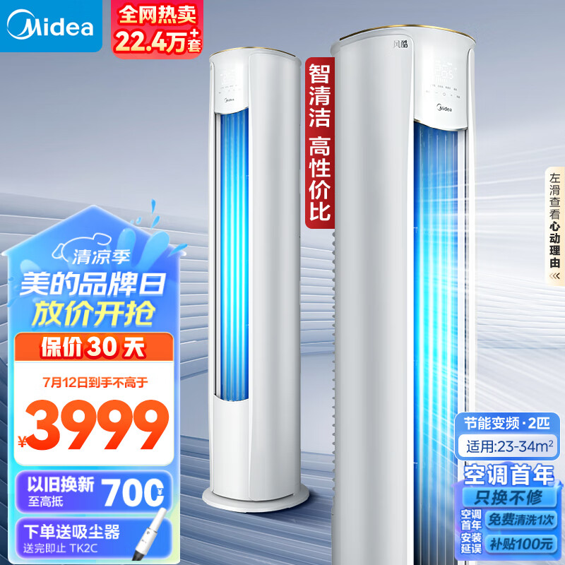 美的(Midea)空调 3匹 锐云2代 新一级能效 变频冷暖 除湿 空调立式 客厅空调柜机
