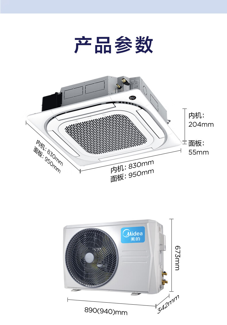 • 内机尺寸: 宽830mm;高204mm;深830mm