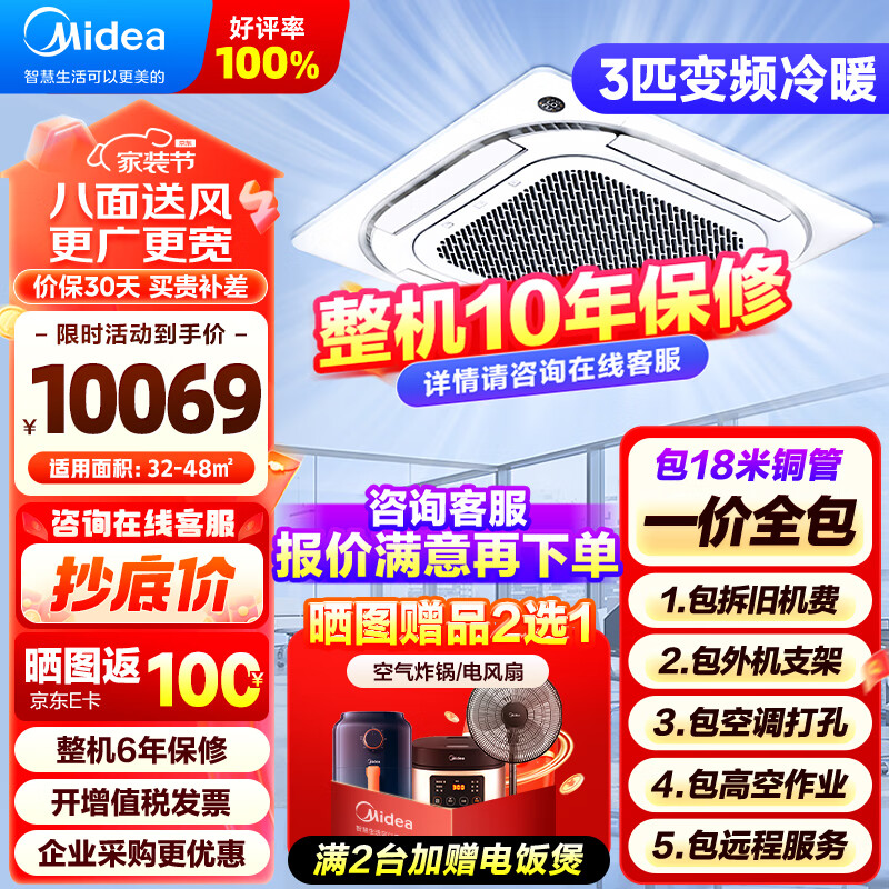 美的(Midea)空调天花机 3匹 一级能效 嵌入式吸顶机