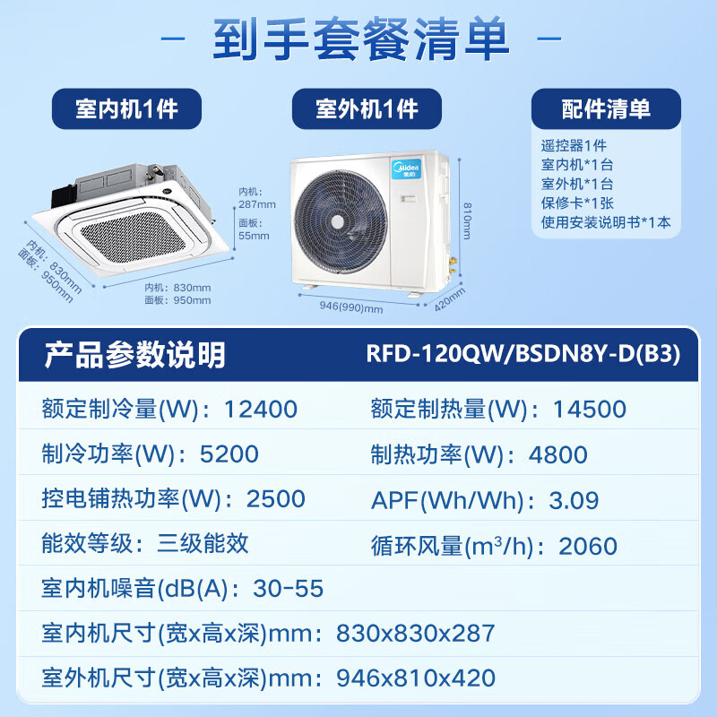 • 内机尺寸: 宽830mm;高830mm;深287mm