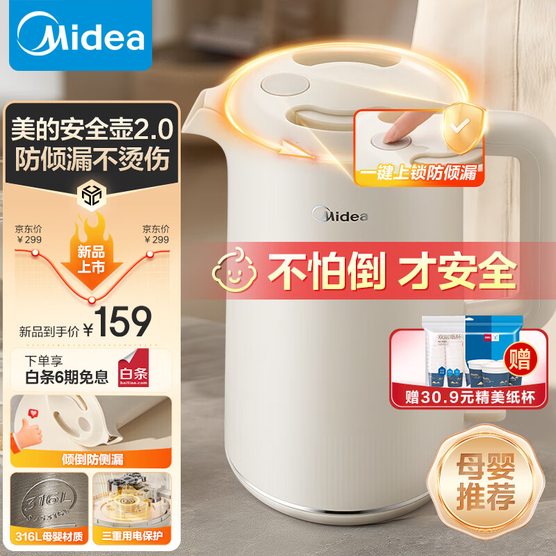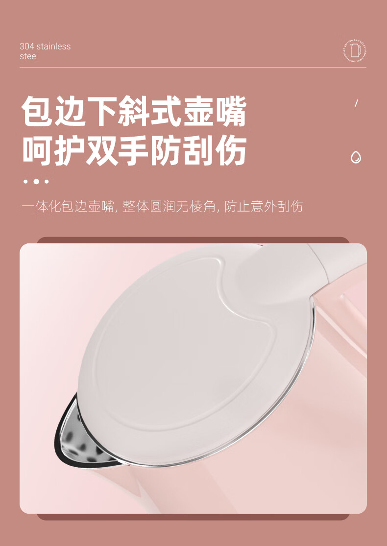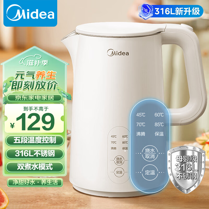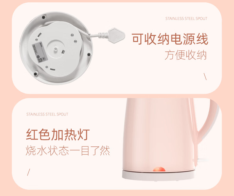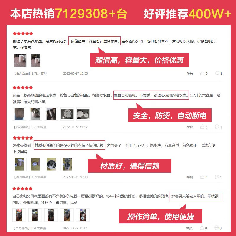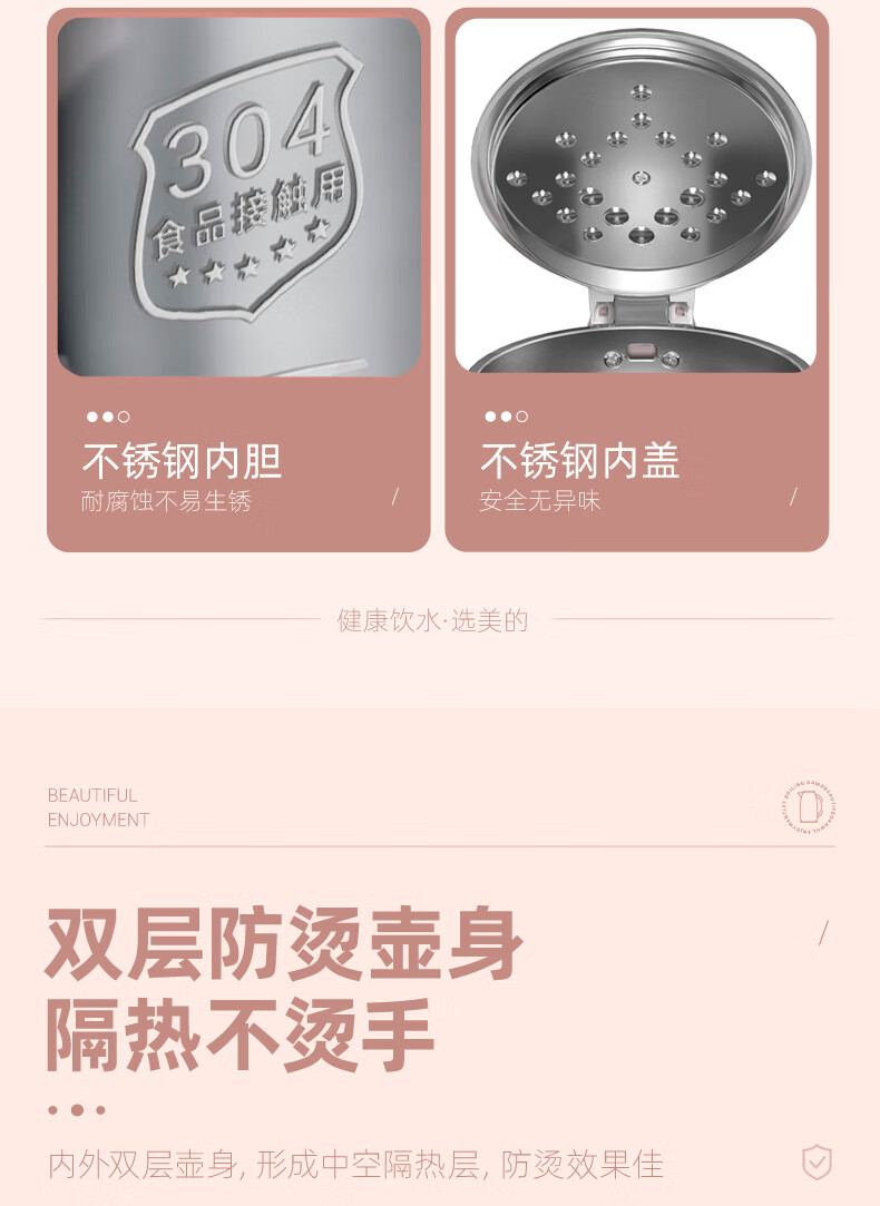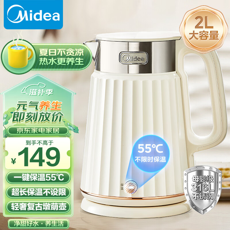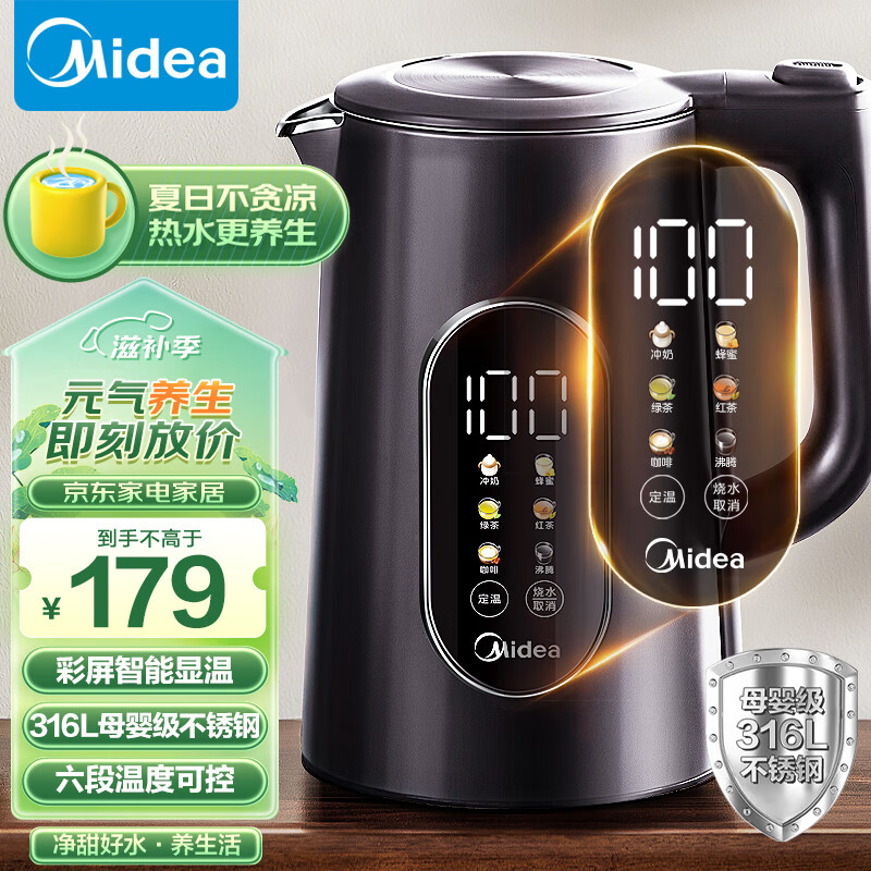 美的(Midea)电水壶热水壶电热水壶304不锈钢1.7L容量暖水壶烧水壶净甜家用大容量开水壶智能自动断电MK-HJ1705