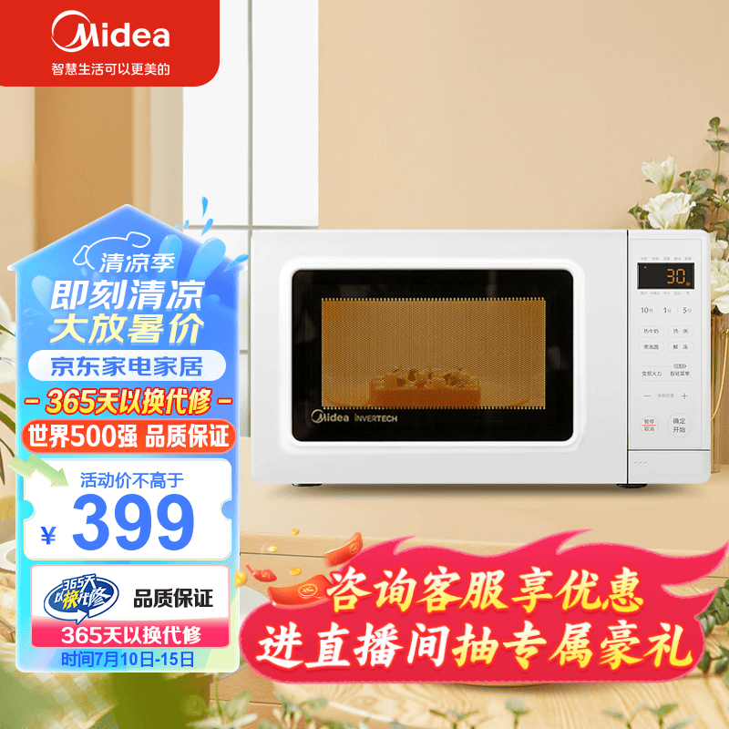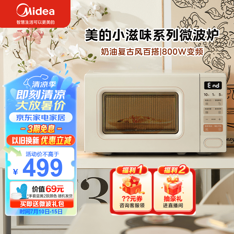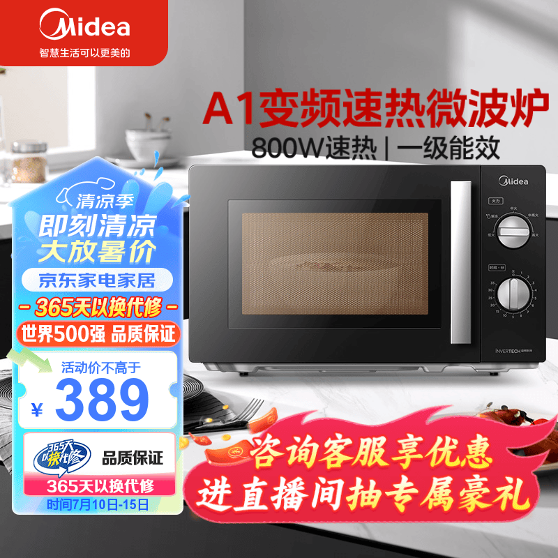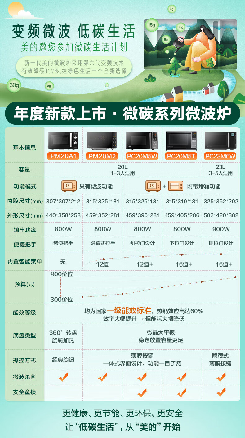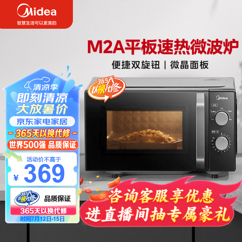 美的(Midea)快捷微波炉 家用小型 360°转盘加热 旋钮操控