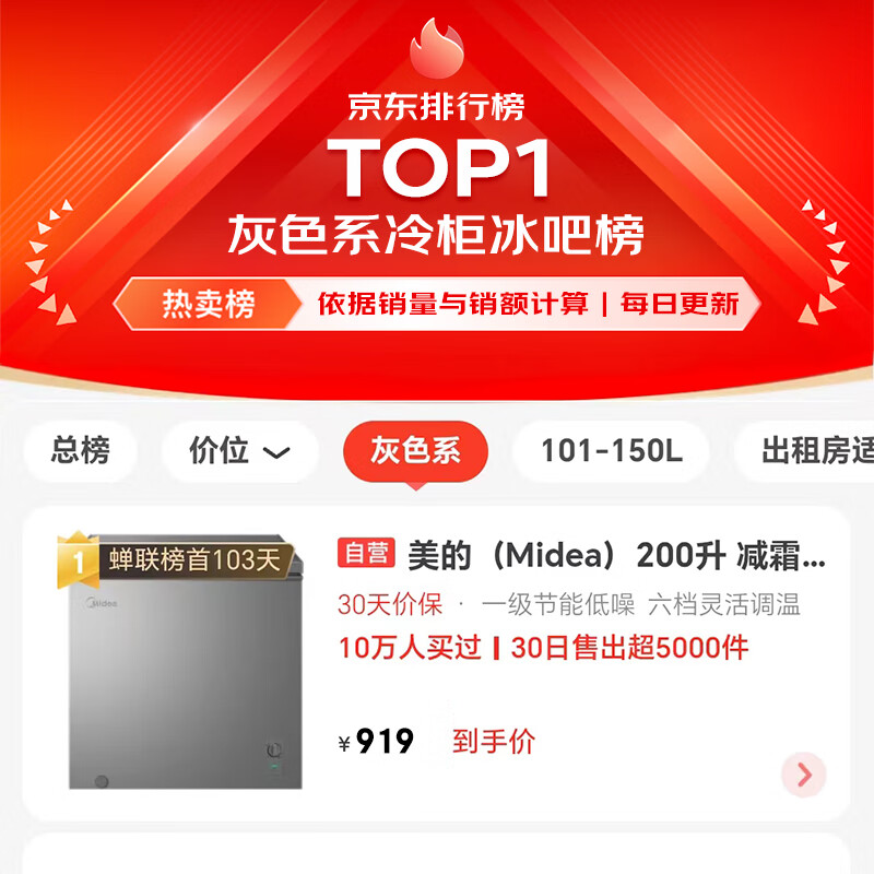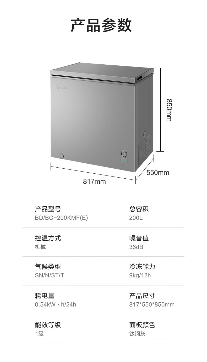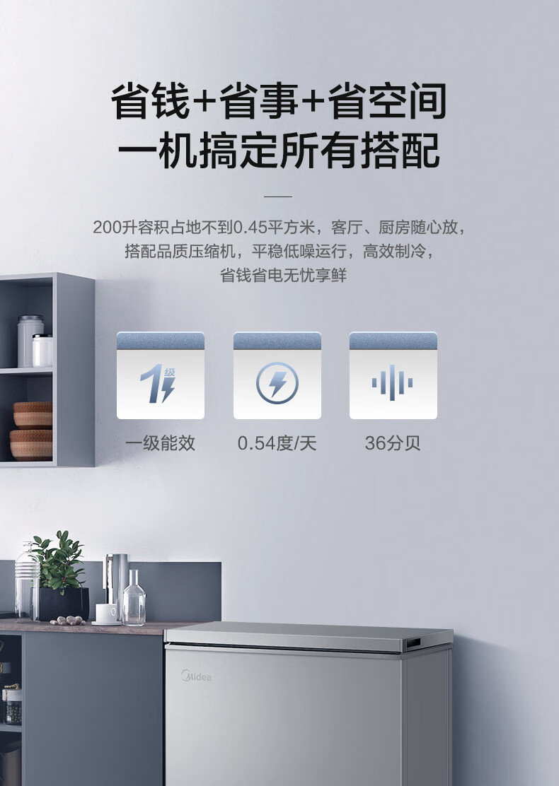 美的(Midea)200升 减霜家用囤货小冷柜 冷藏冷冻转换冰柜 一级能效母婴母乳小冰箱
