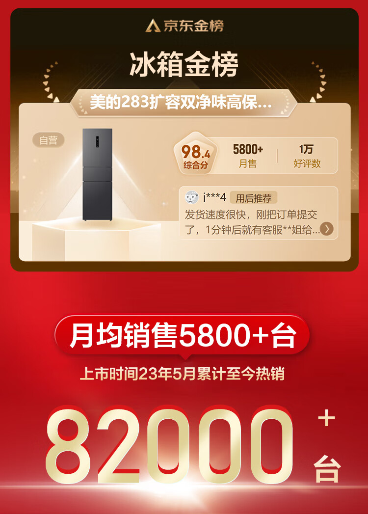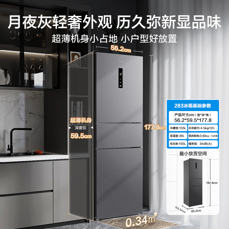 美的(Midea)三门三开门大容量家用小型电冰箱一级能效风冷无霜双净味租房宿舍低噪小冰箱MR-283WTPZE以旧换新