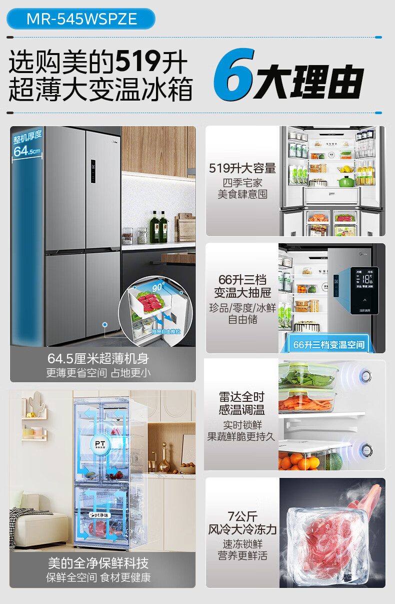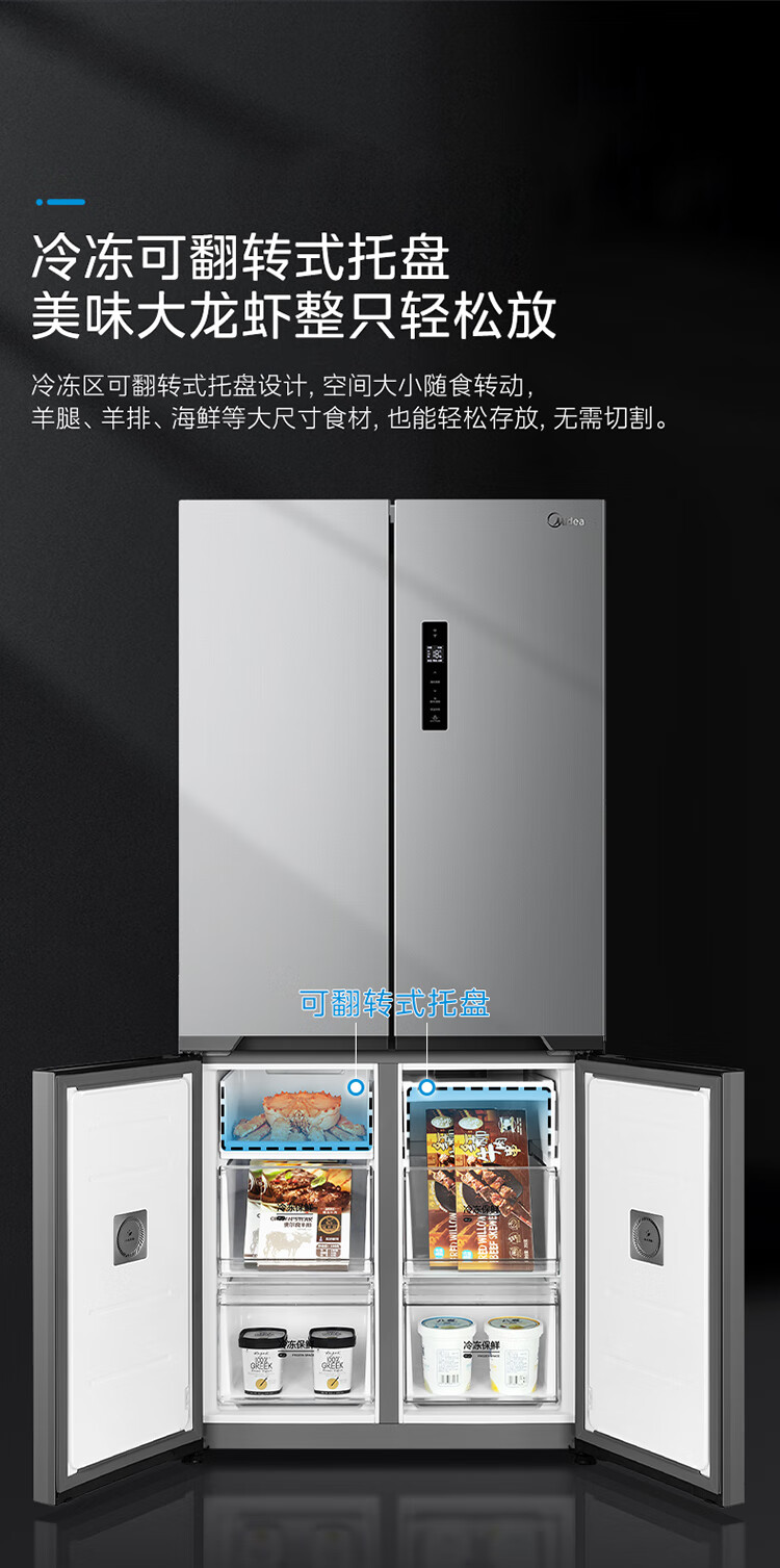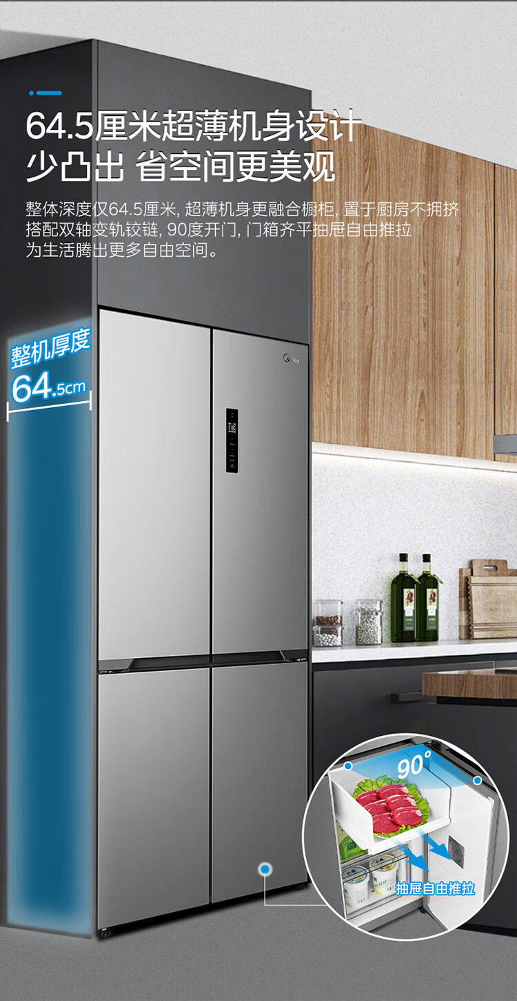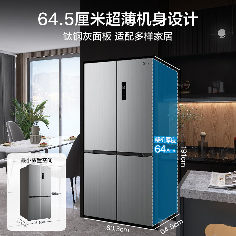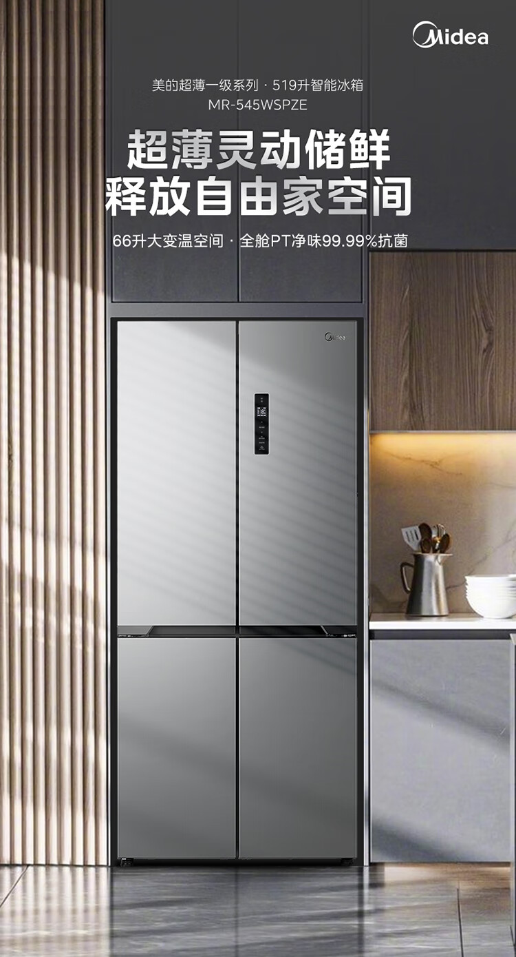 美的(Midea)545十字对开双开四开多门大容量风冷无霜一级能效双变频超薄变温家用电冰箱MR-545WSPZE