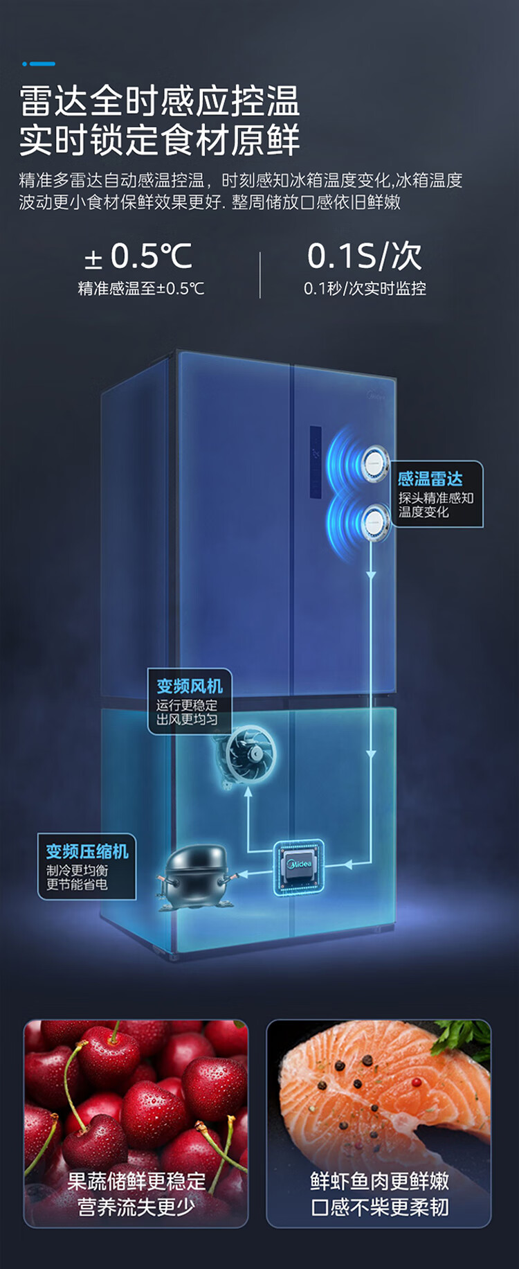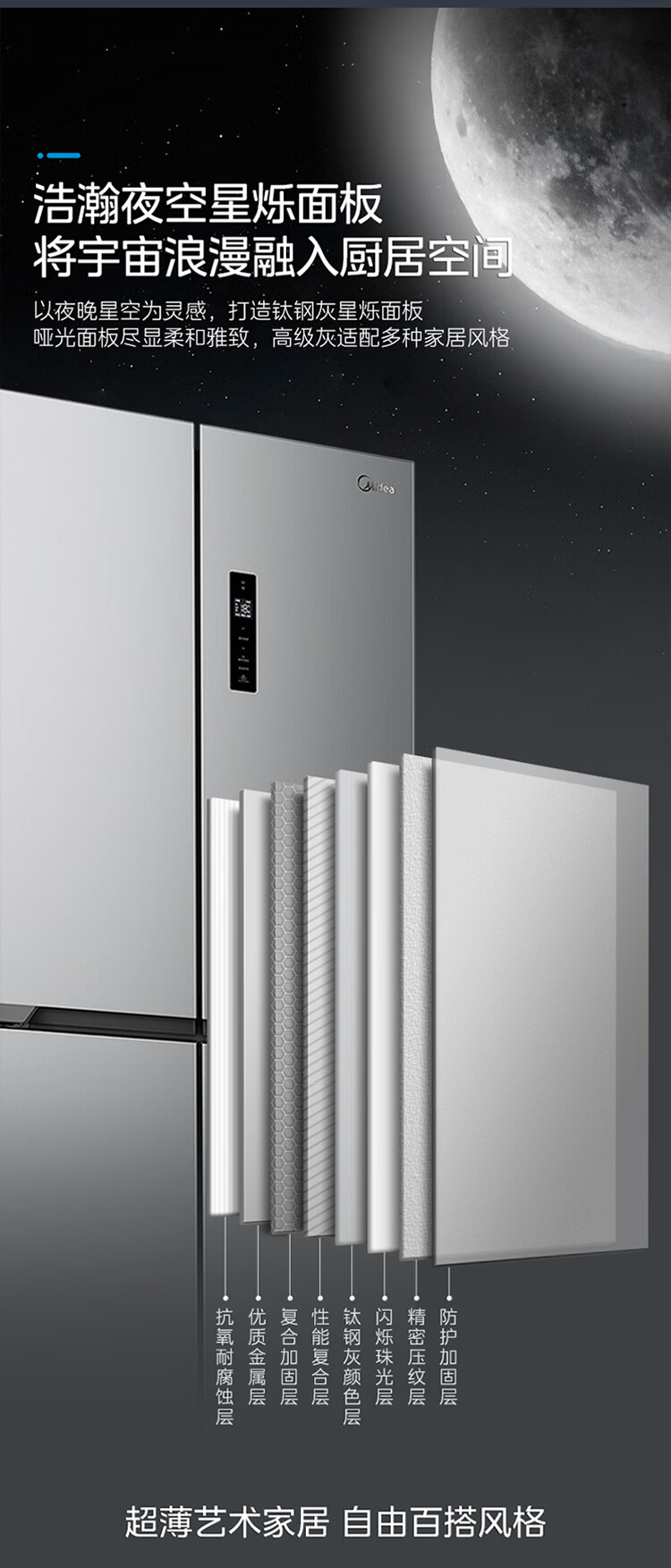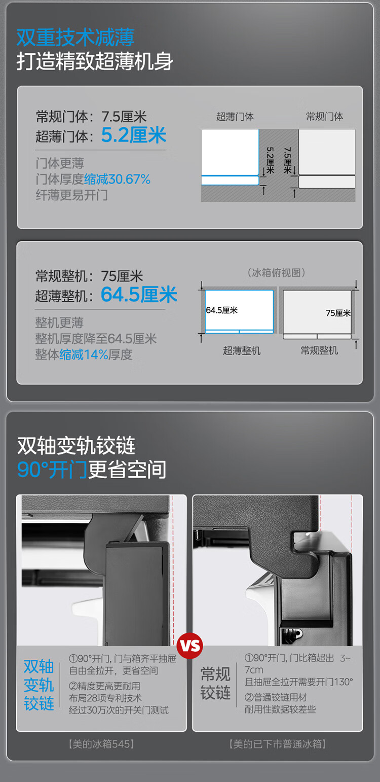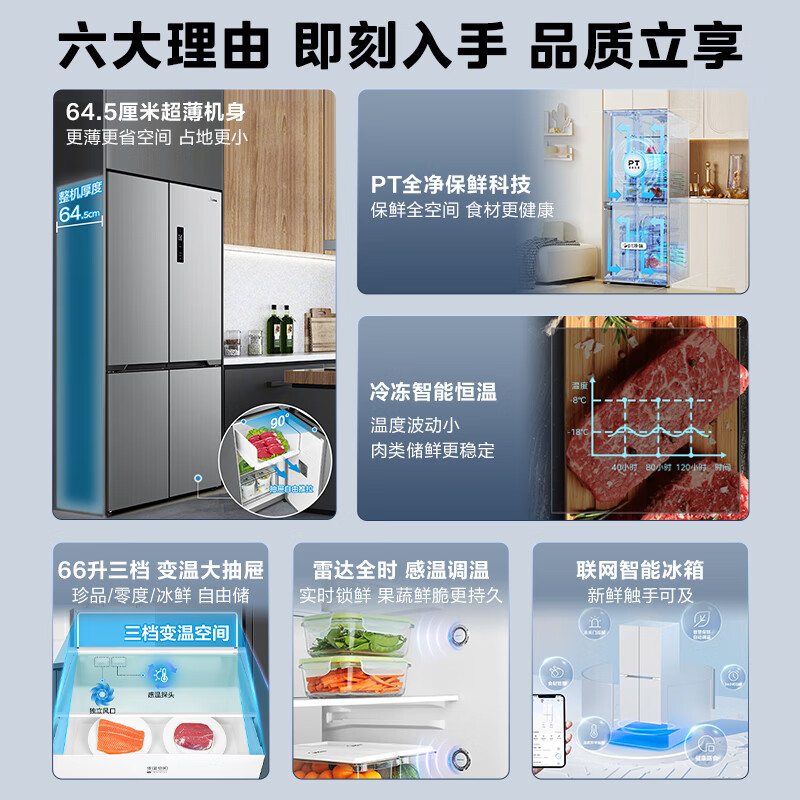 美的(Midea)545十字对开双开四开多门大容量风冷无霜一级能效双变频超薄变温家用电冰箱MR-545WSPZE