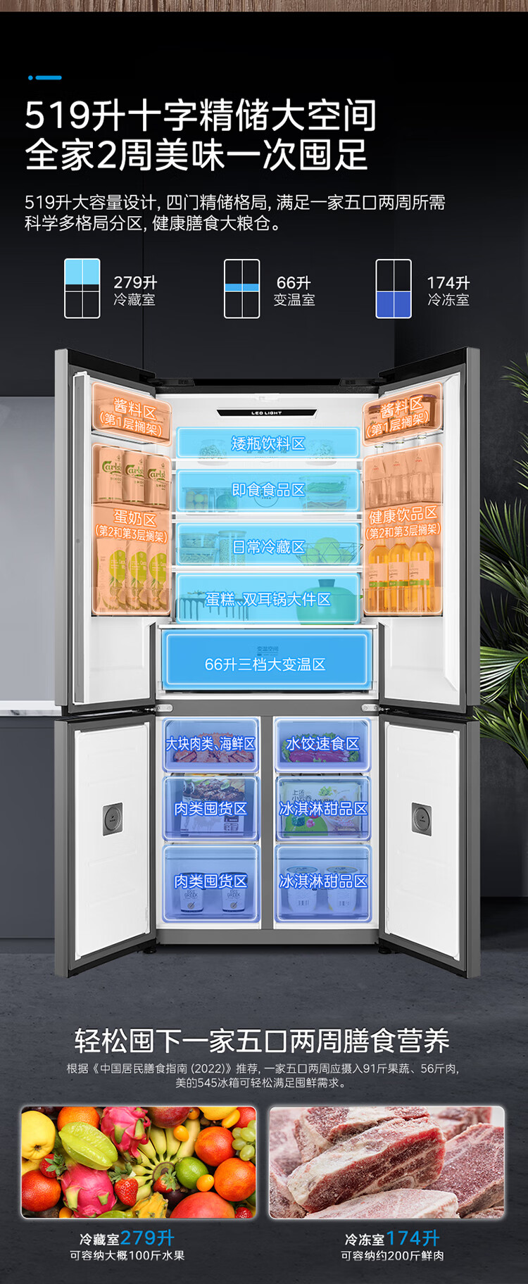 • 冷藏室容积: 279L